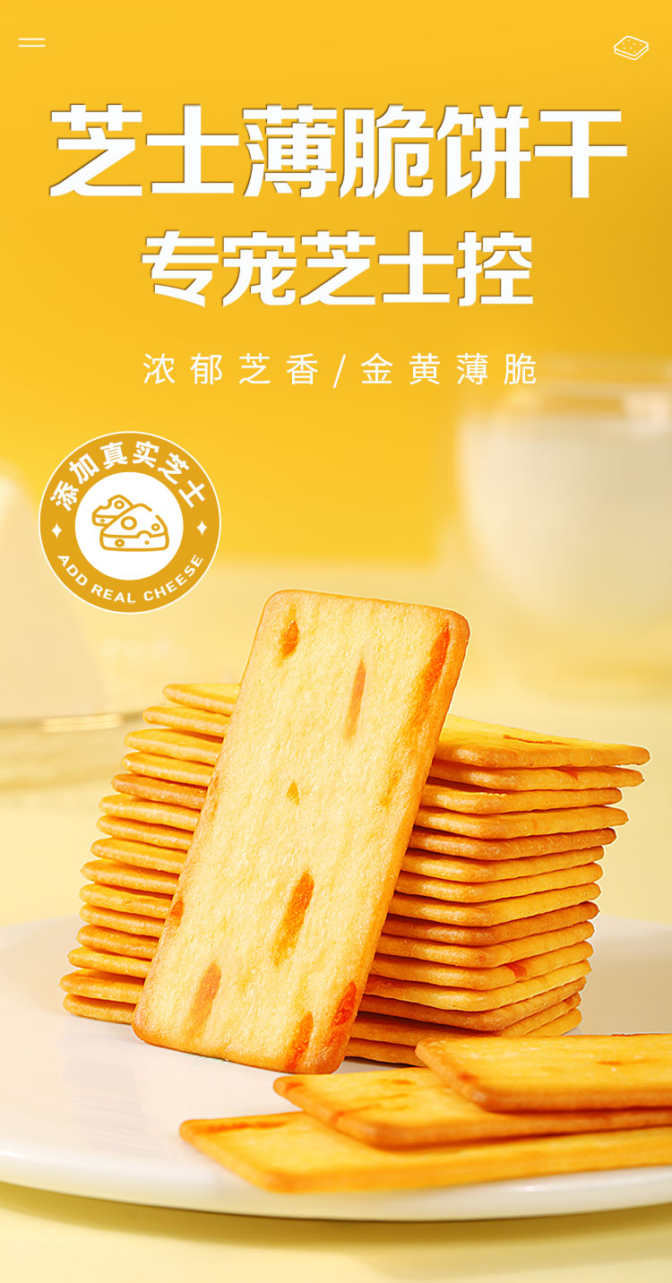 【99元选20件】百草味芝士薄脆咸味饼干120g