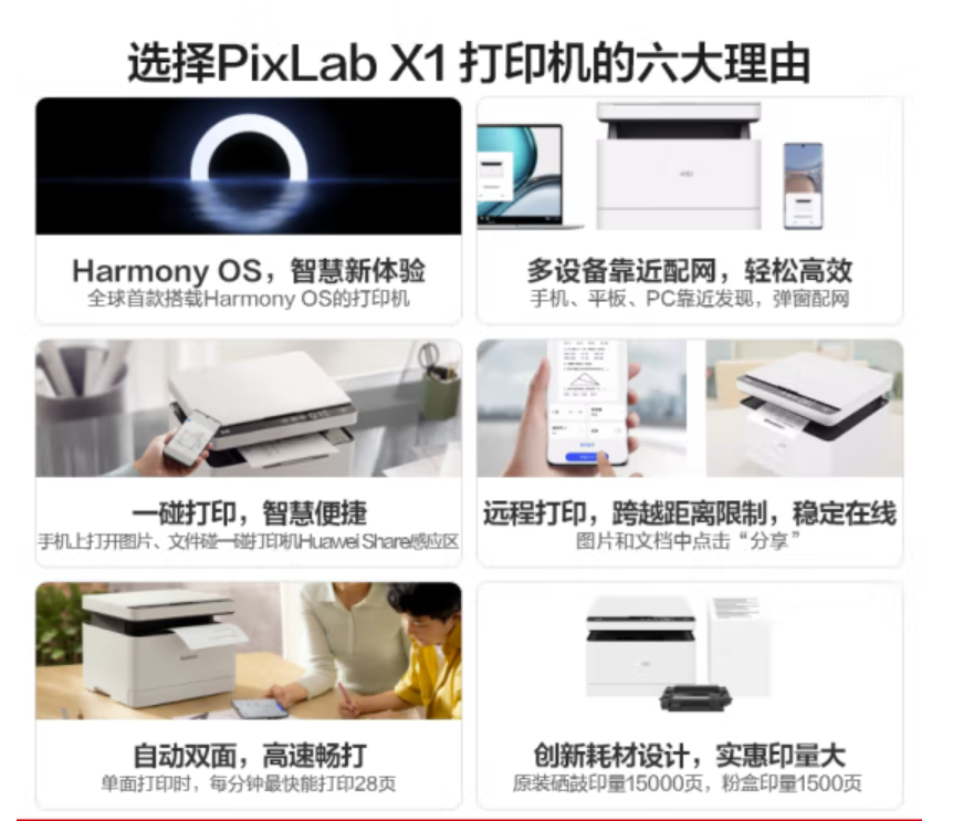 HUAWEI/华为打印机PixLab X1激光高速自动双面黑白手机一碰打印扫描办公家用鸿蒙无线远程 PixLab X1