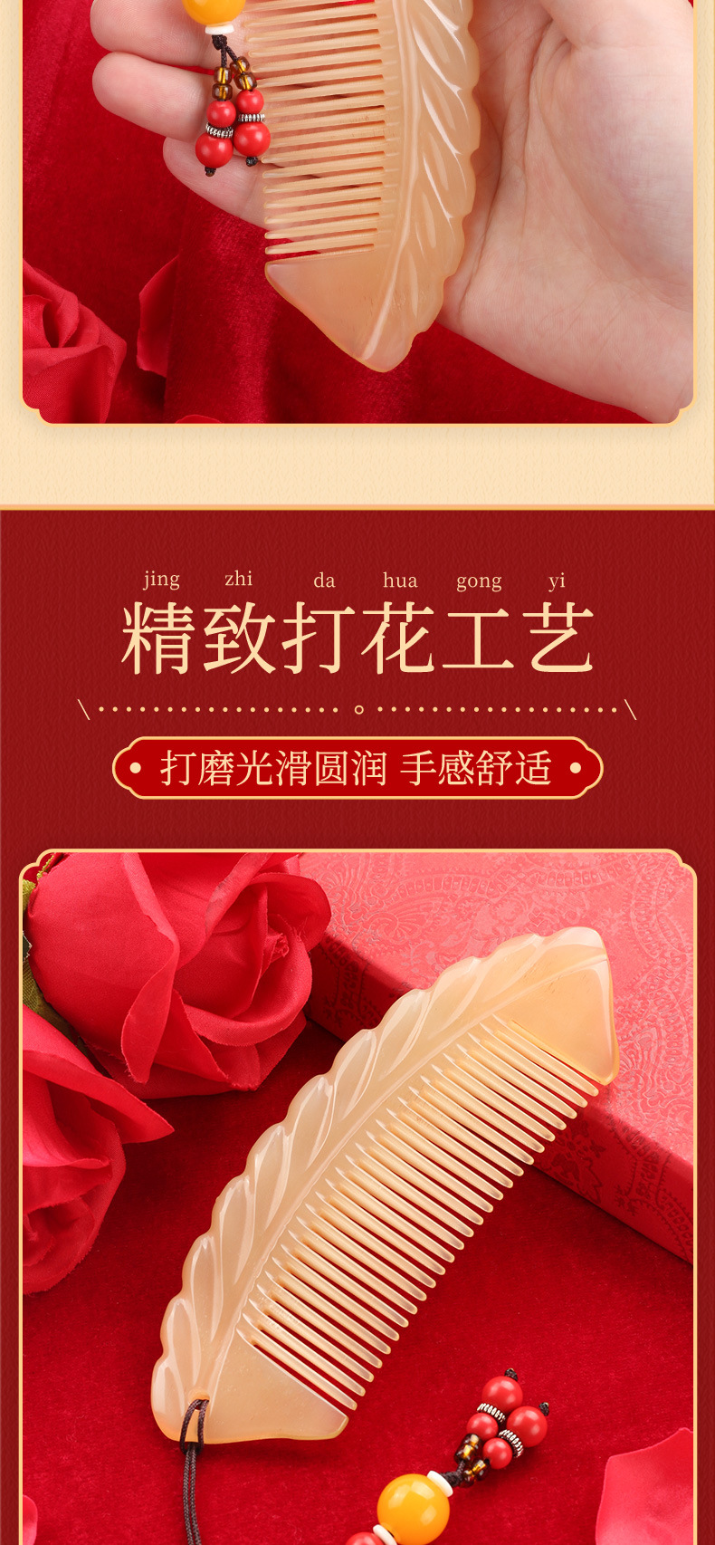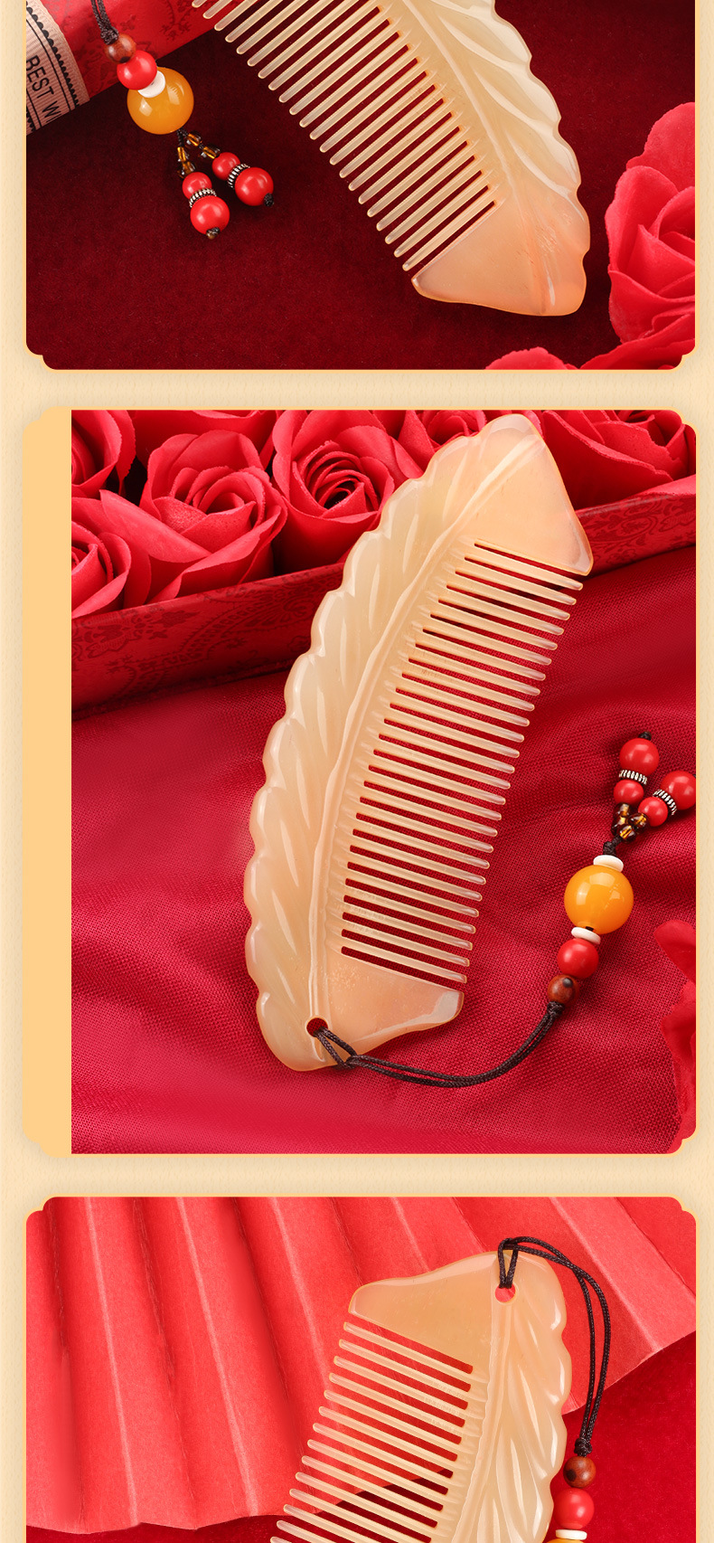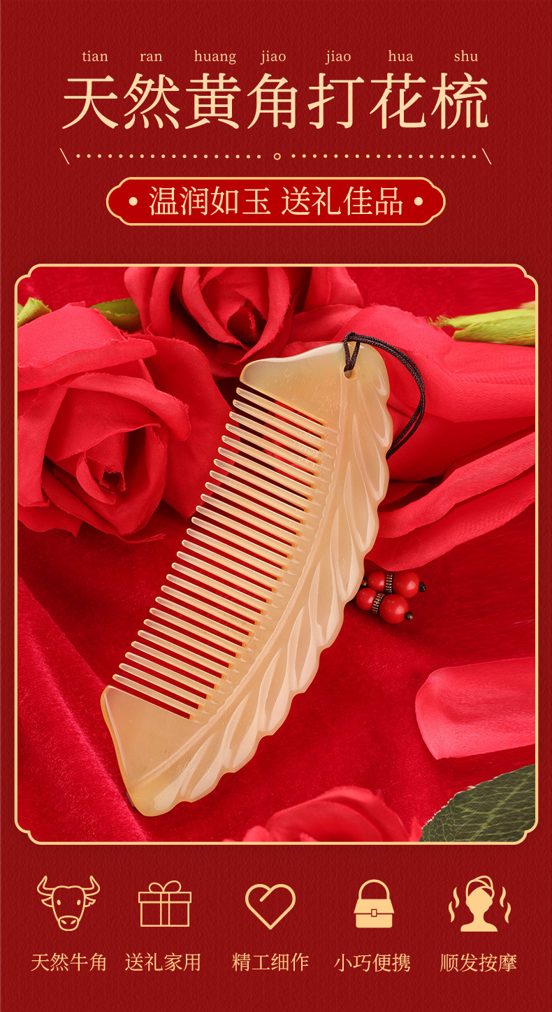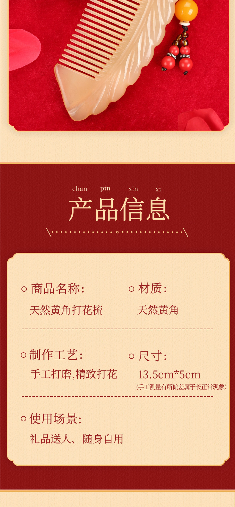 年终大促!【温润如玉!送礼佳品】圣诞礼物新年礼物送女友,创意礼品套装情人节礼物牛角梳,轻松顺发不打结 小巧随身携带 精致打花工艺
