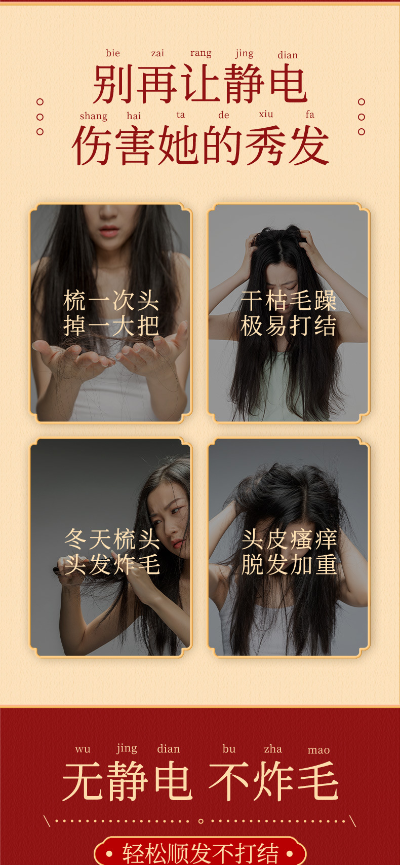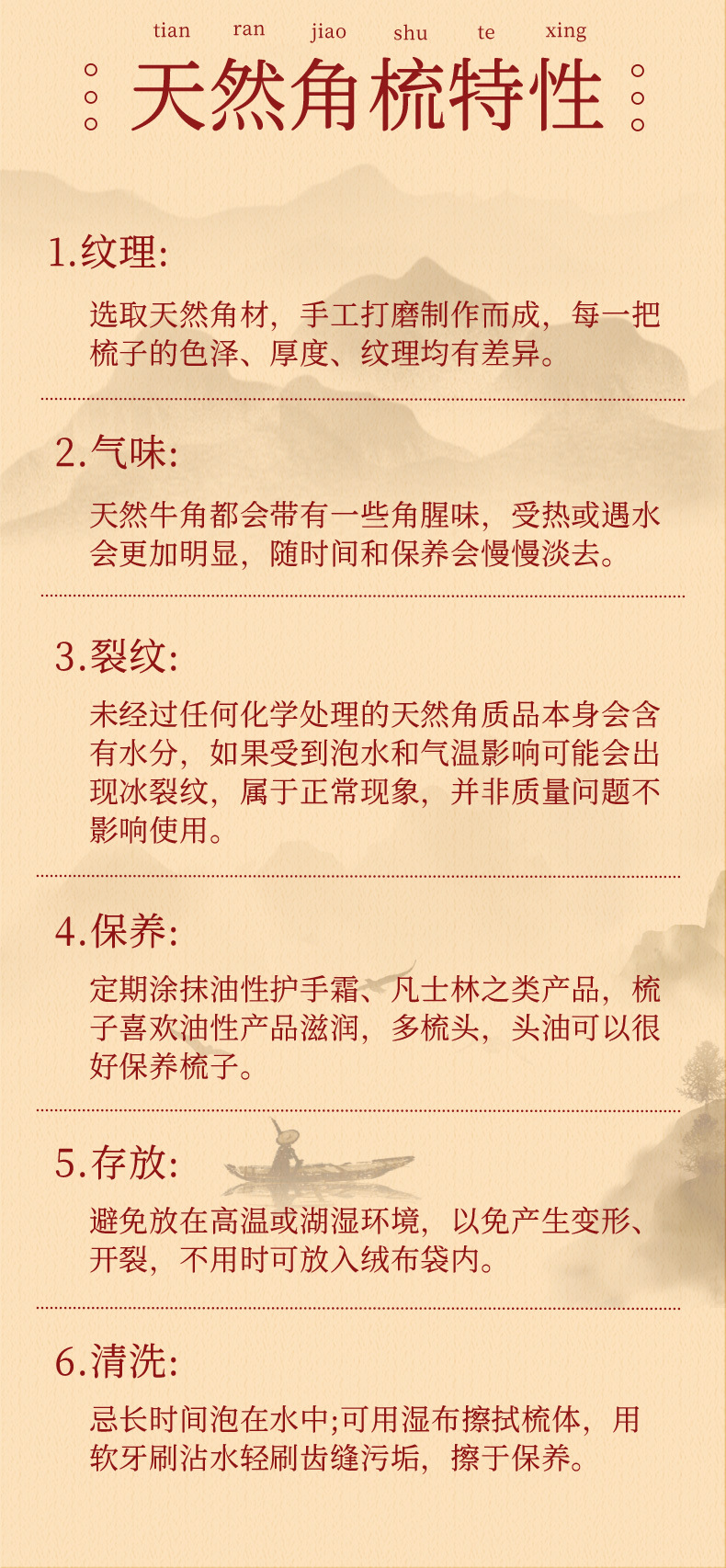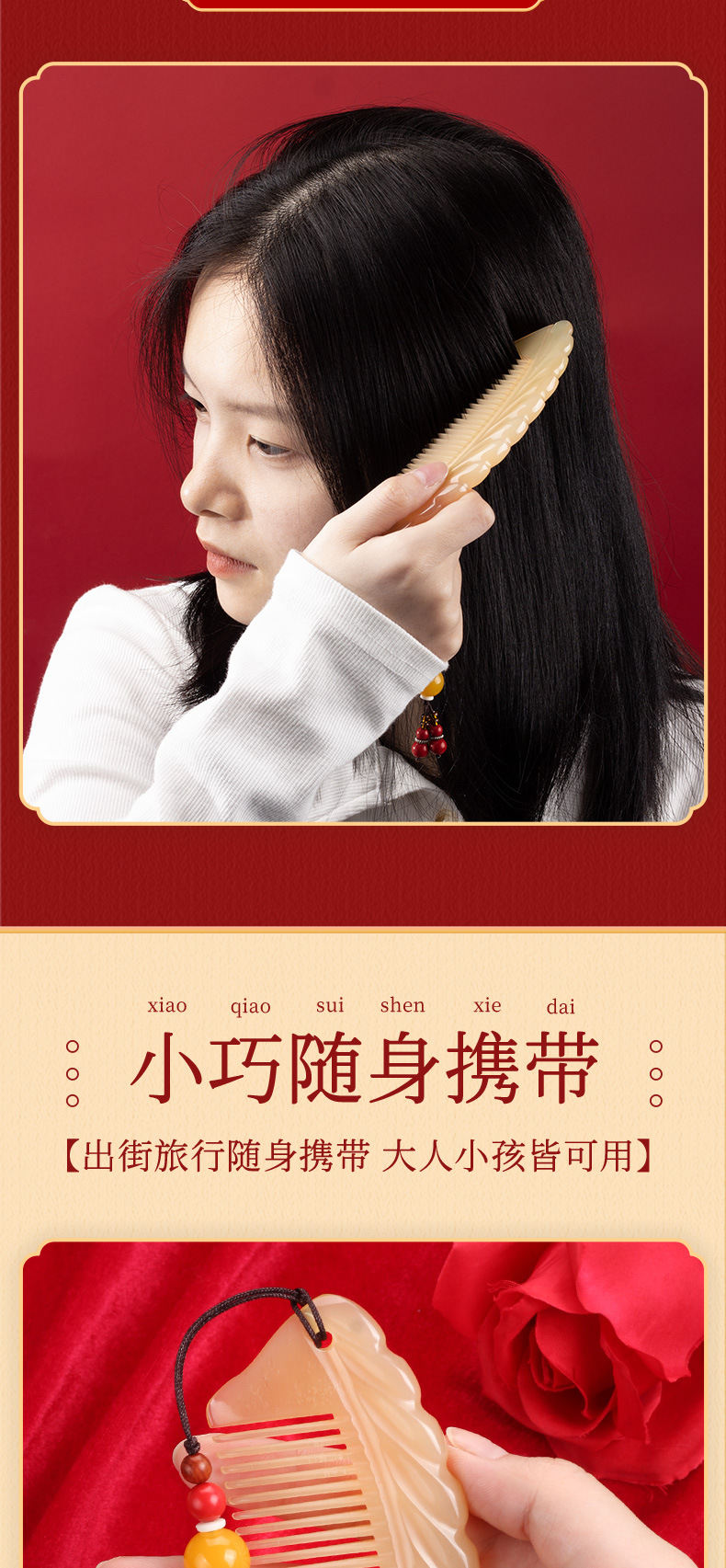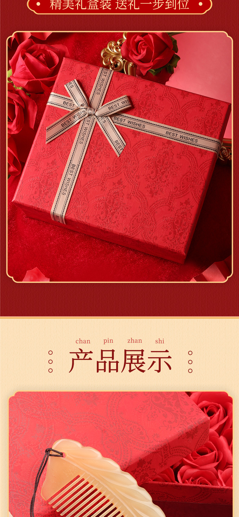 年终大促!【温润如玉!送礼佳品】圣诞礼物新年礼物送女友,创意礼品套装情人节礼物牛角梳,轻松顺发不打结 小巧随身携带 精致打花工艺