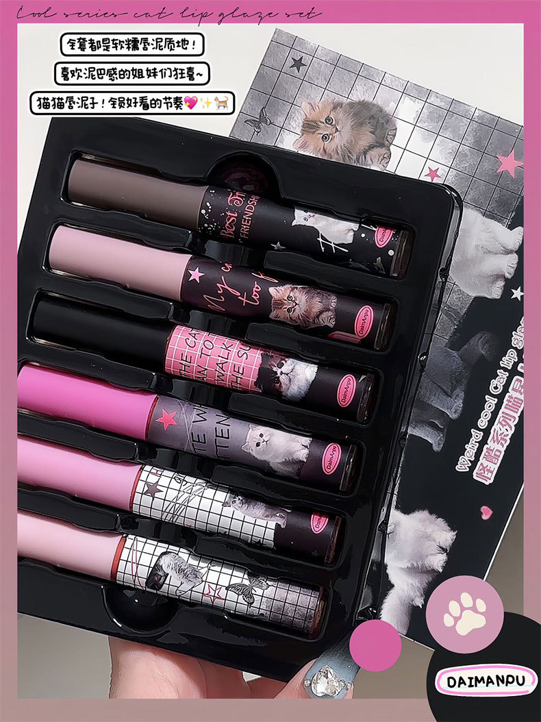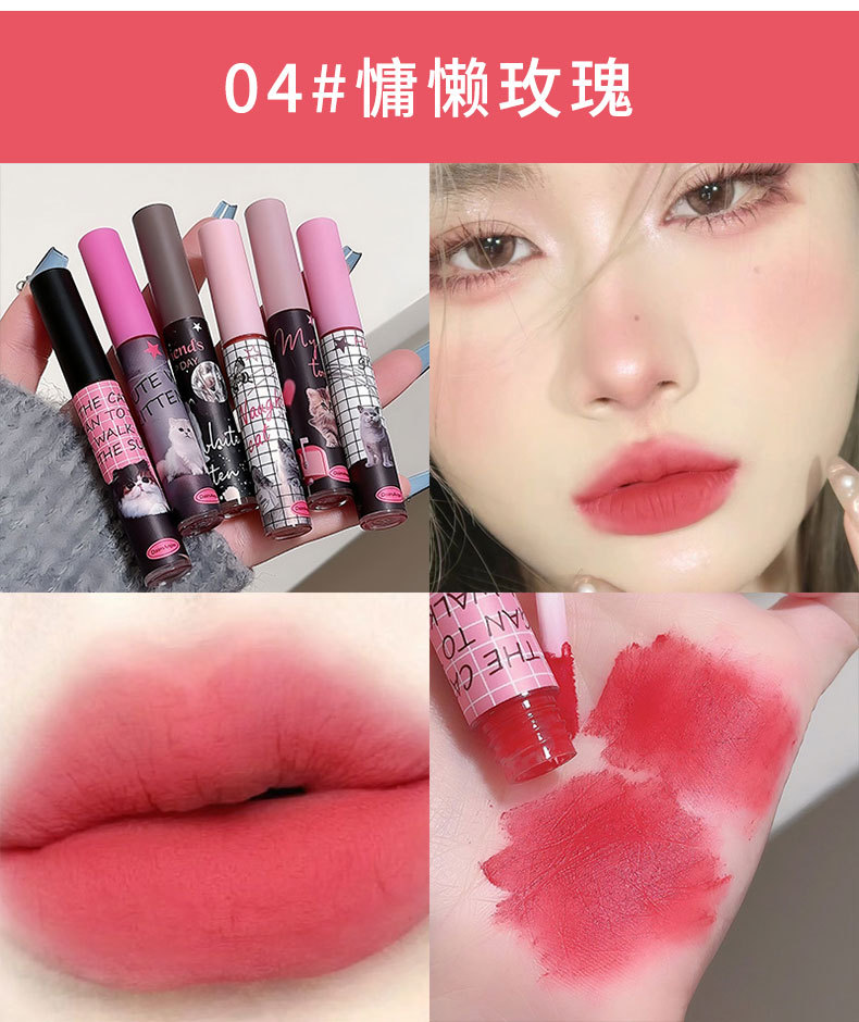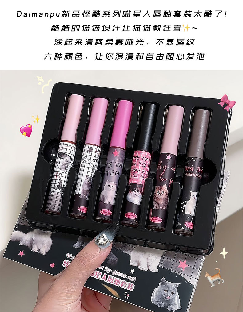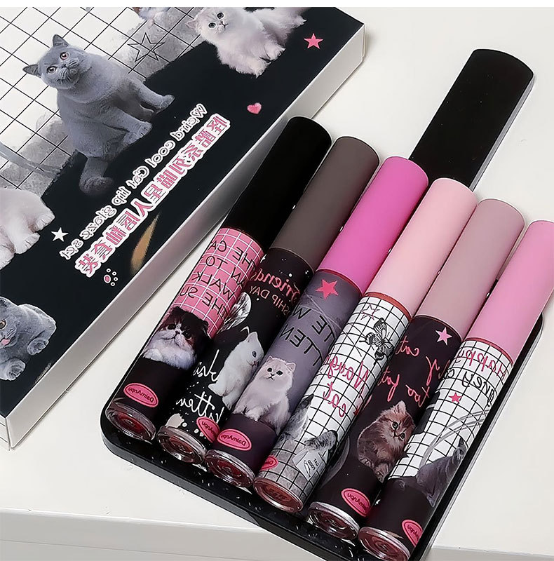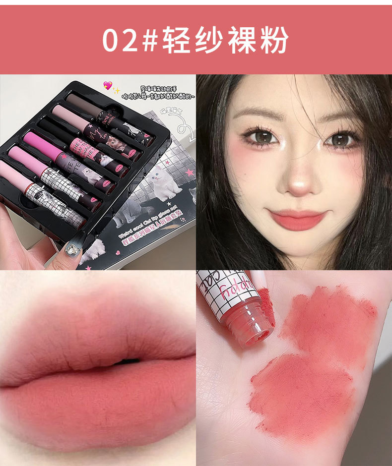 【六支装喵星人唇釉套装】哑光雾面丝绒轻薄伪素颜显白学生党口红,轻轻一抹,即可打造明靓动人的唇妆。ry