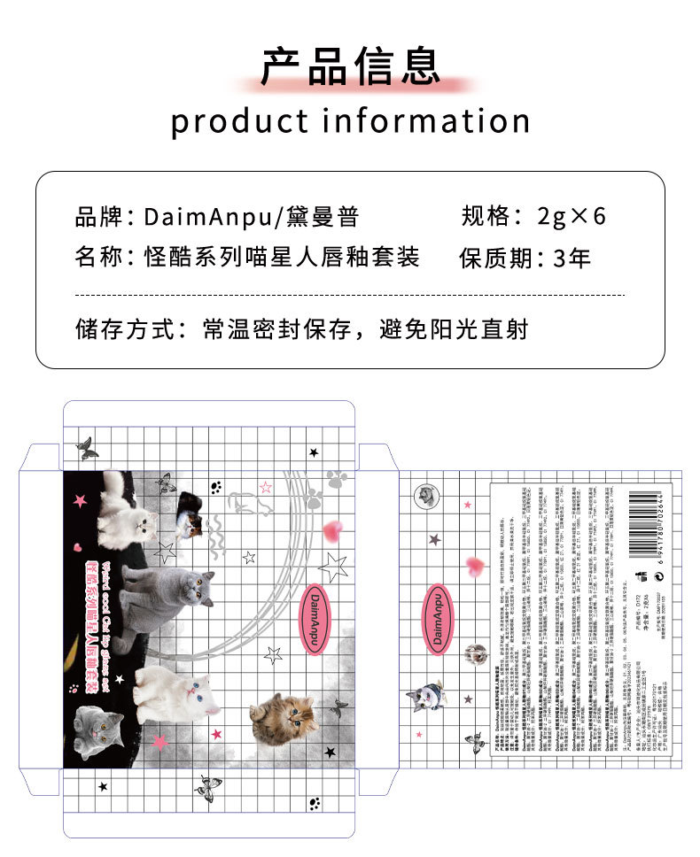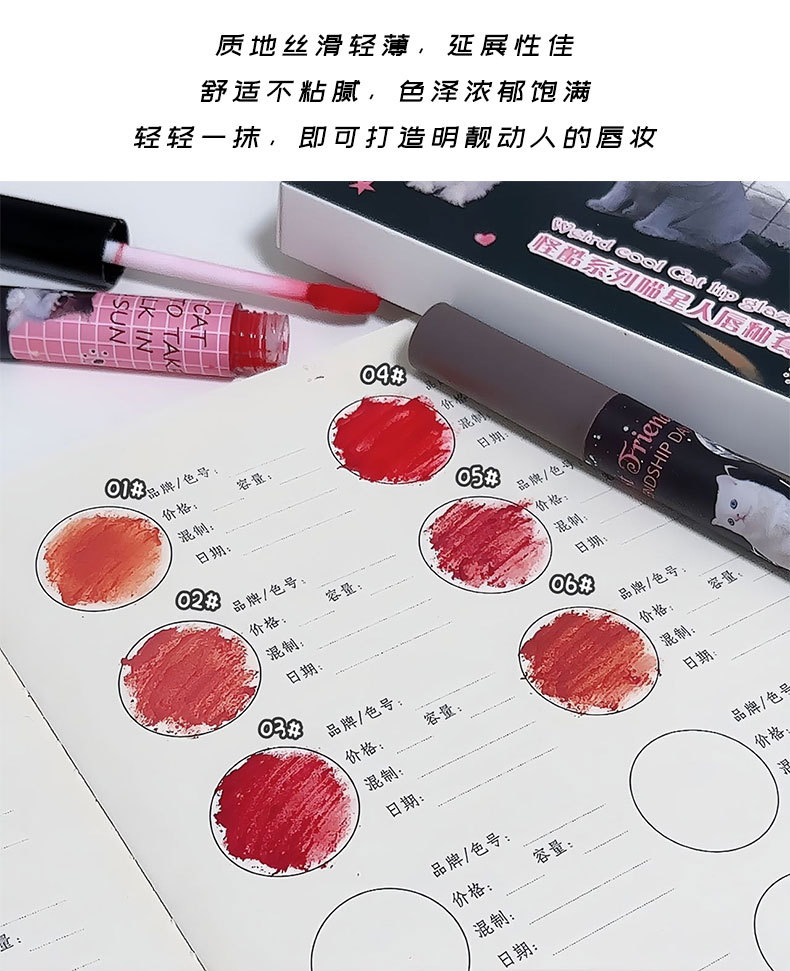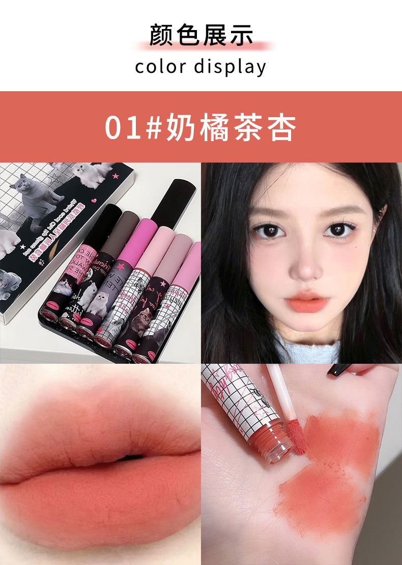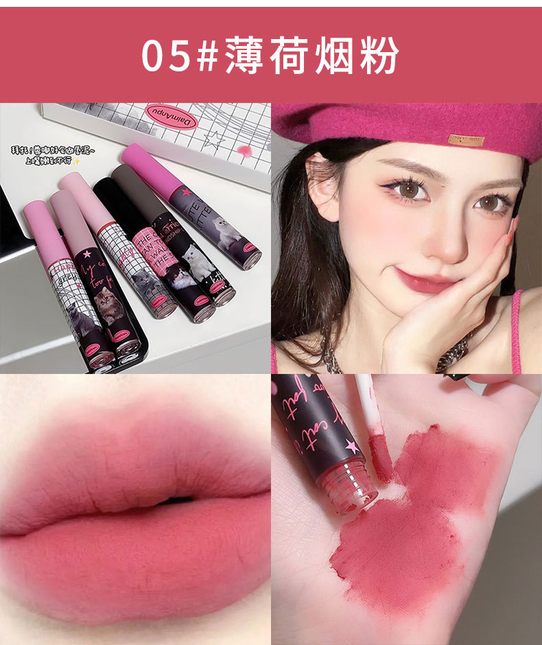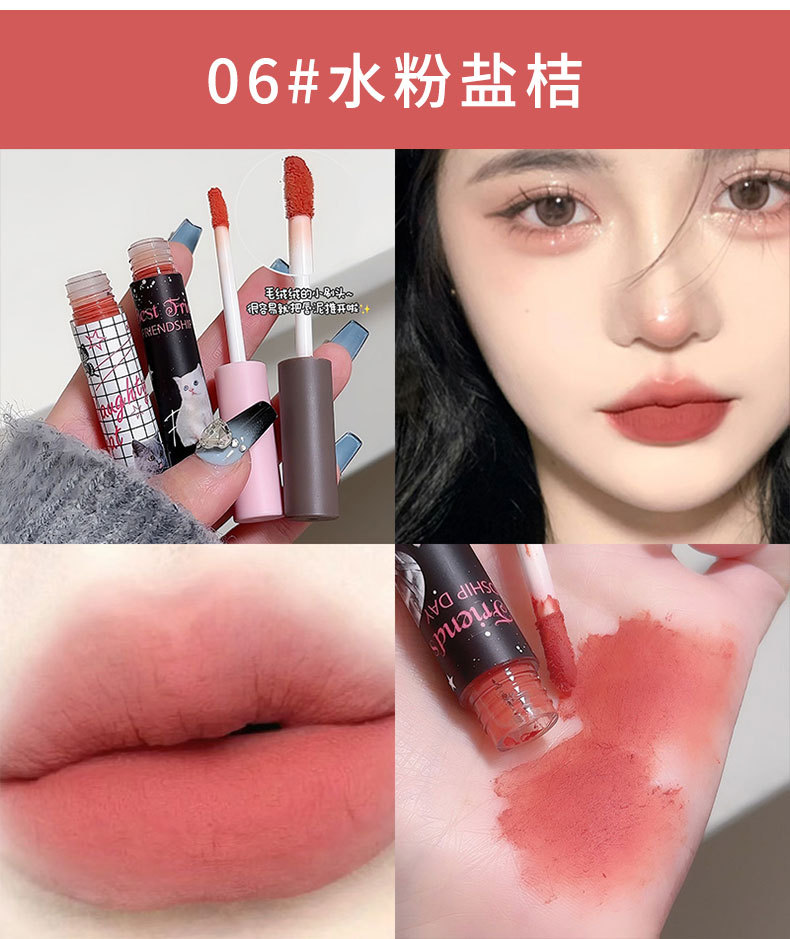【六支装喵星人唇釉套装】哑光雾面丝绒轻薄伪素颜显白学生党口红,轻轻一抹,即可打造明靓动人的唇妆。ry