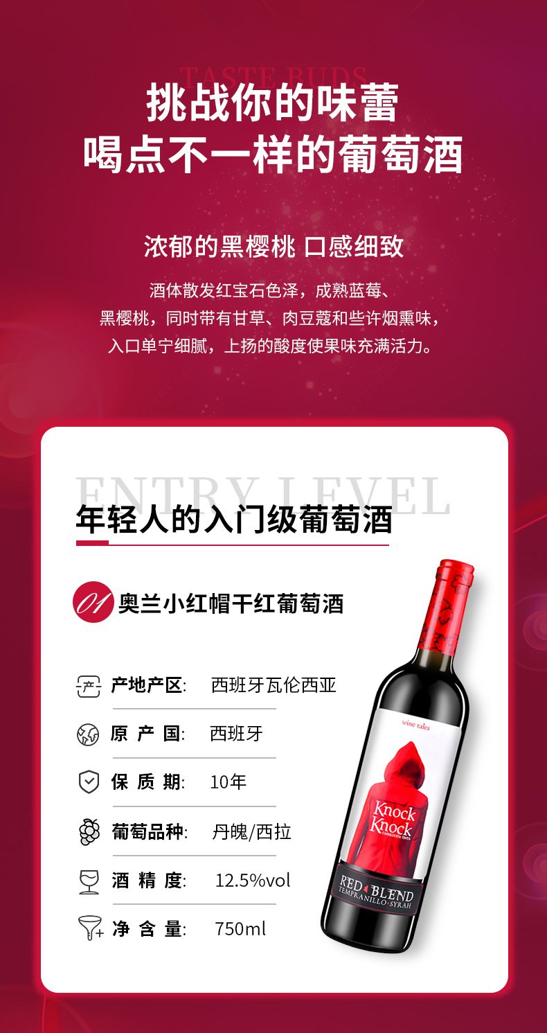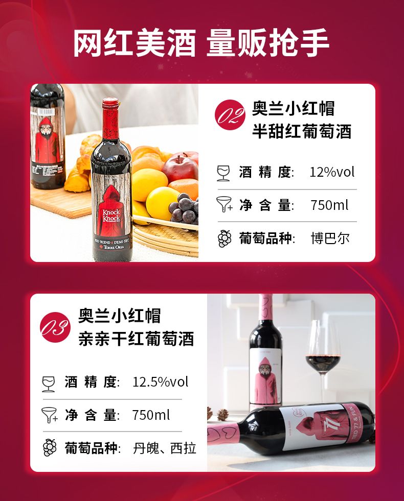 西班牙进口正品 奥兰小红帽半甜红葡萄酒 整箱750ml*6瓶包邮
