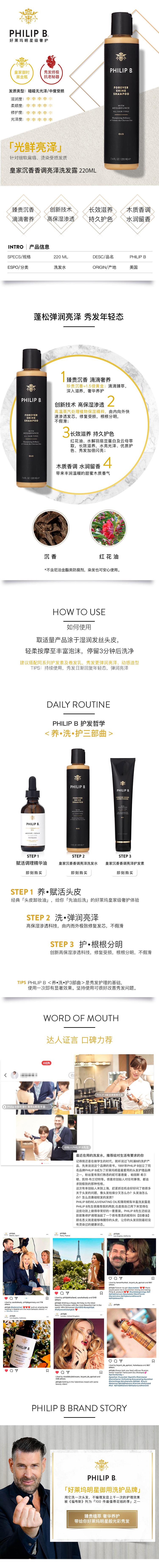 PHILIPB皇家沉香香调亮泽洗发露220ml/瓶