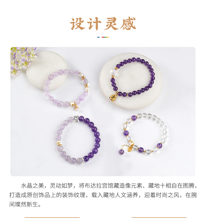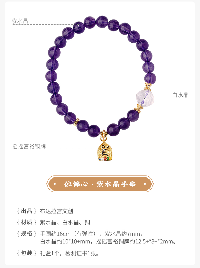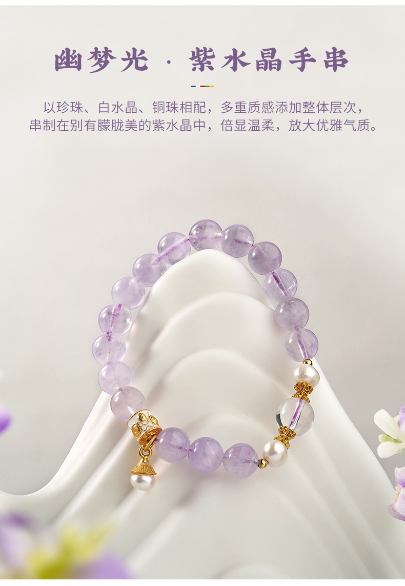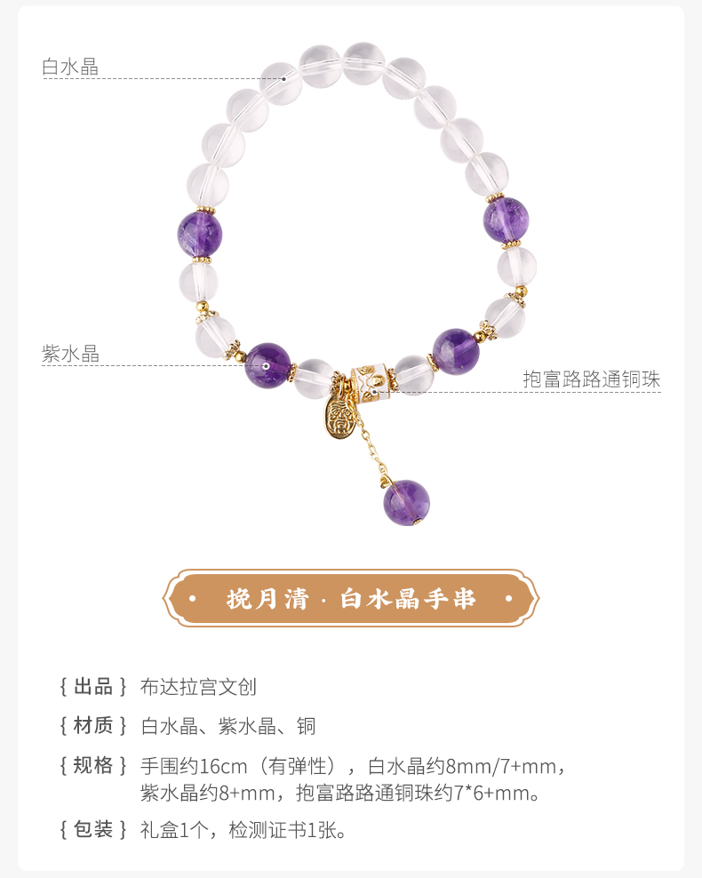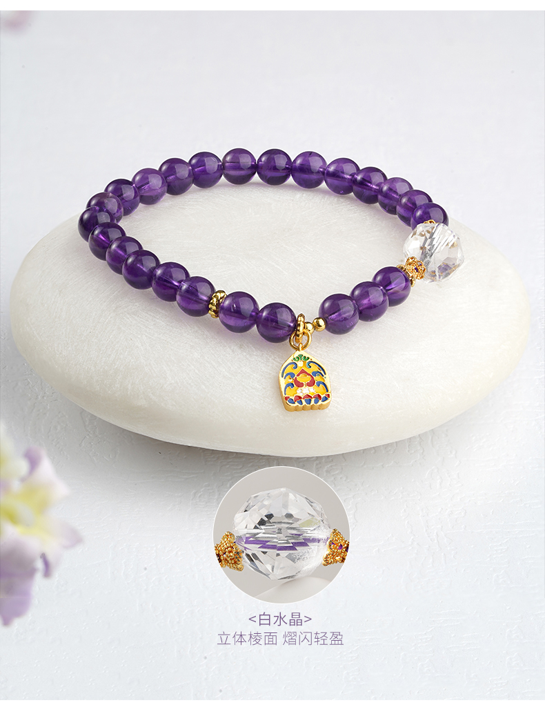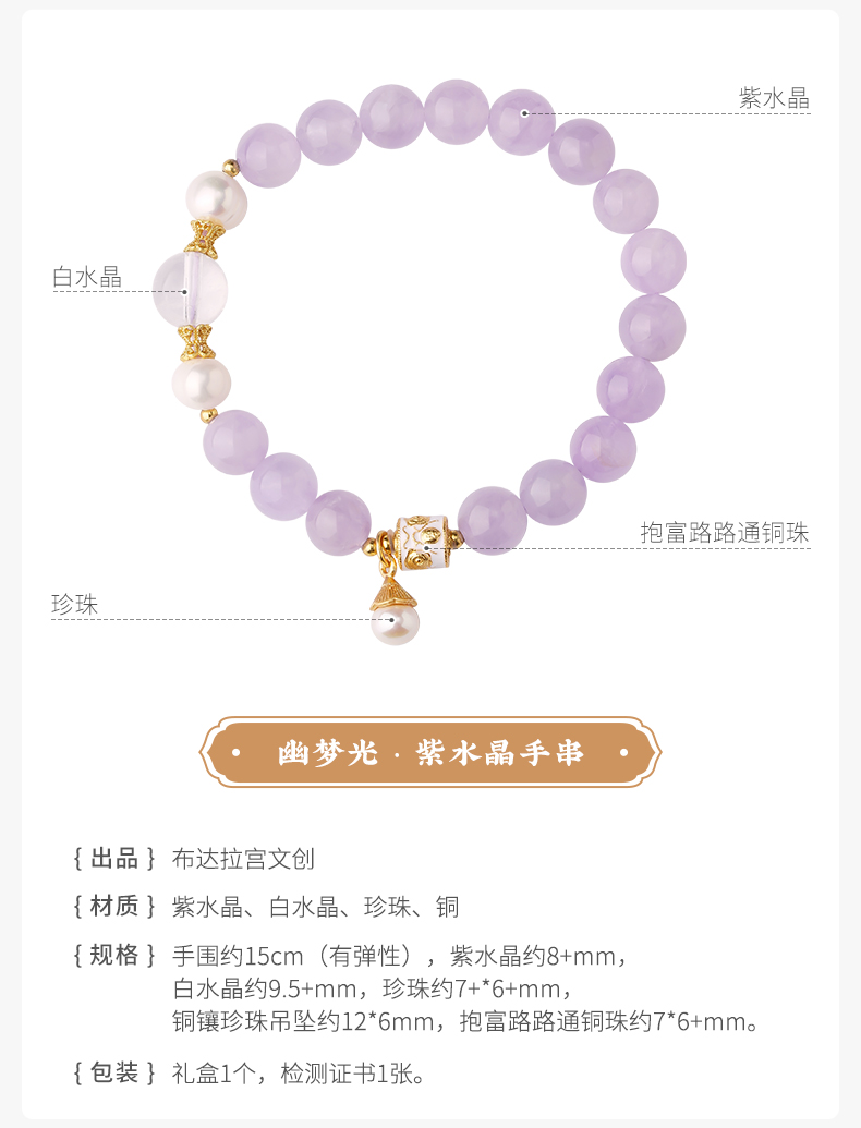 布达拉宫紫水晶铜财配件手串紫水晶白水晶珍珠手串多款可选