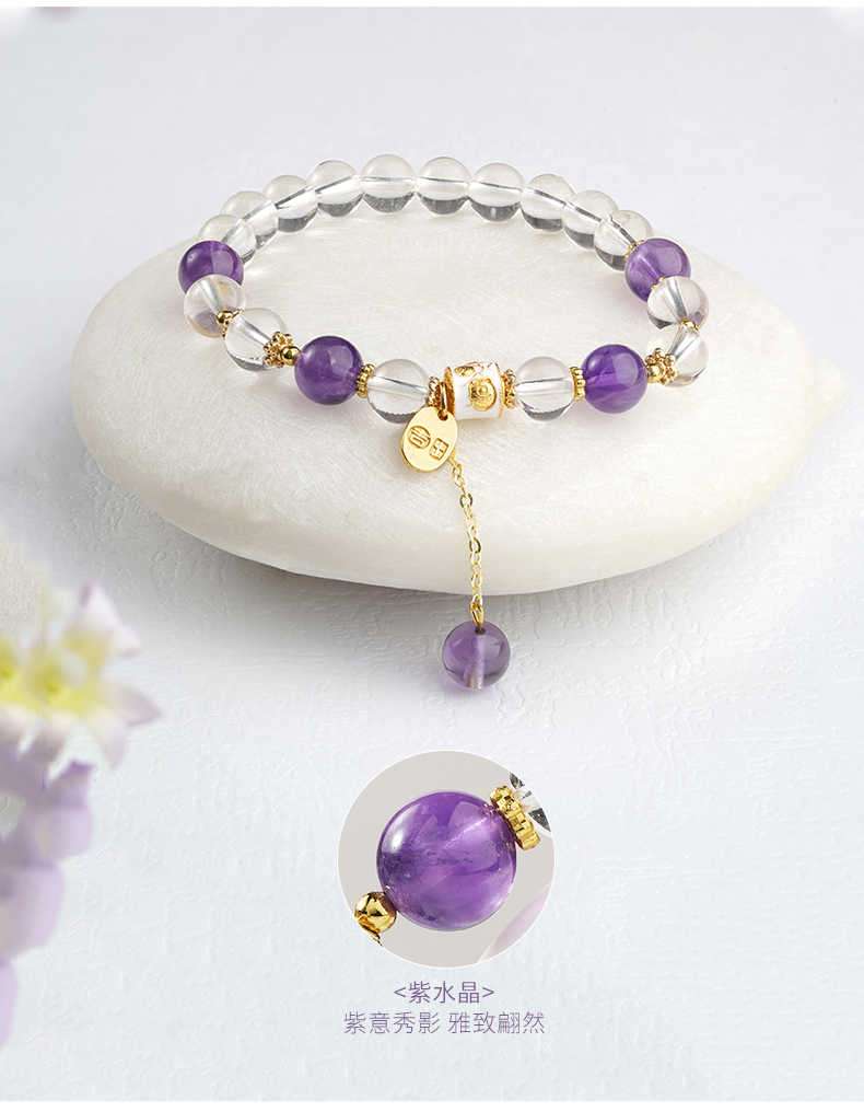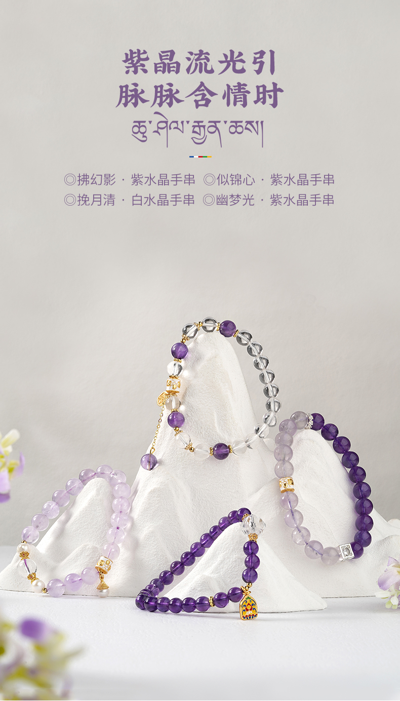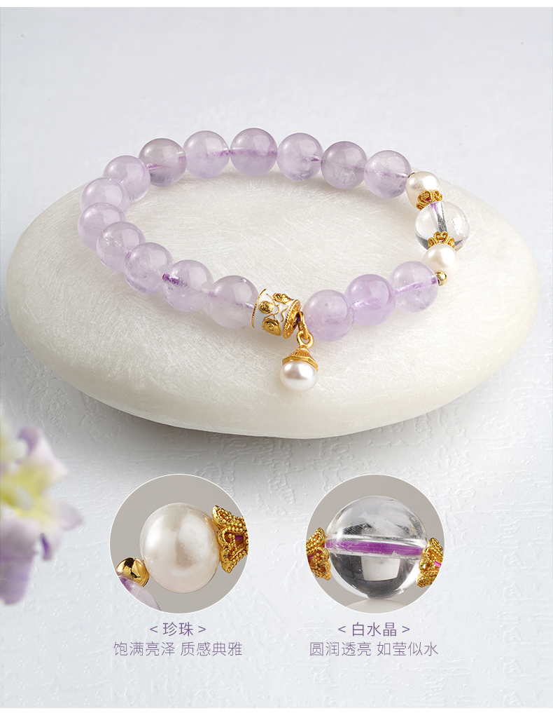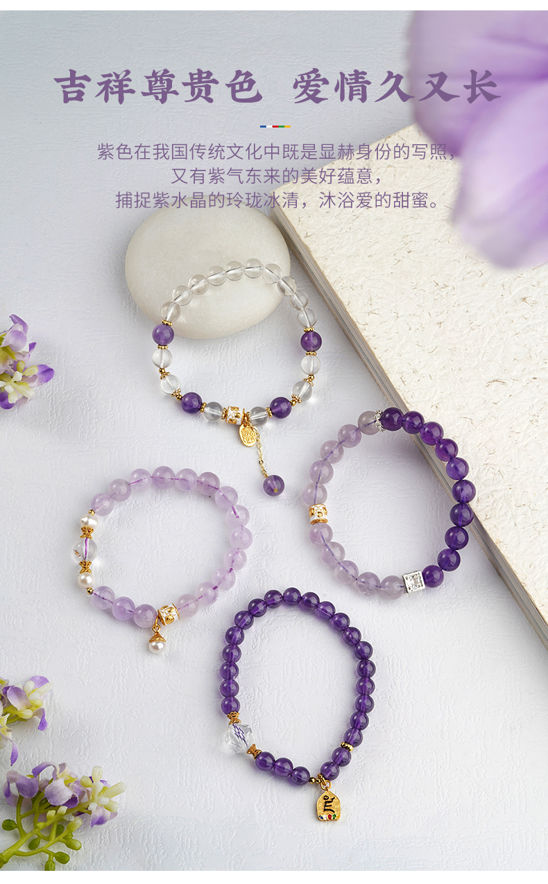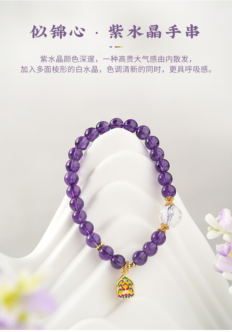 布达拉宫紫水晶铜财配件手串紫水晶白水晶珍珠手串多款可选