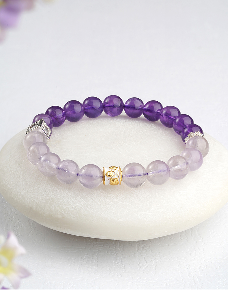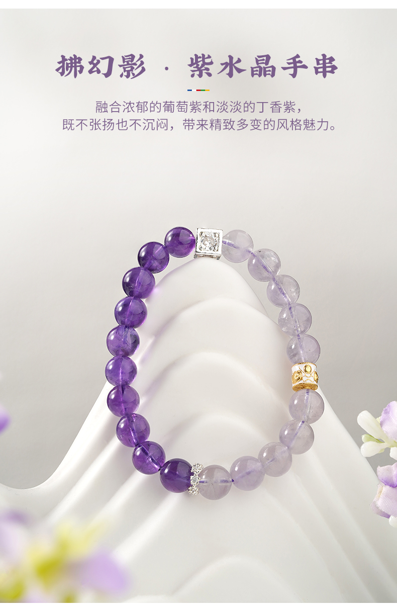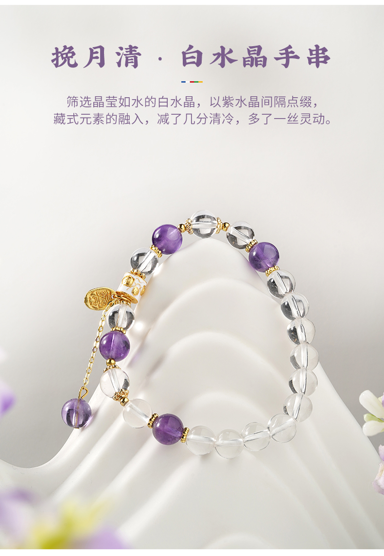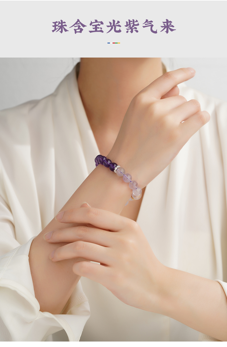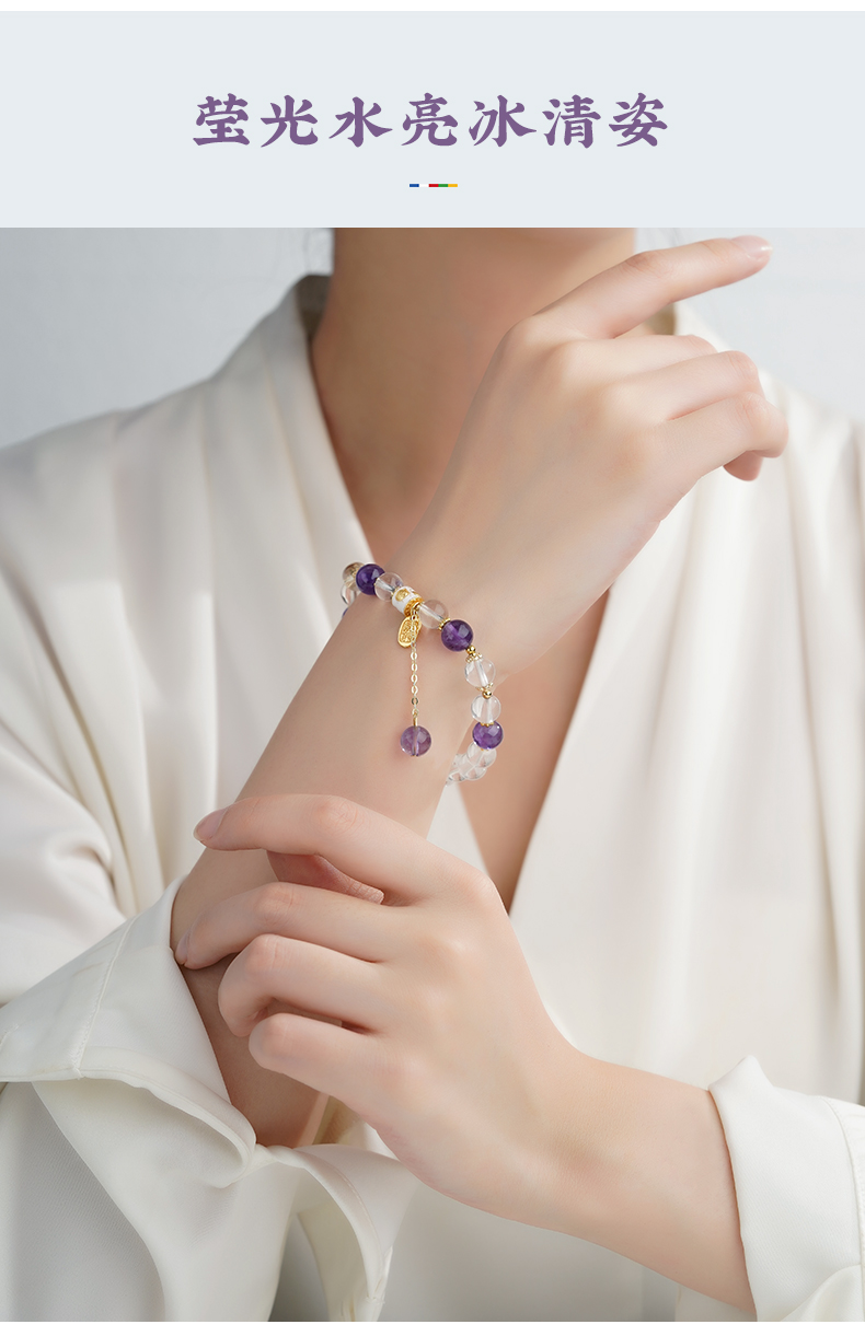 布达拉宫紫水晶铜财配件手串紫水晶白水晶珍珠手串多款可选