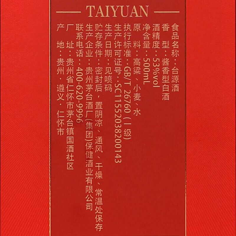 茅台集团台源酒 53度酱香型白酒 整箱500ml*6瓶包邮