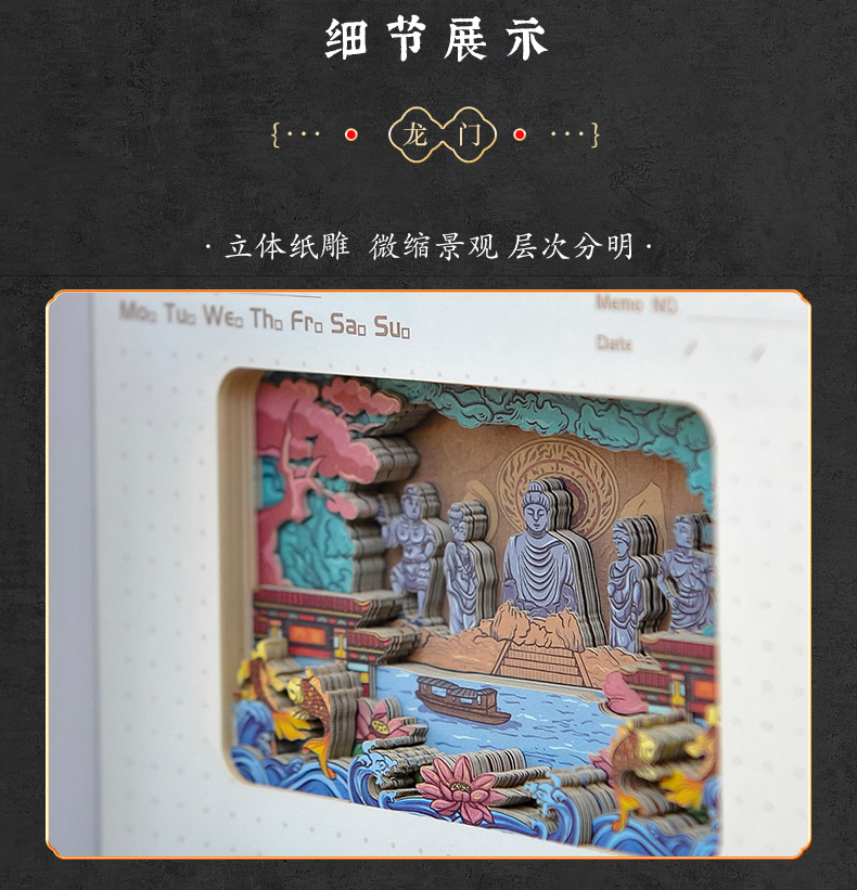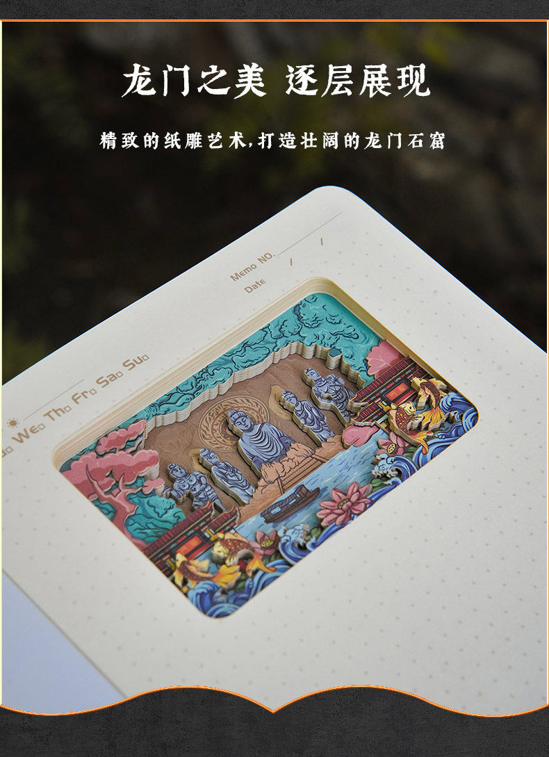 龙门奇妙物龙门石窟3D立体纸雕笔记本