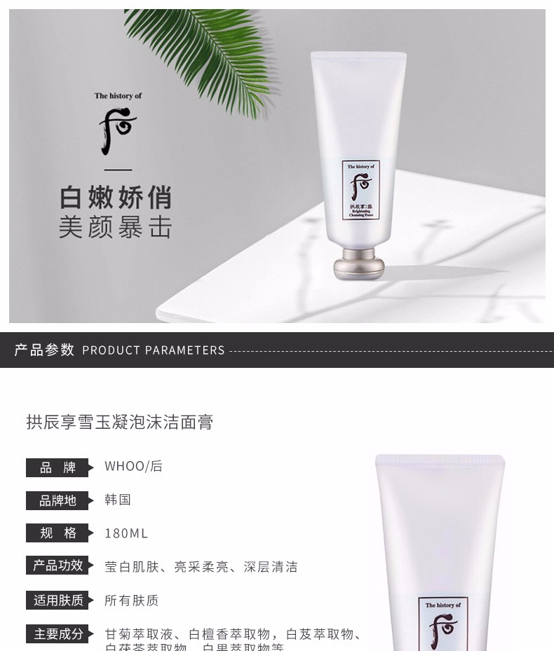 Whoo后 拱辰享雪玉凝泡沫洁面乳洗面奶 180ml 韩国