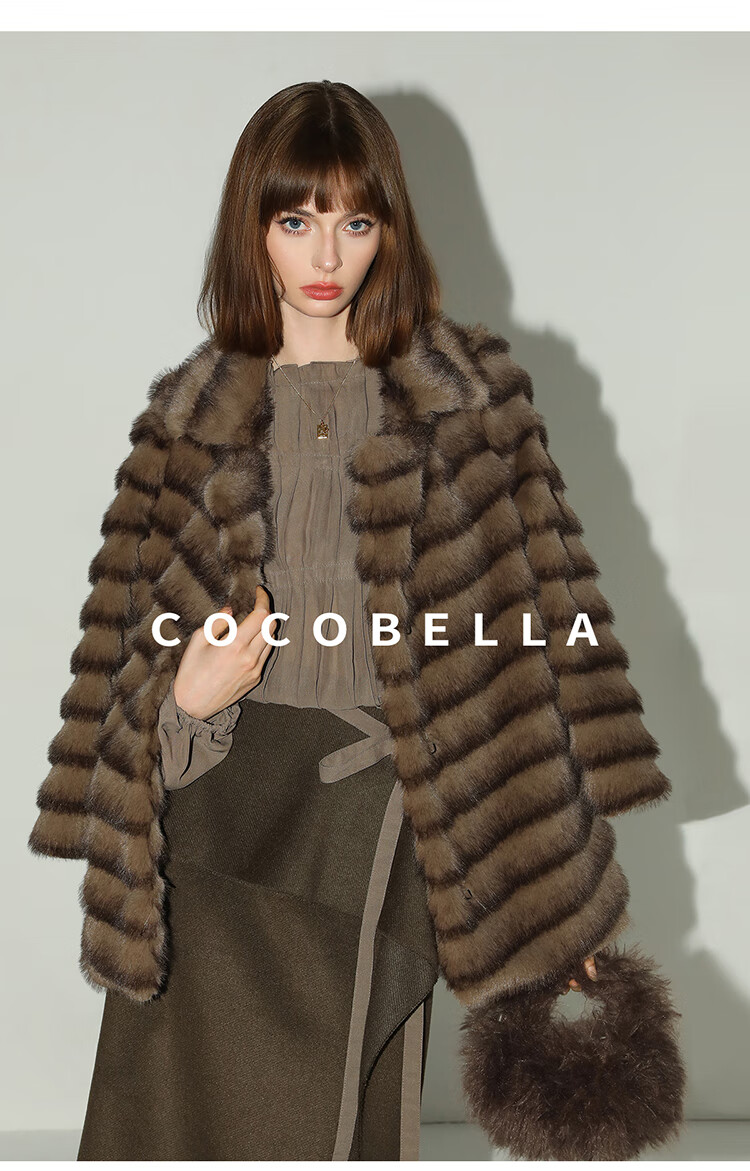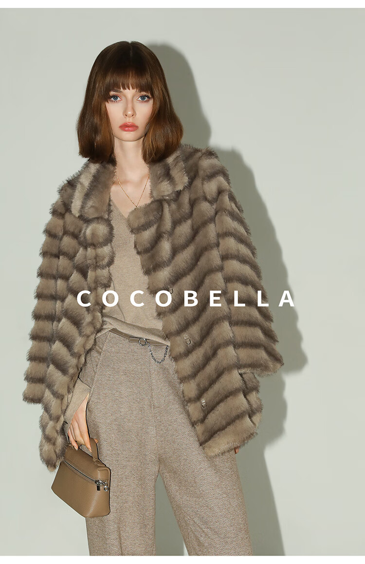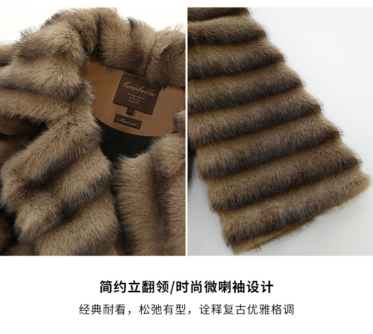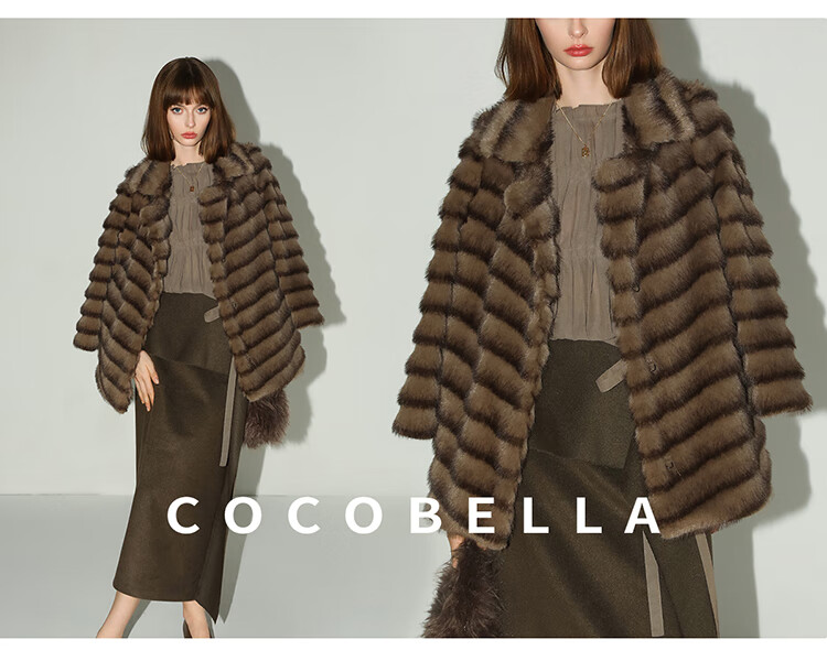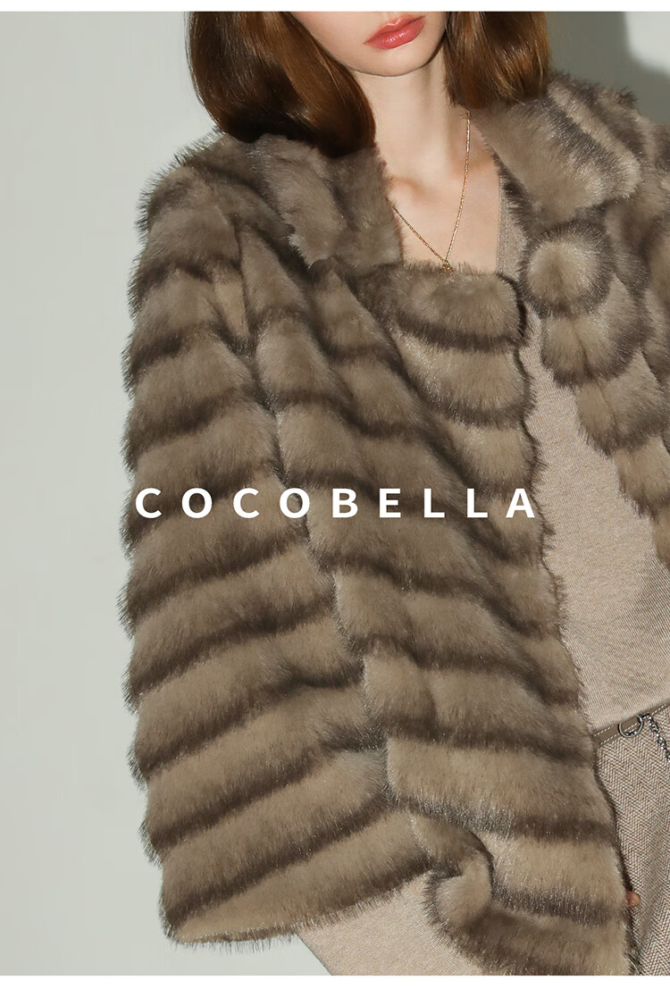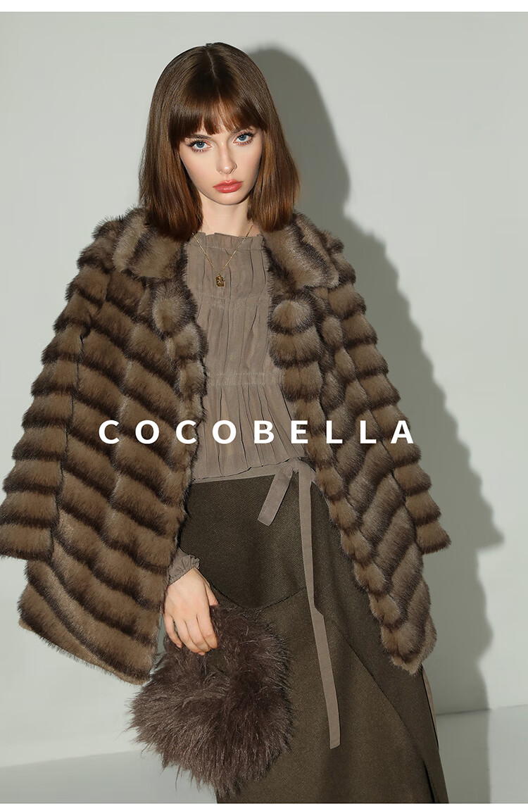 COCOBELLA轻奢仿天鹅绒水貂原色环保皮草外套御寒大衣FU3095