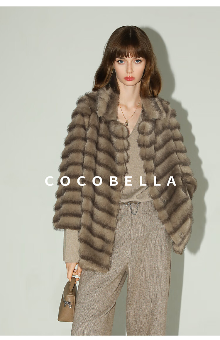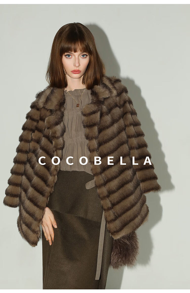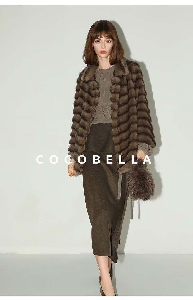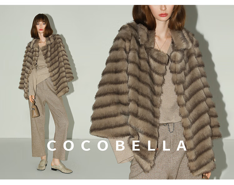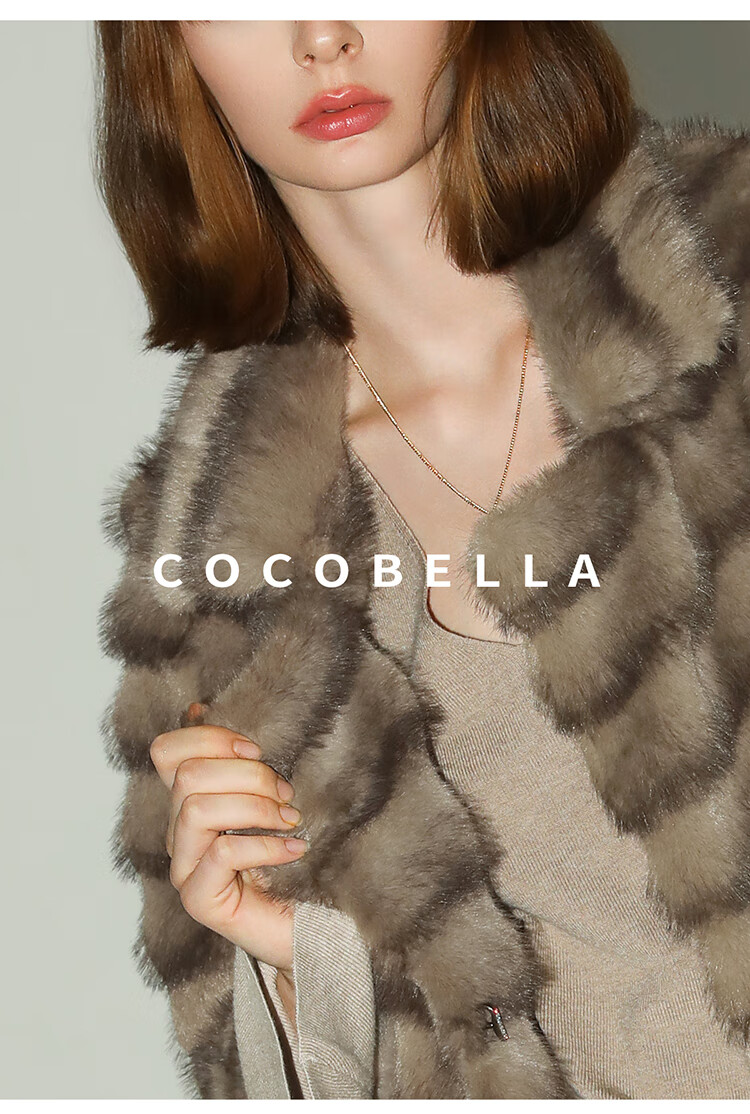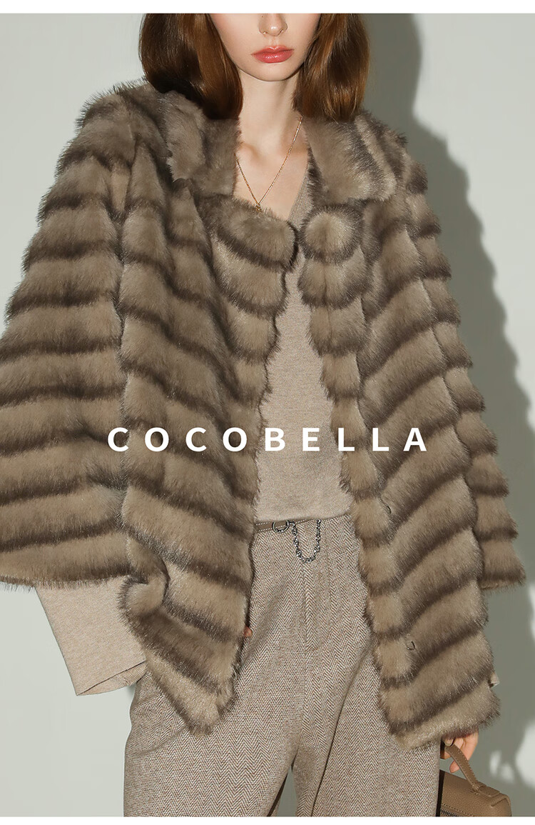 COCOBELLA轻奢仿天鹅绒水貂原色环保皮草外套御寒大衣FU3095