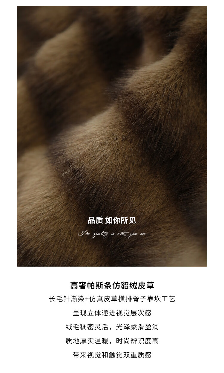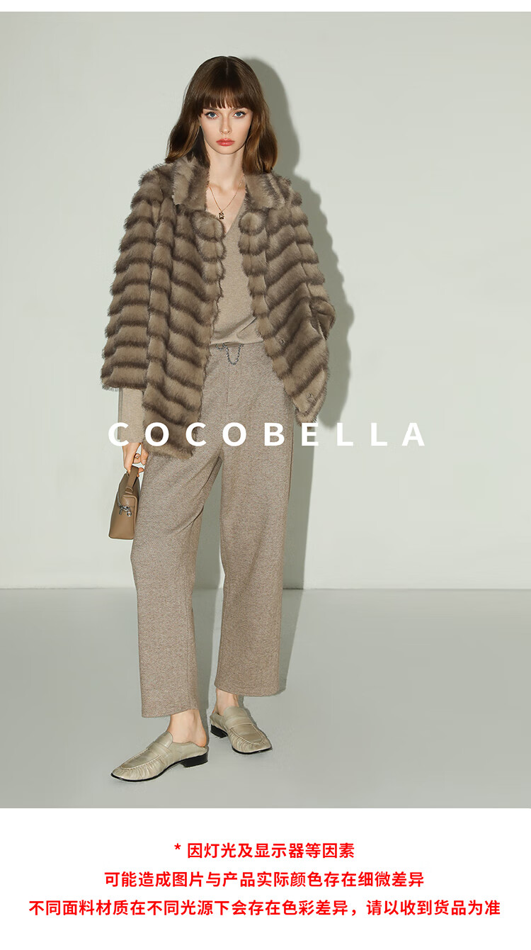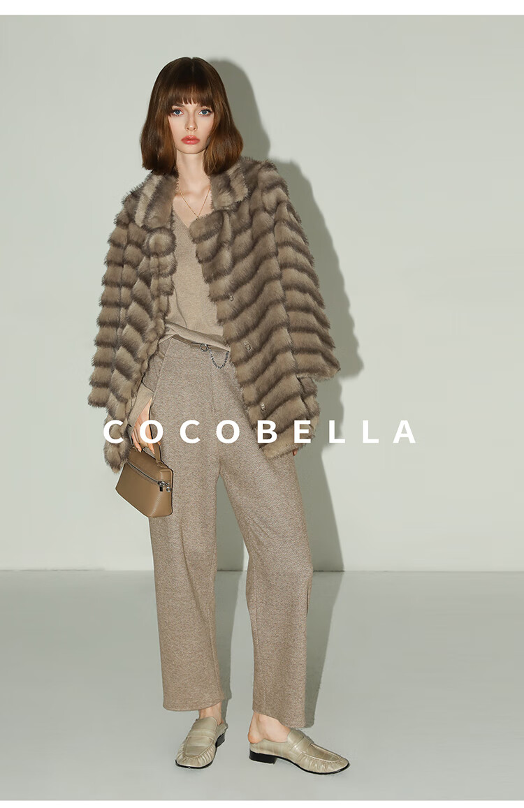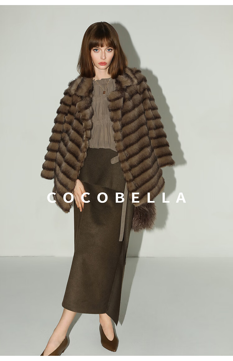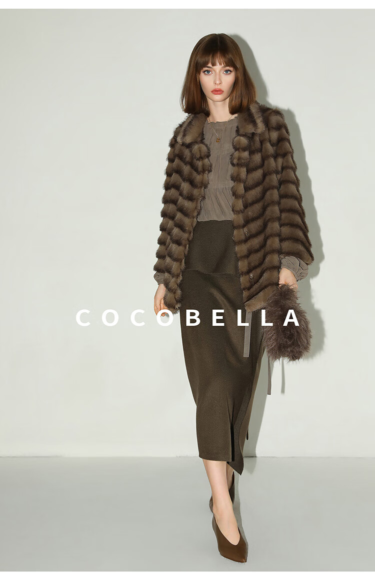 COCOBELLA轻奢仿天鹅绒水貂原色环保皮草外套御寒大衣FU3095