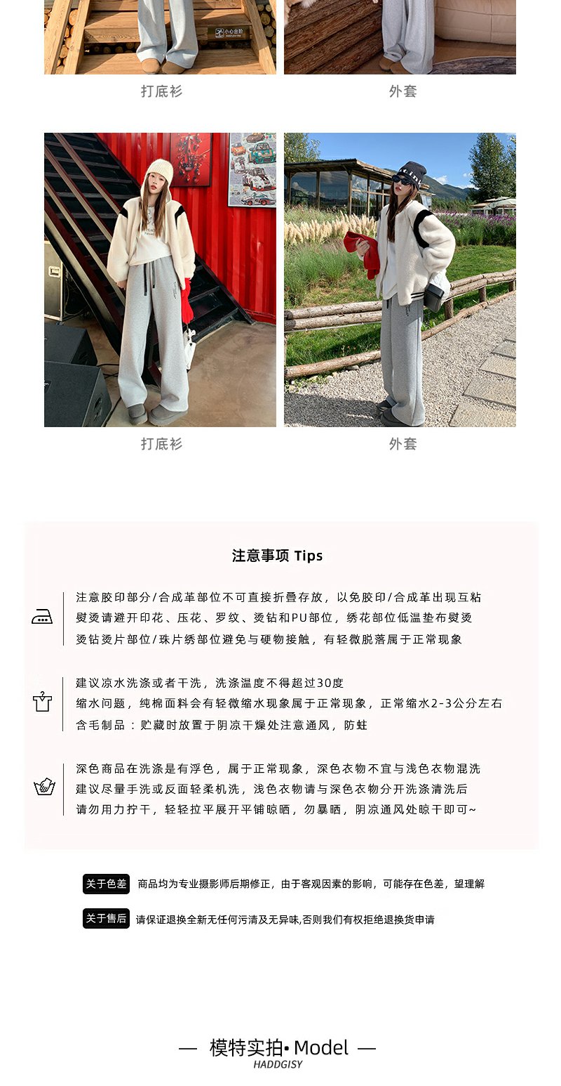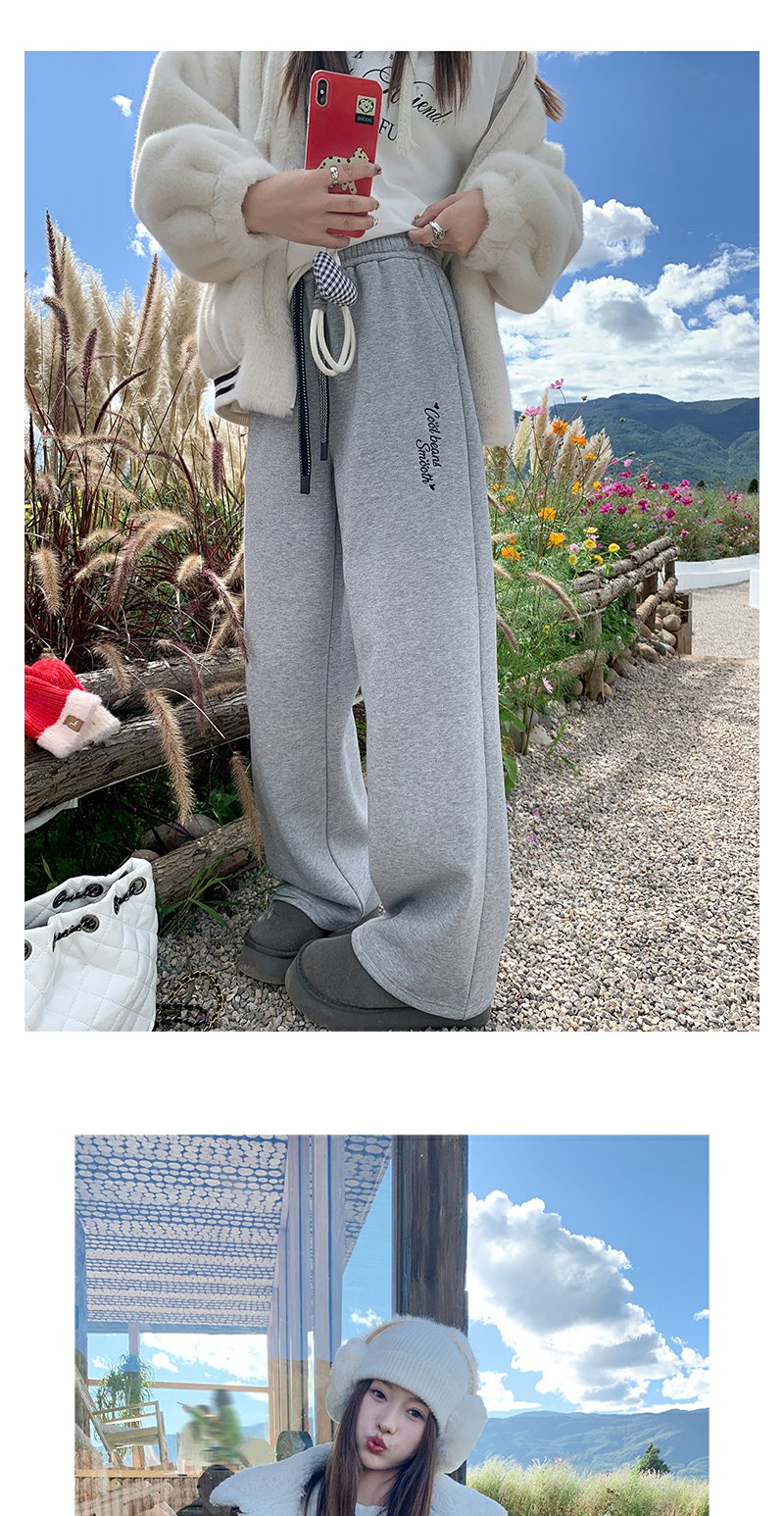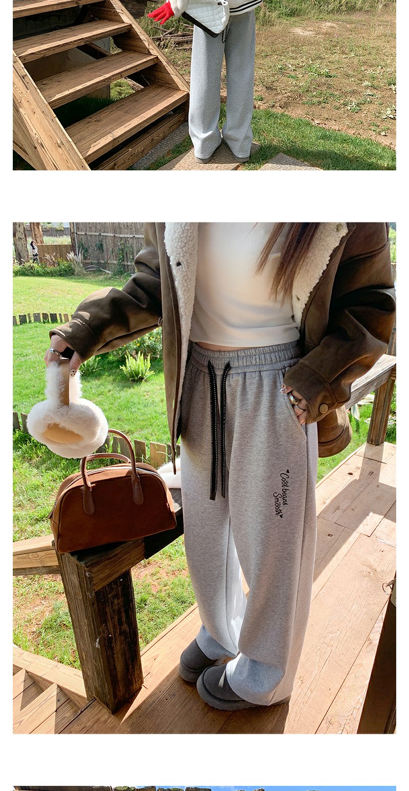 【189元任选2件】最后一波现货!休闲高腰显瘦浅灰色字母加绒休闲裤