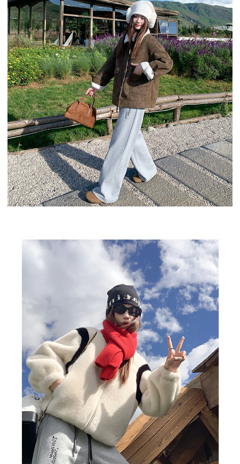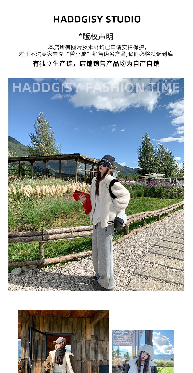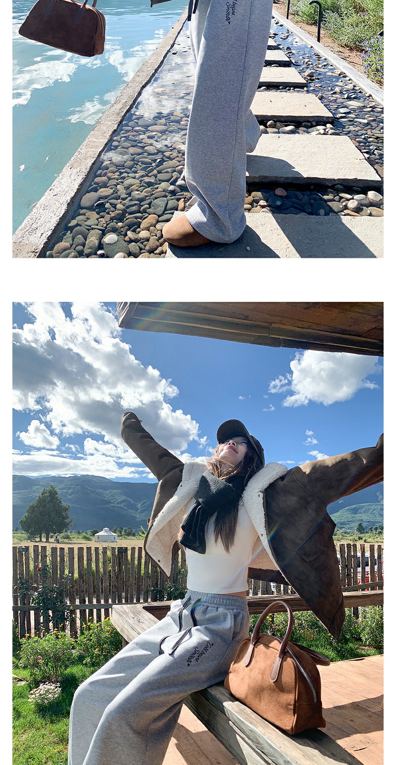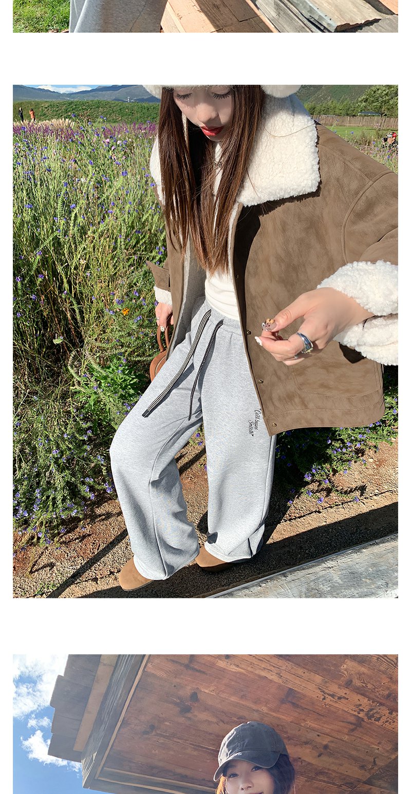 【189元任选2件】最后一波现货!休闲高腰显瘦浅灰色字母加绒休闲裤