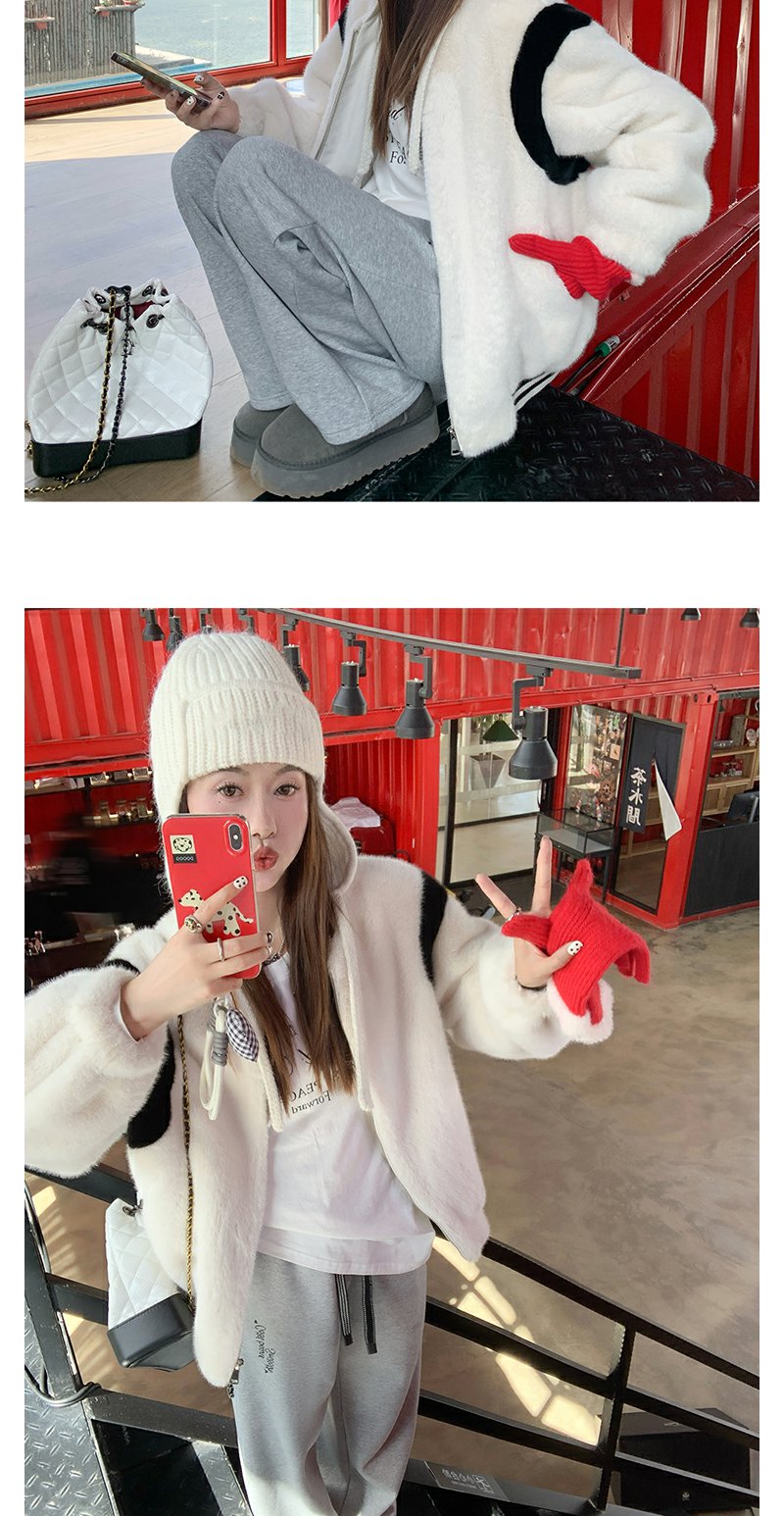 米白色字母长袖T