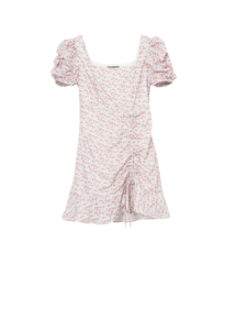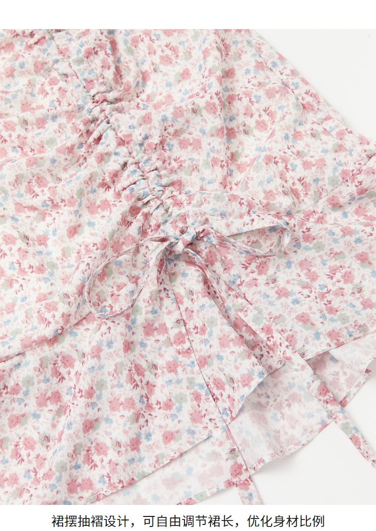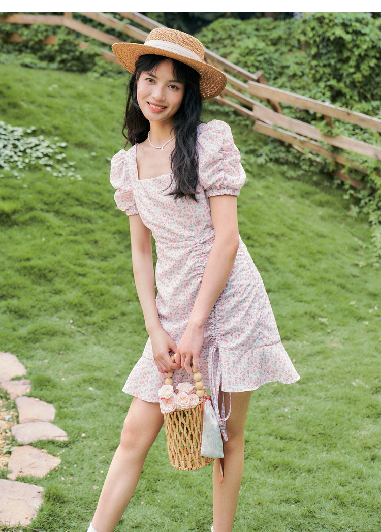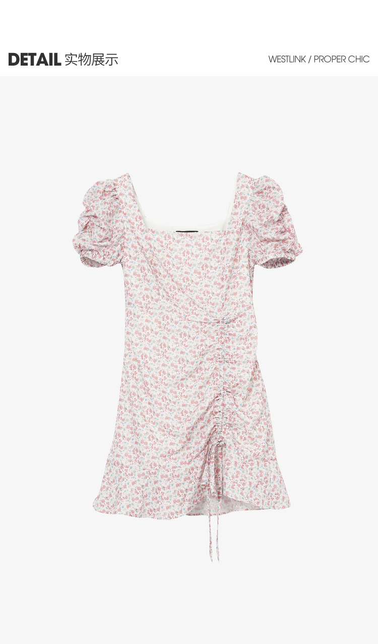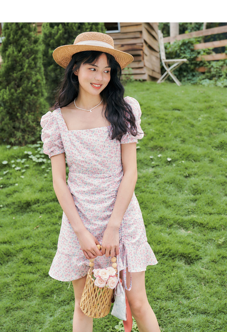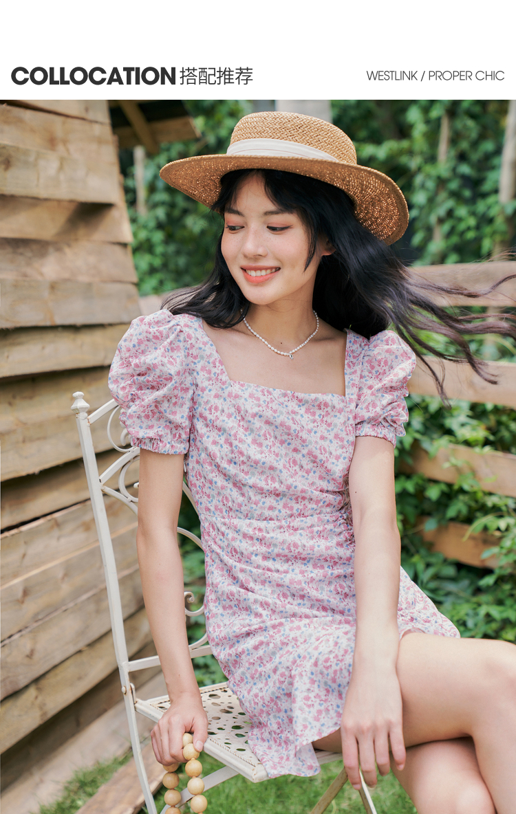 西遇法式碎花连衣裙春夏季新款泡泡袖性感裙子方领V0820558