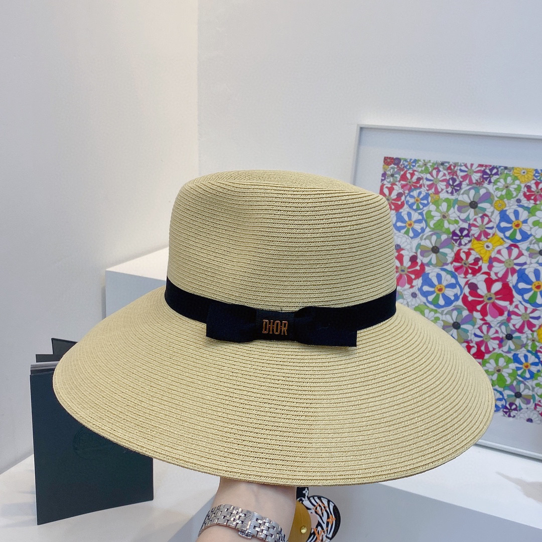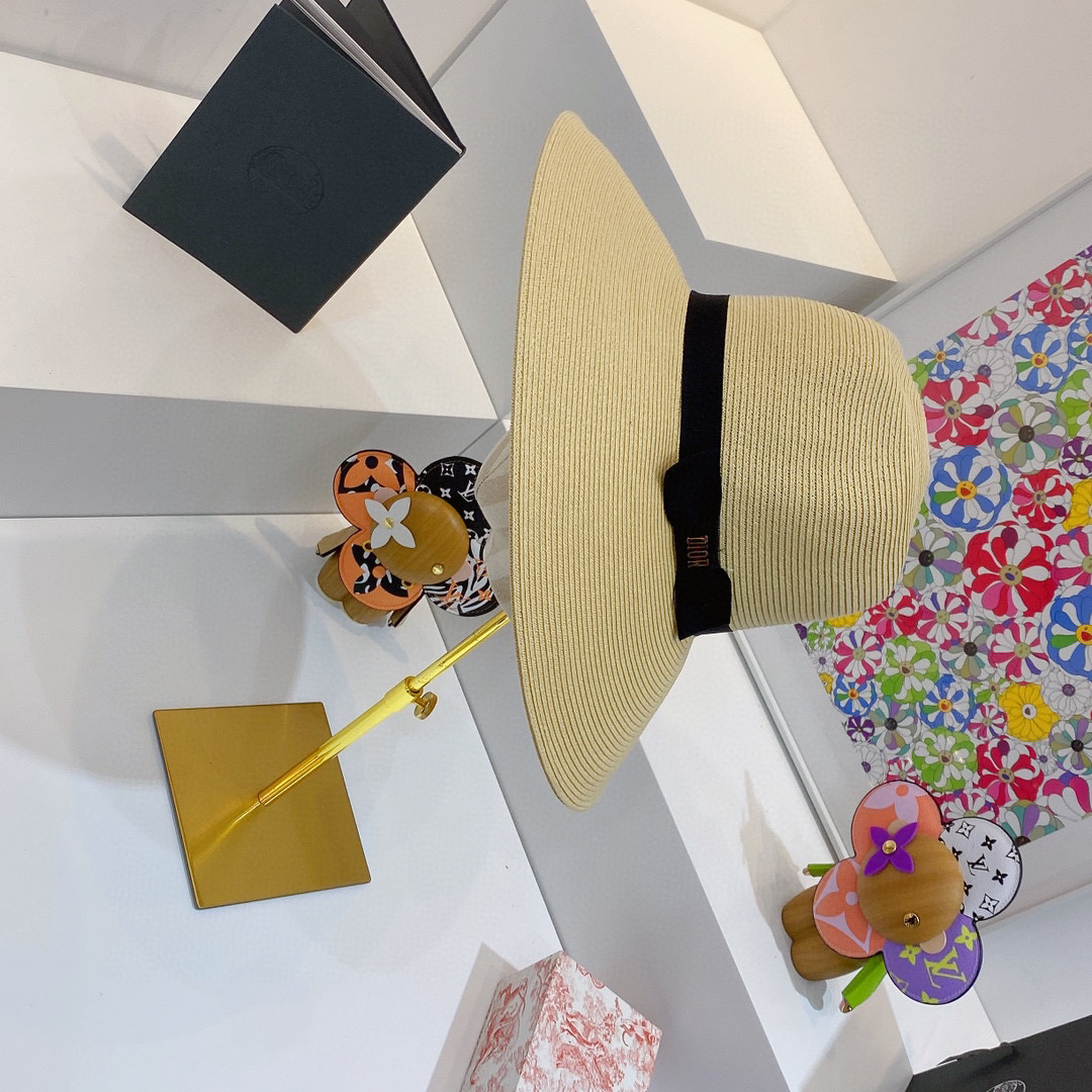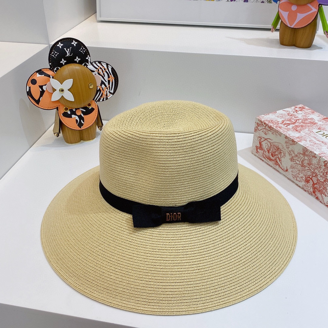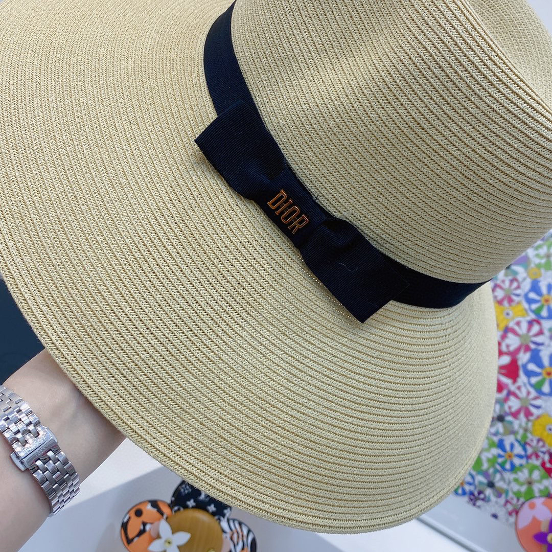 D!or春夏款PP草布遮阳帽太阳帽,台湾PP 草超轻材质,高级麻棉手工蝴蝶结,轻盈透气可折叠,携带方便,雅致大气,出游必备单品