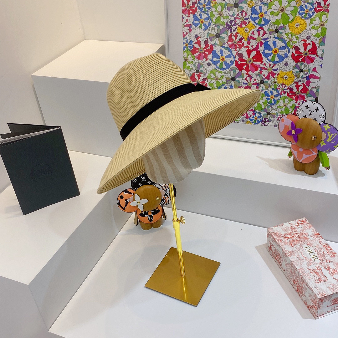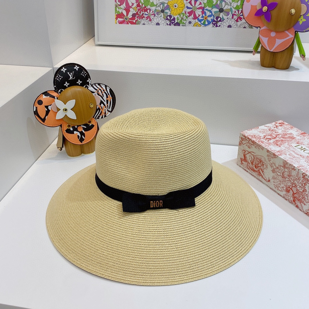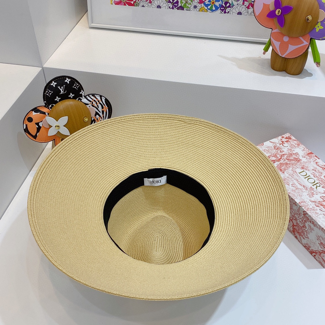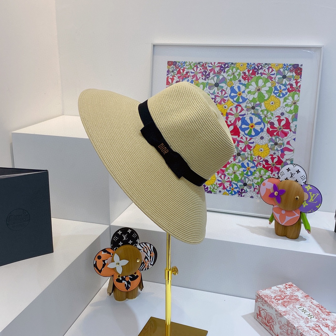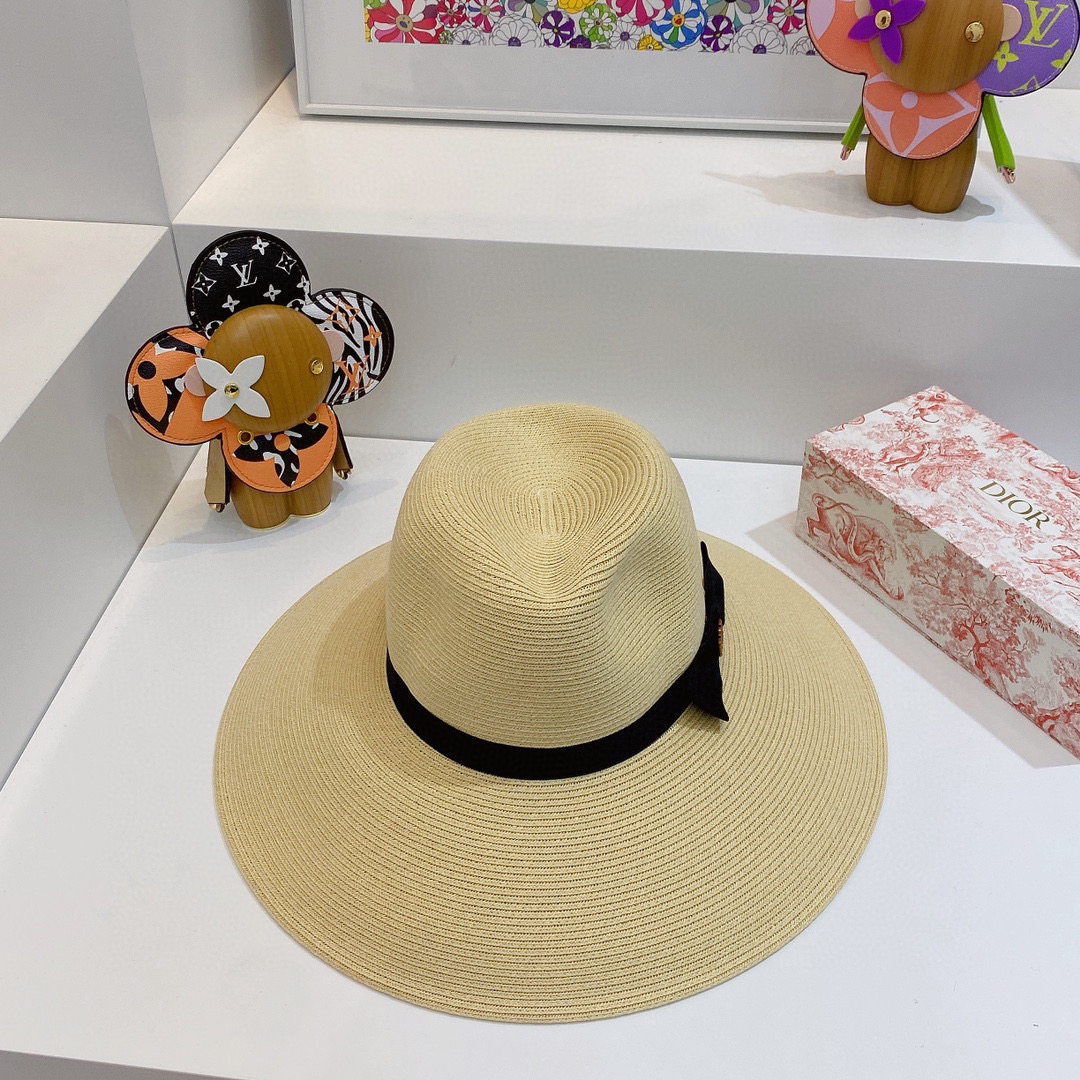 D!or春夏款PP草布遮阳帽太阳帽,台湾PP 草超轻材质,高级麻棉手工蝴蝶结,轻盈透气可折叠,携带方便,雅致大气,出游必备单品