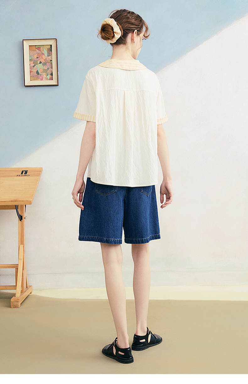 背带裤 两三事藏匿美梦 夏季新款休闲不规则撞色背带裤女高腰短裤