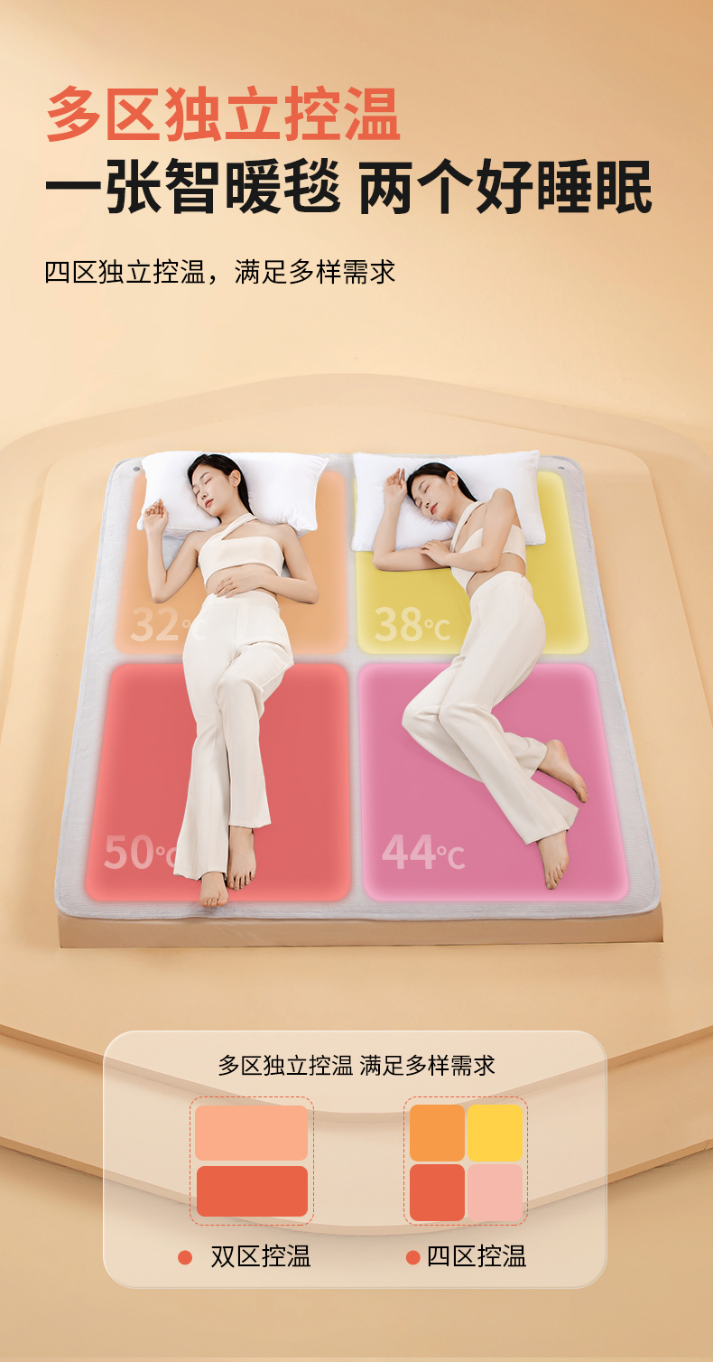【纳遇】电热毯智暖毯智能控温碳纳米管加热除螨电褥子双面可盖毯多尺寸选择