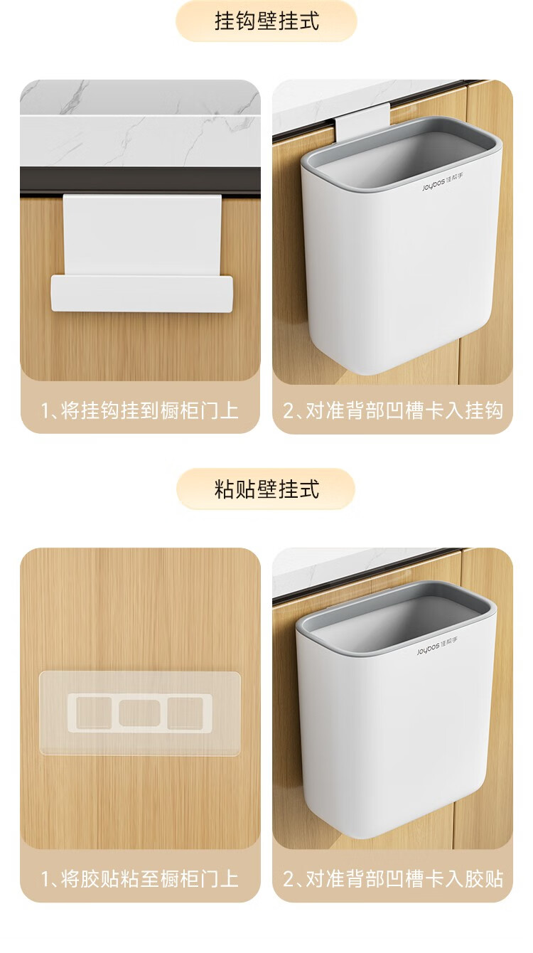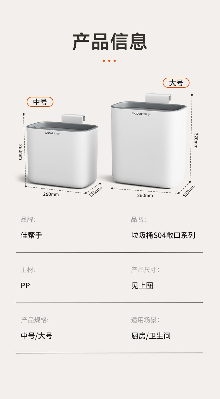 佳帮手厕所卫生间洗手间专用垃圾桶壁挂式厨房悬挂家用垃圾桶带盖中号 100066526146