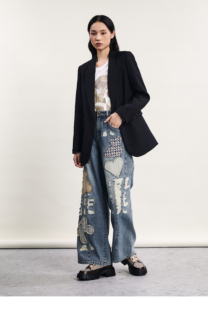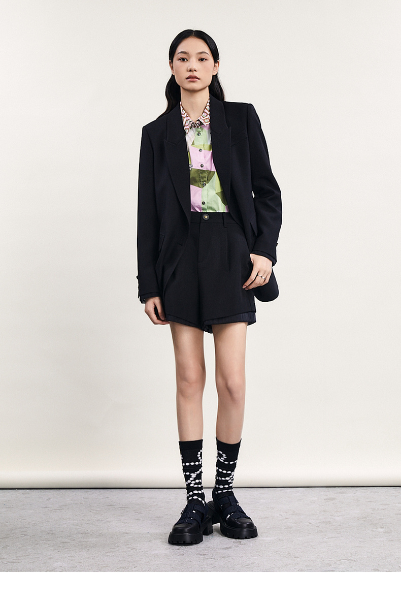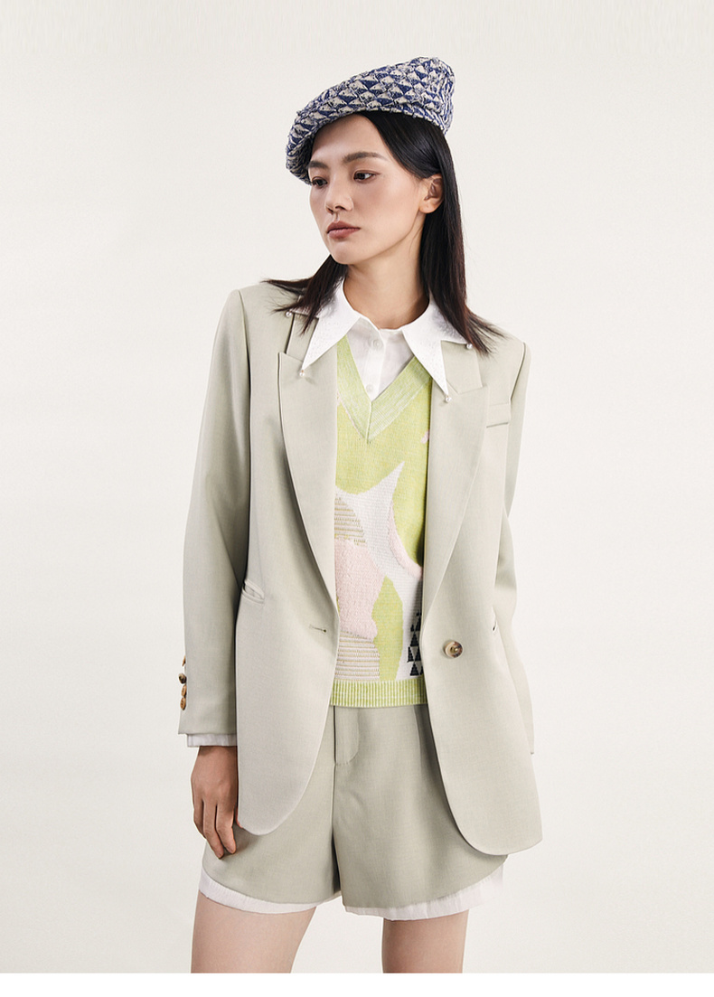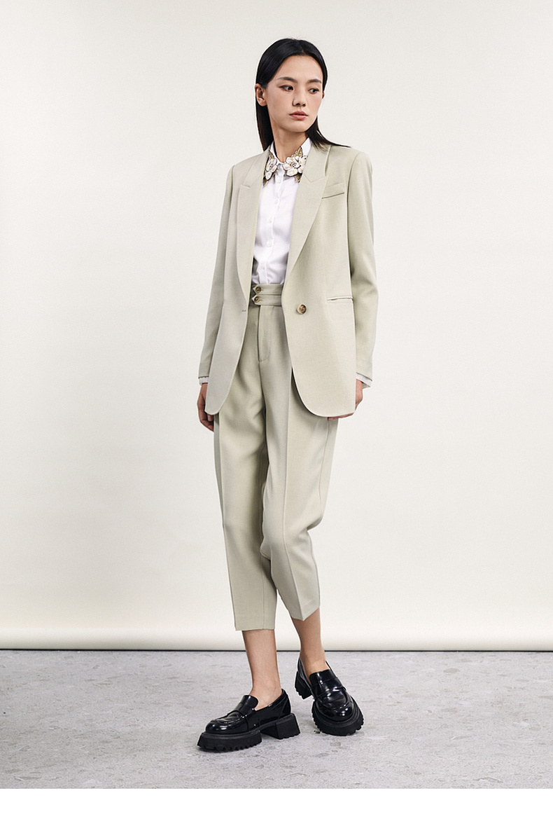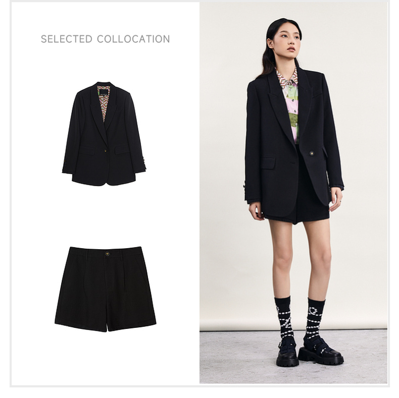 谜底西服女2024春季新款通勤风时尚宽松一粒扣西装外套241MW0073