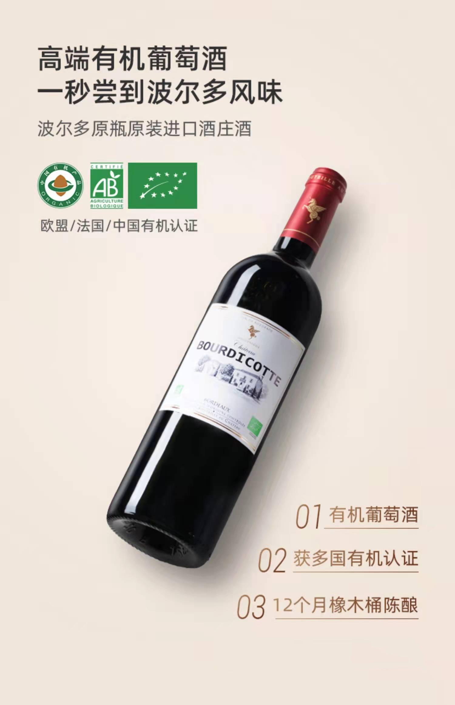 法国翡马伯帝克有机干红葡萄酒 原瓶进口红酒马尔贝克 礼盒装支持自提