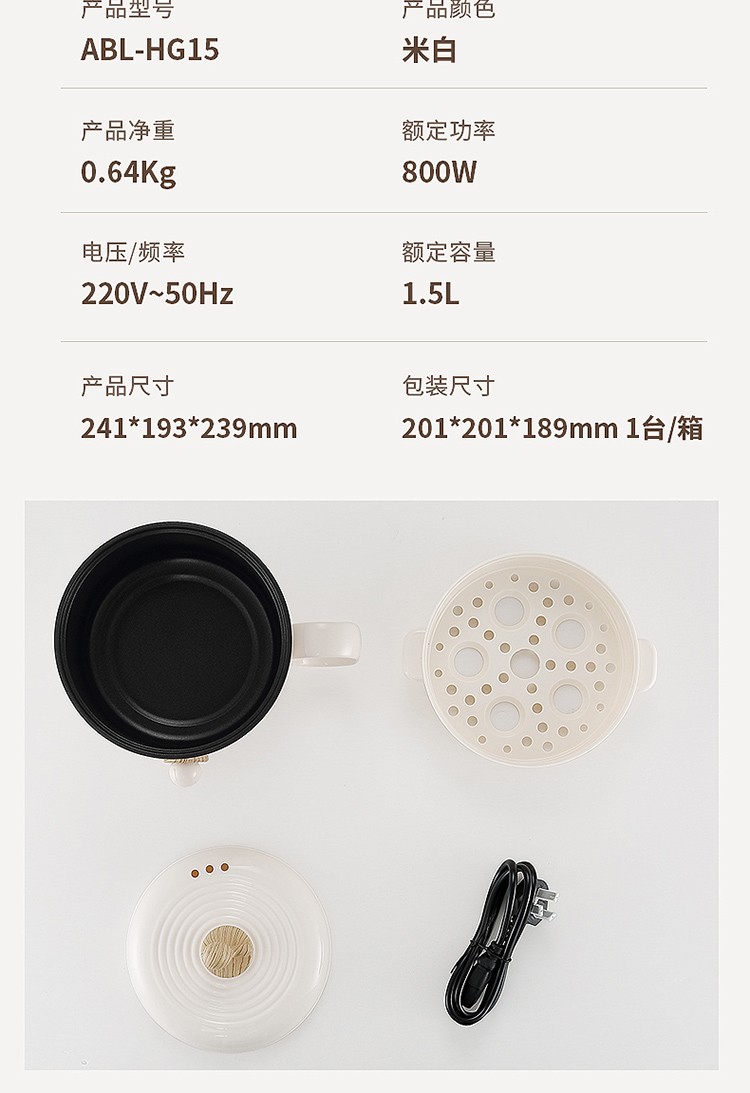 【小家电】Abereve 电火锅(带蒸笼) ABL-HG15 HF