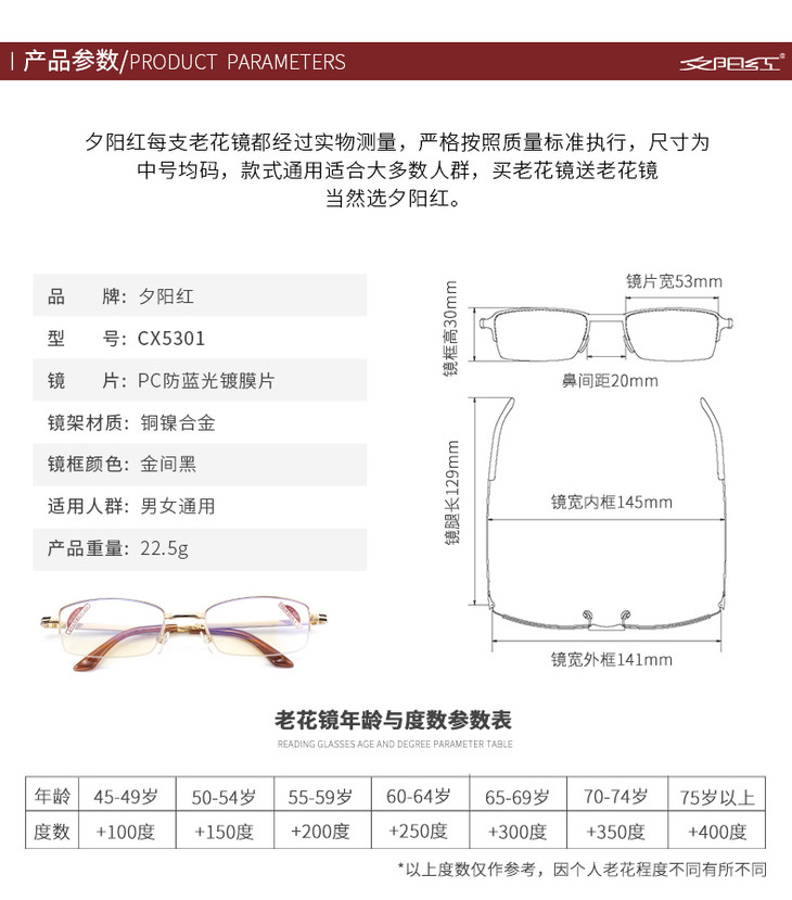 夕阳红正品防蓝光老花镜男女折叠眼镜高清远视镜老人老化镜老光镜5301