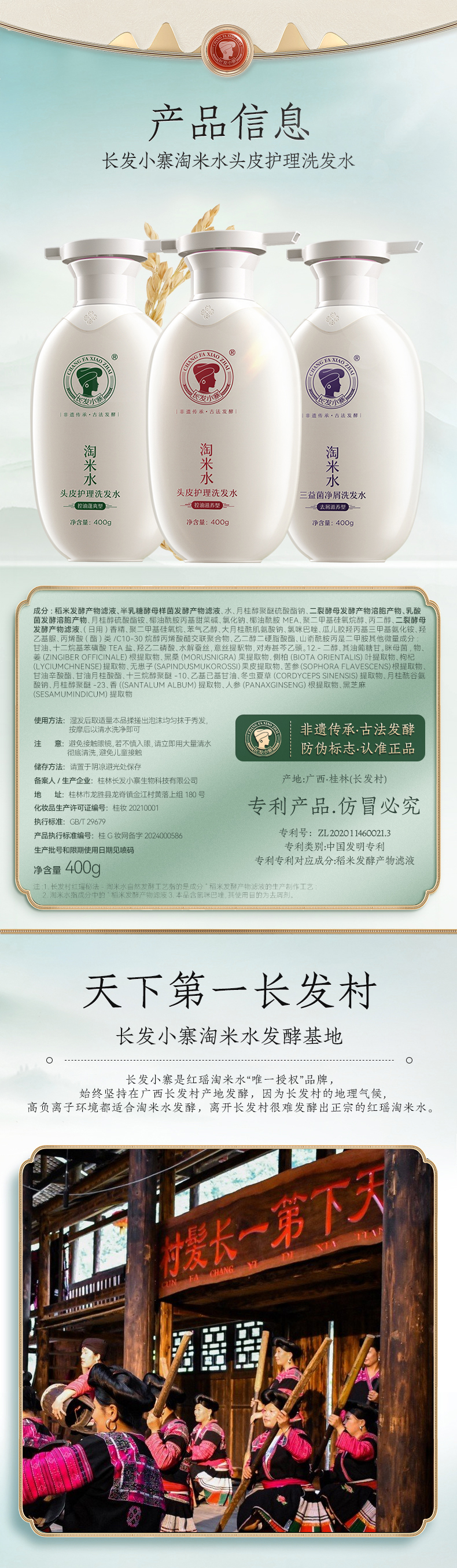 长发小寨淘米水头皮护理洗发水 单品/组合 (CFXZ)