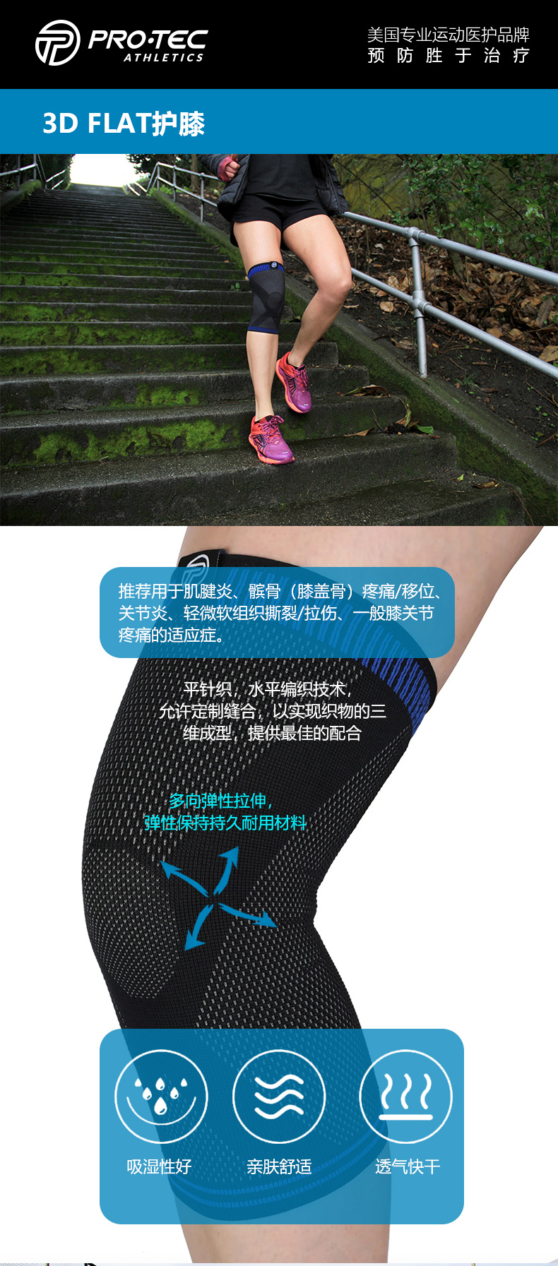 PRO-TEC 3D FLAT KNEE SUPPORT 运动跑步护膝 单只装