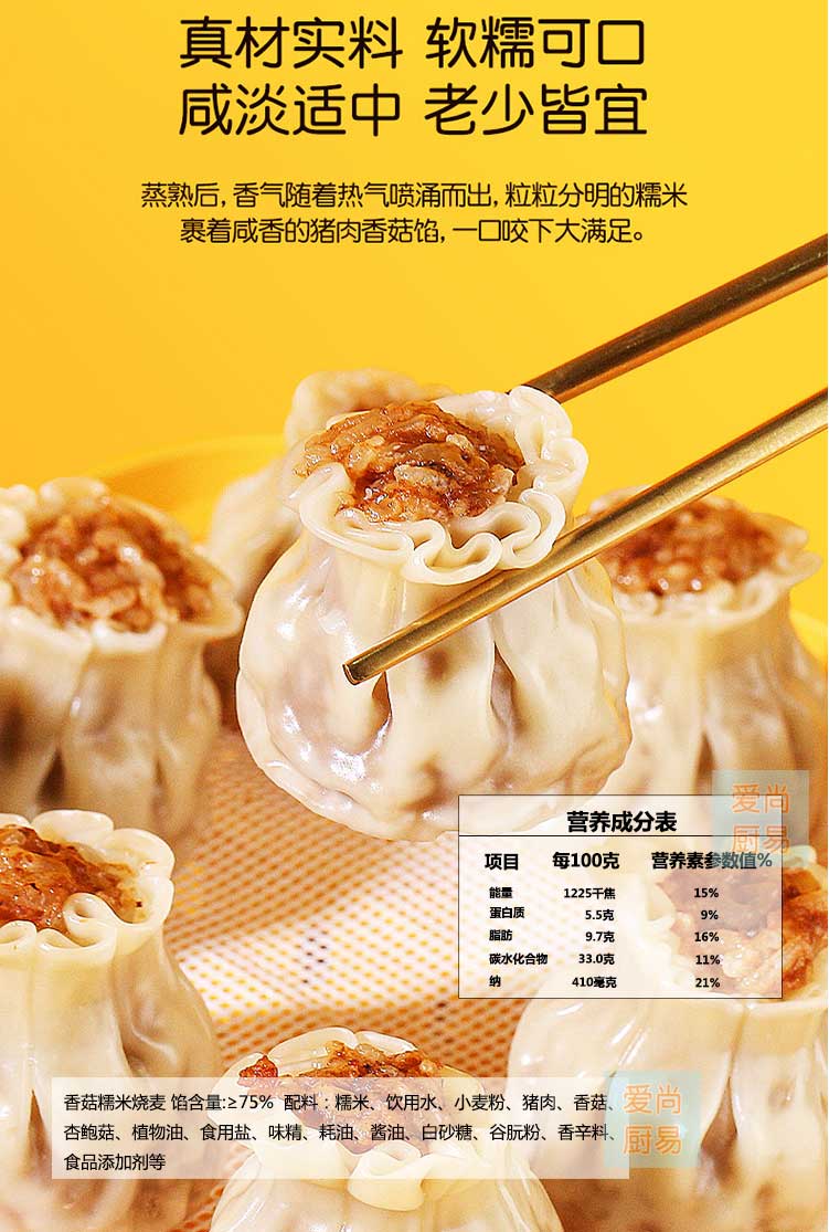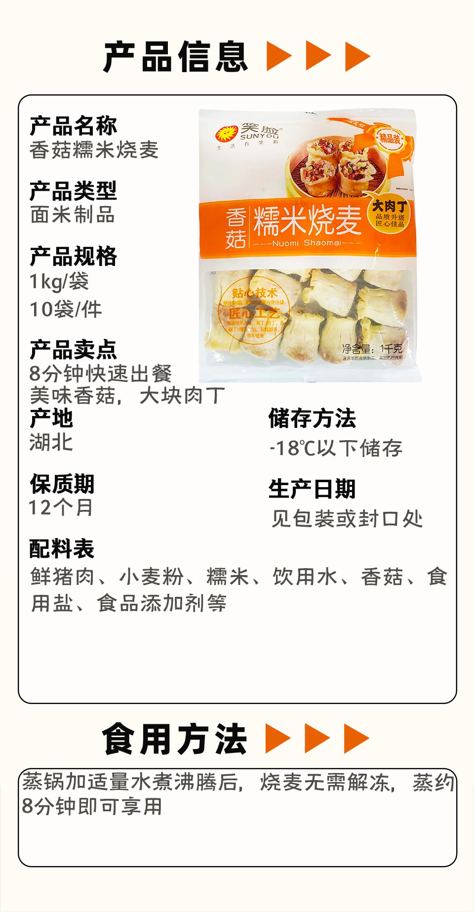 笑脸糯米烧麦(猪肉香菇)1kg/袋(50g/个) 10袋/件