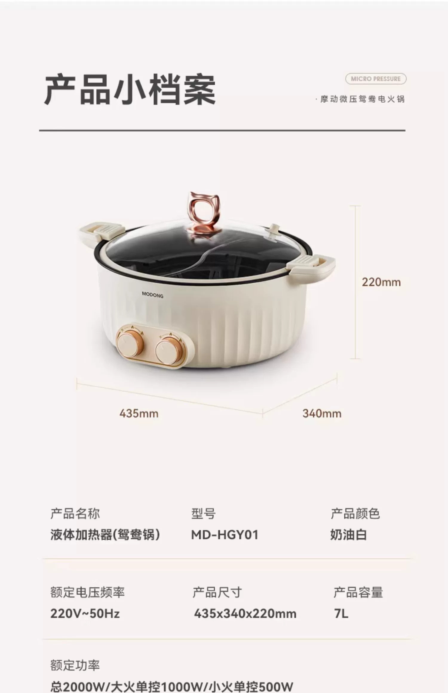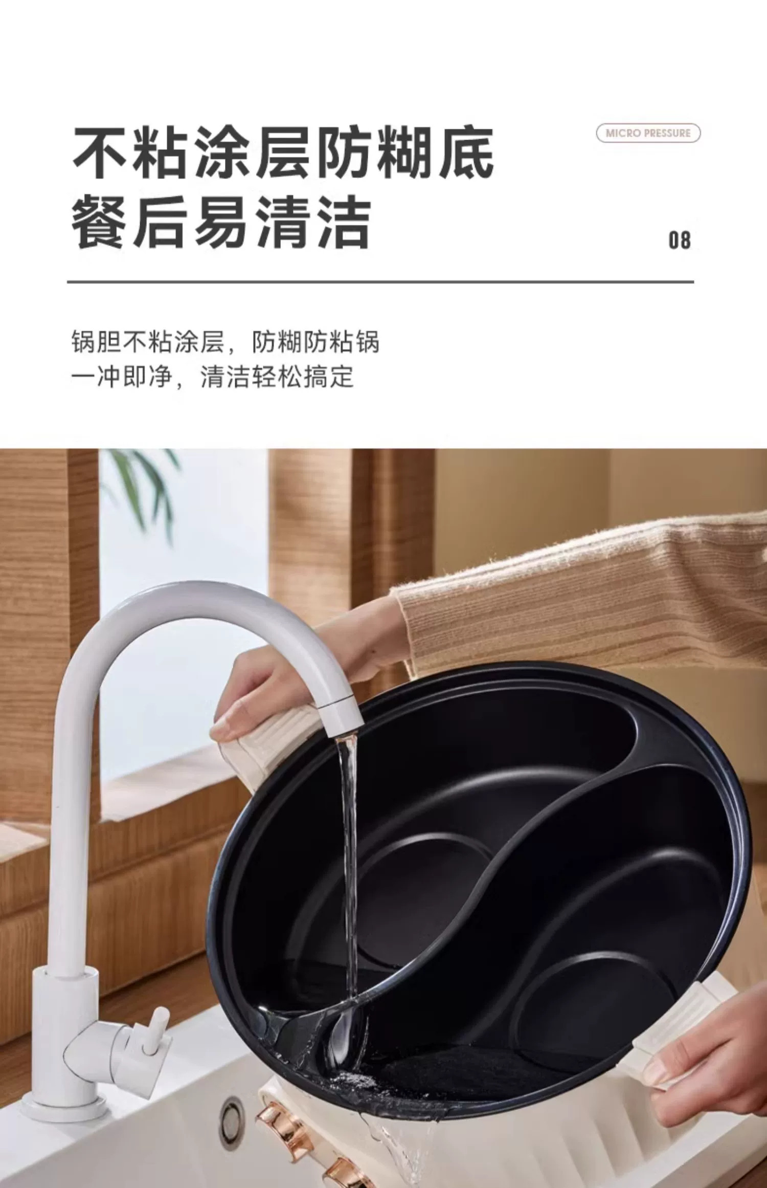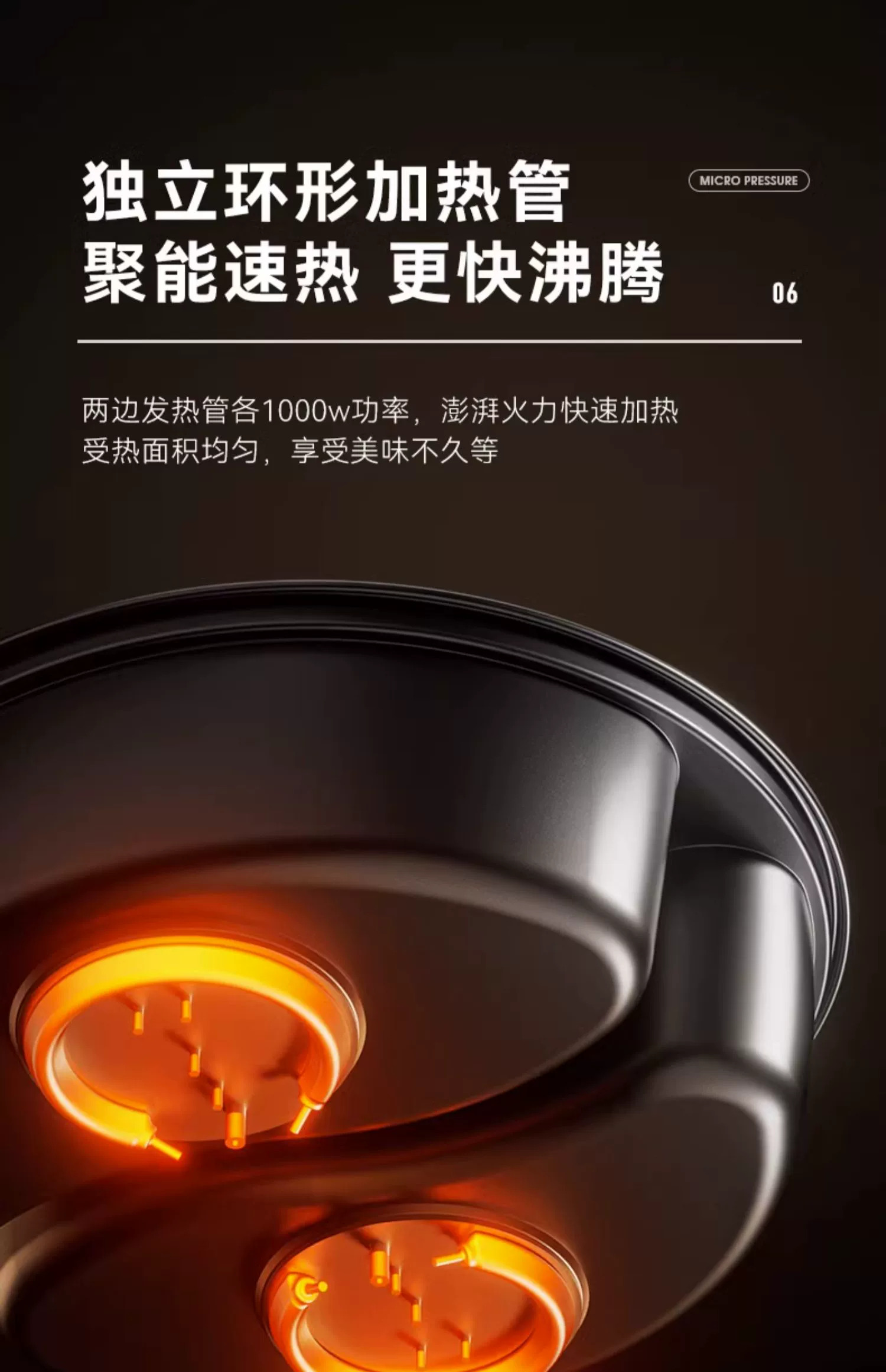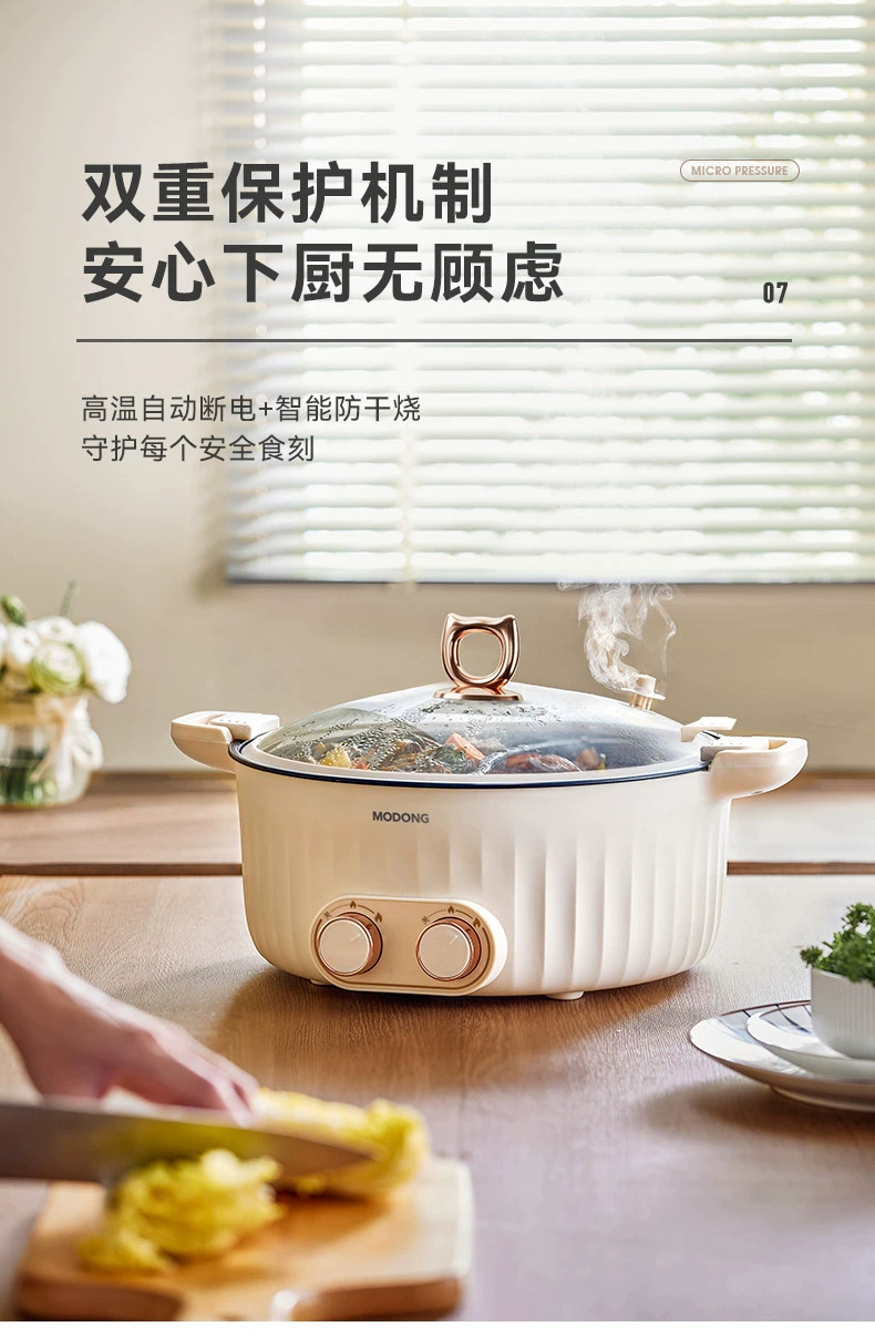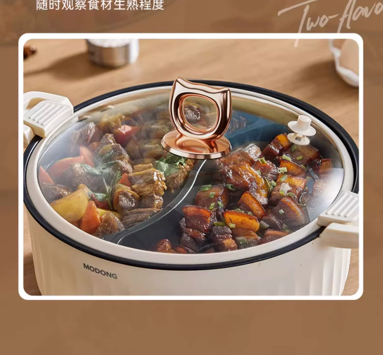 摩动鸳鸯电火锅家用微压小电锅6L大容量多功能一体电炒锅蒸电煮锅