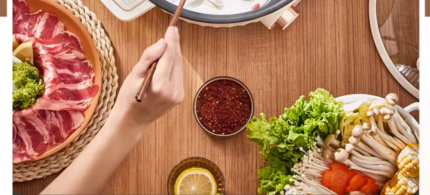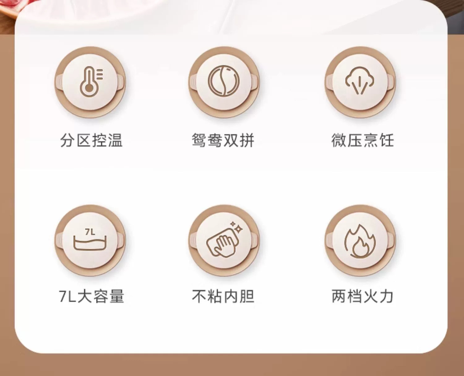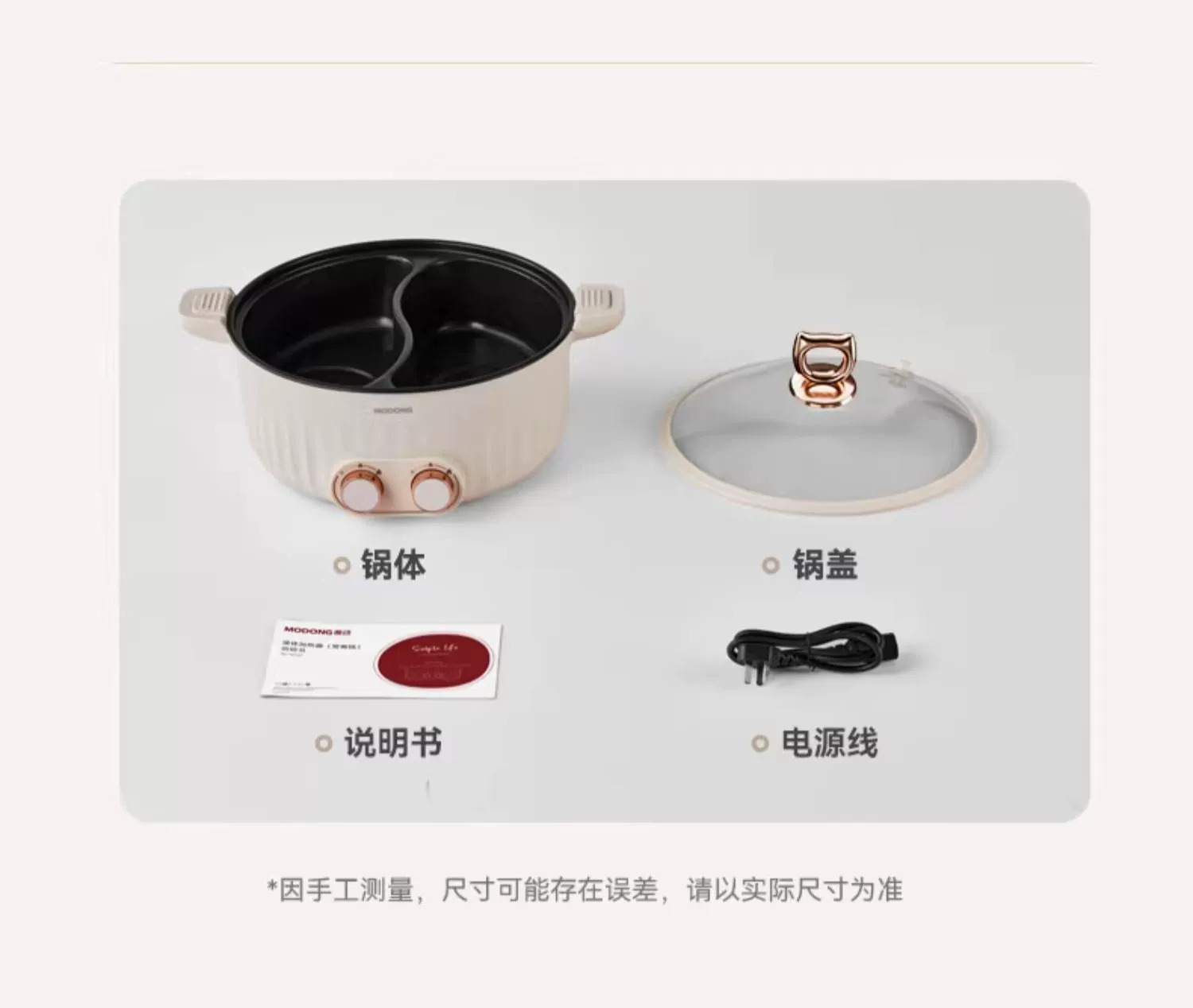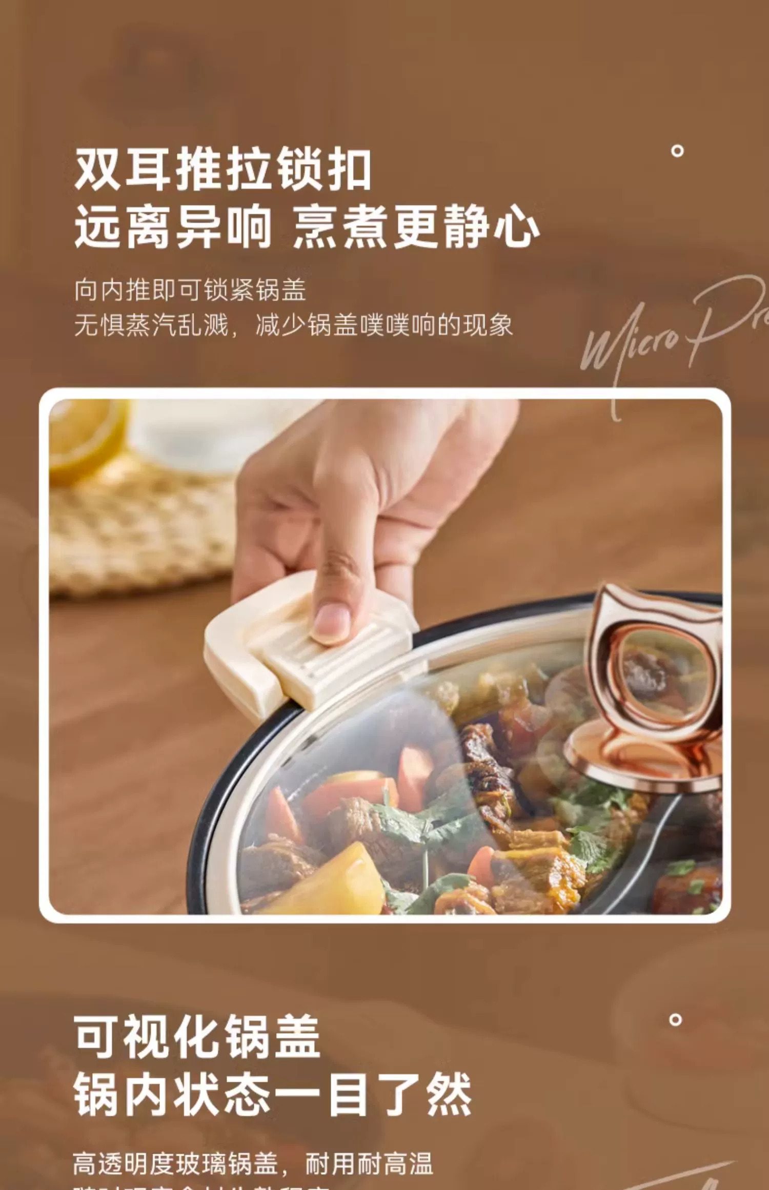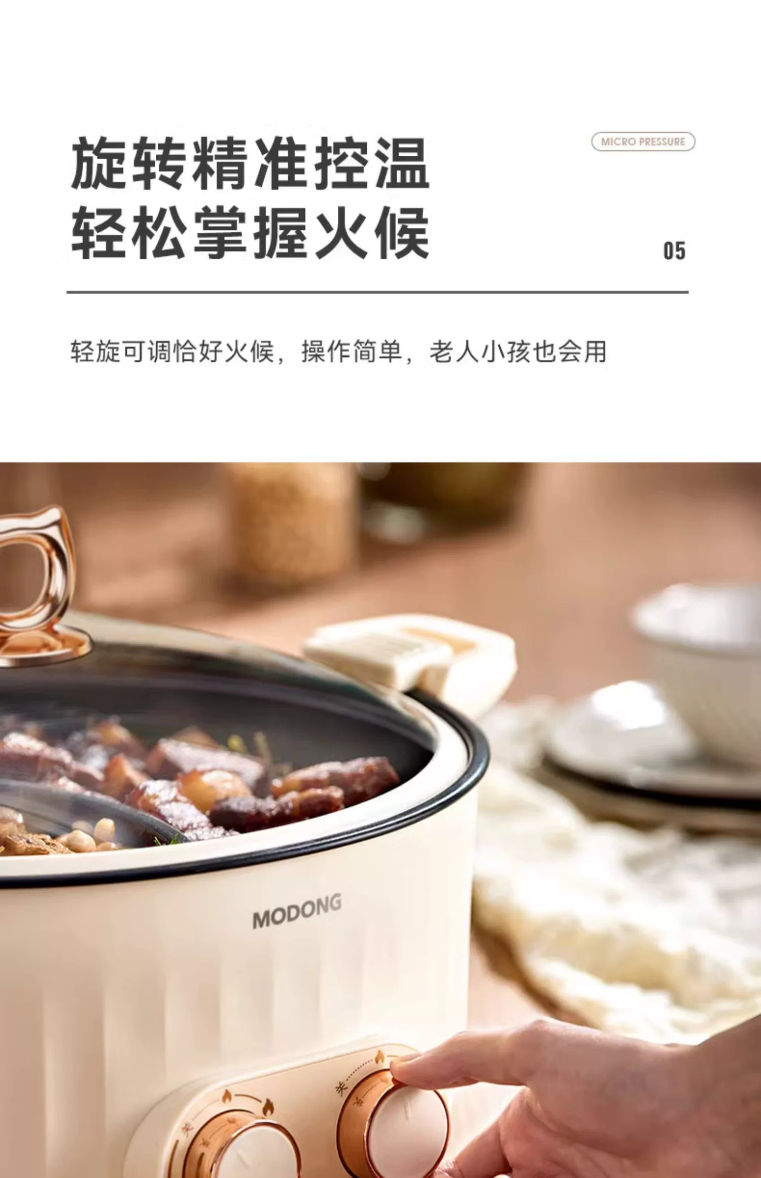摩动鸳鸯电火锅家用微压小电锅6L大容量多功能一体电炒锅蒸电煮锅