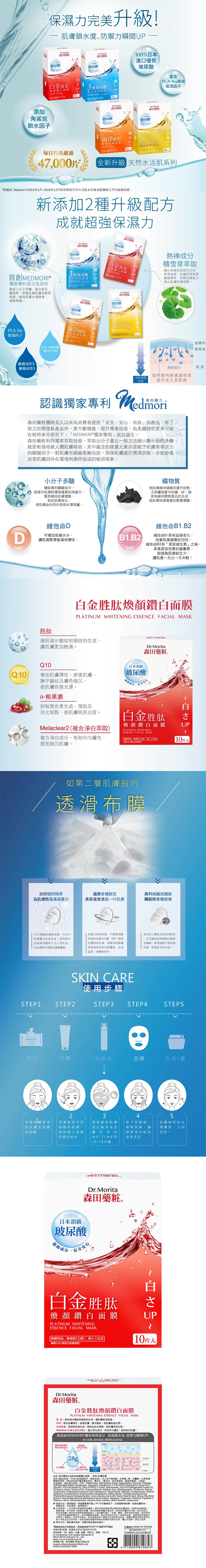 森田药妆 白金胜肽焕颜赞白面膜 10片/盒