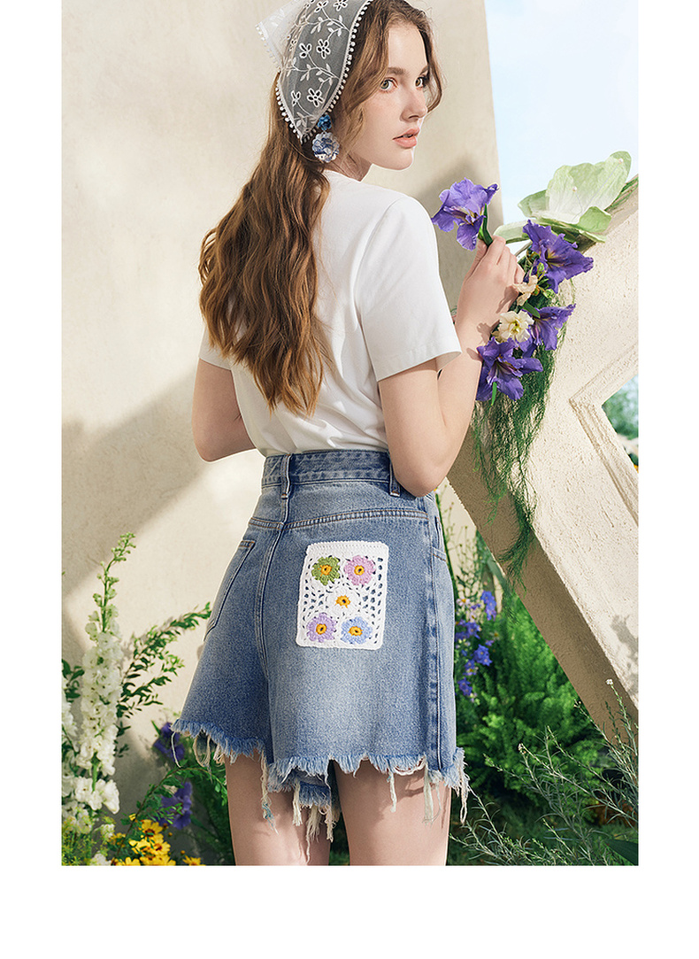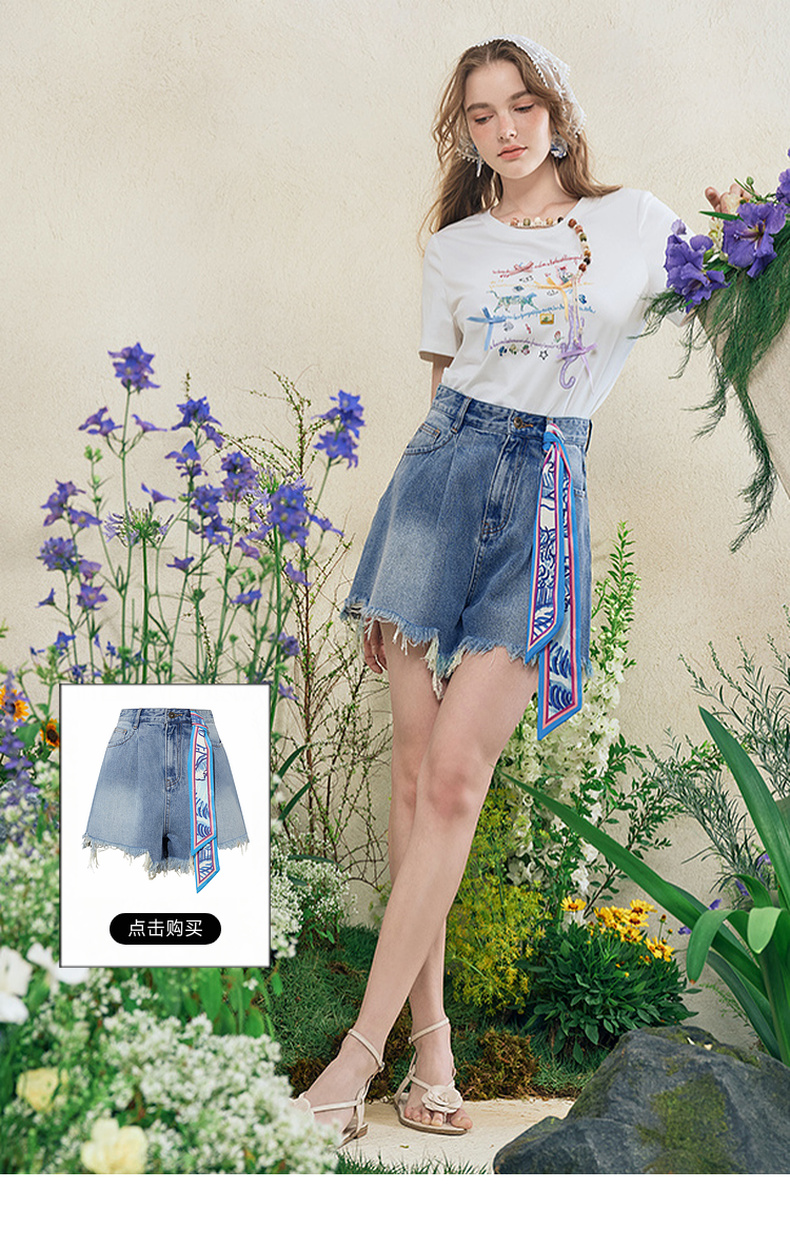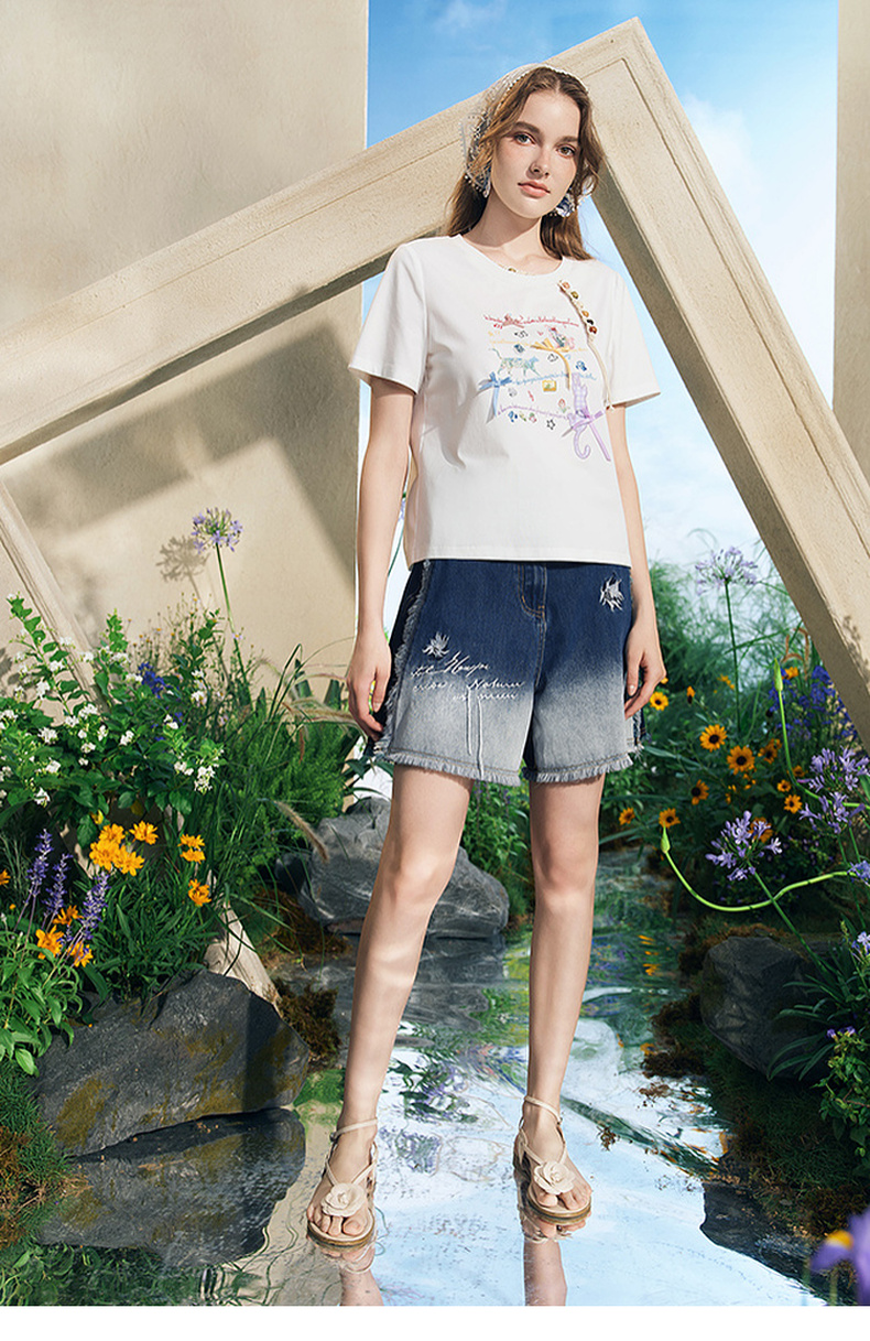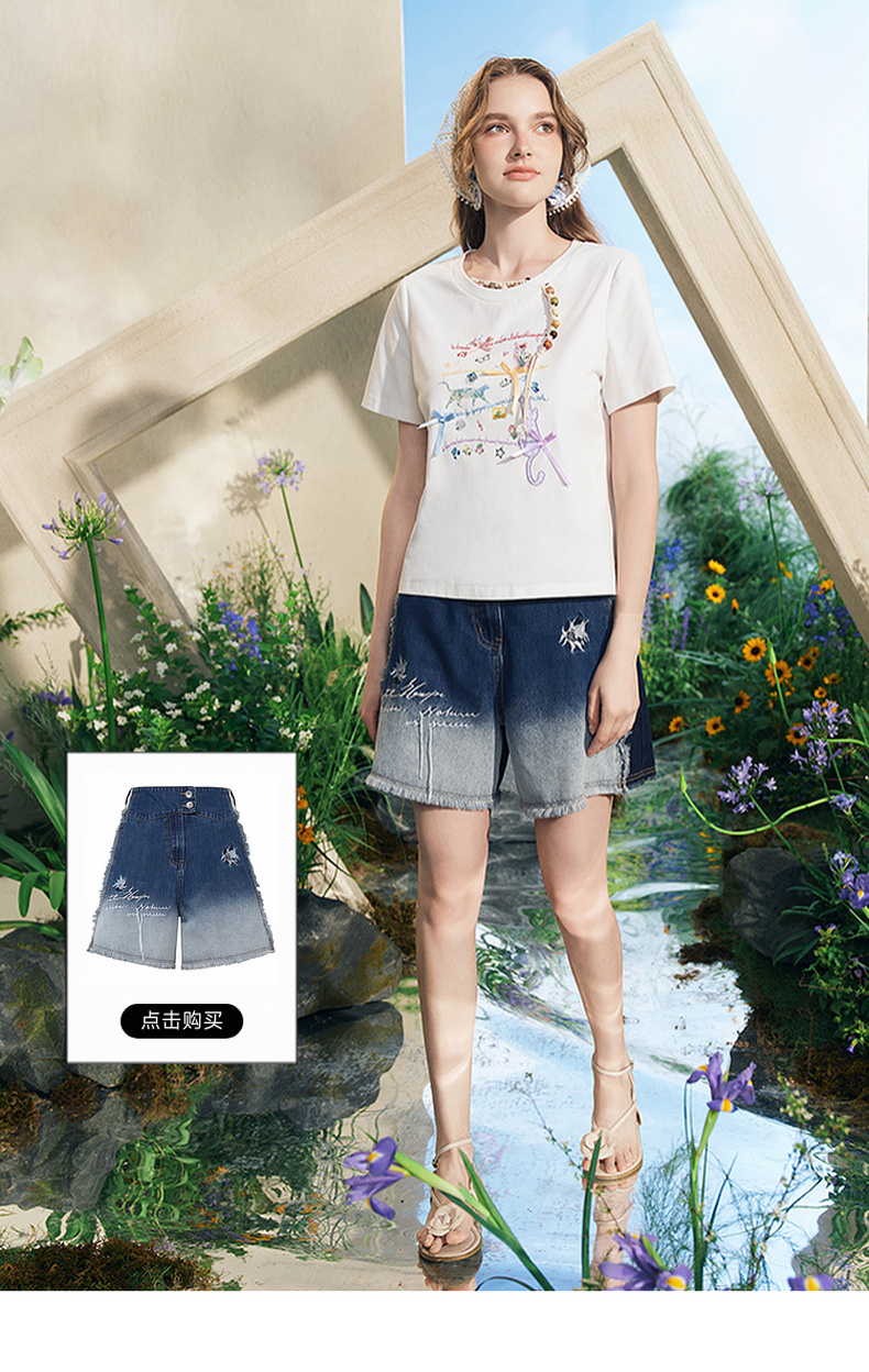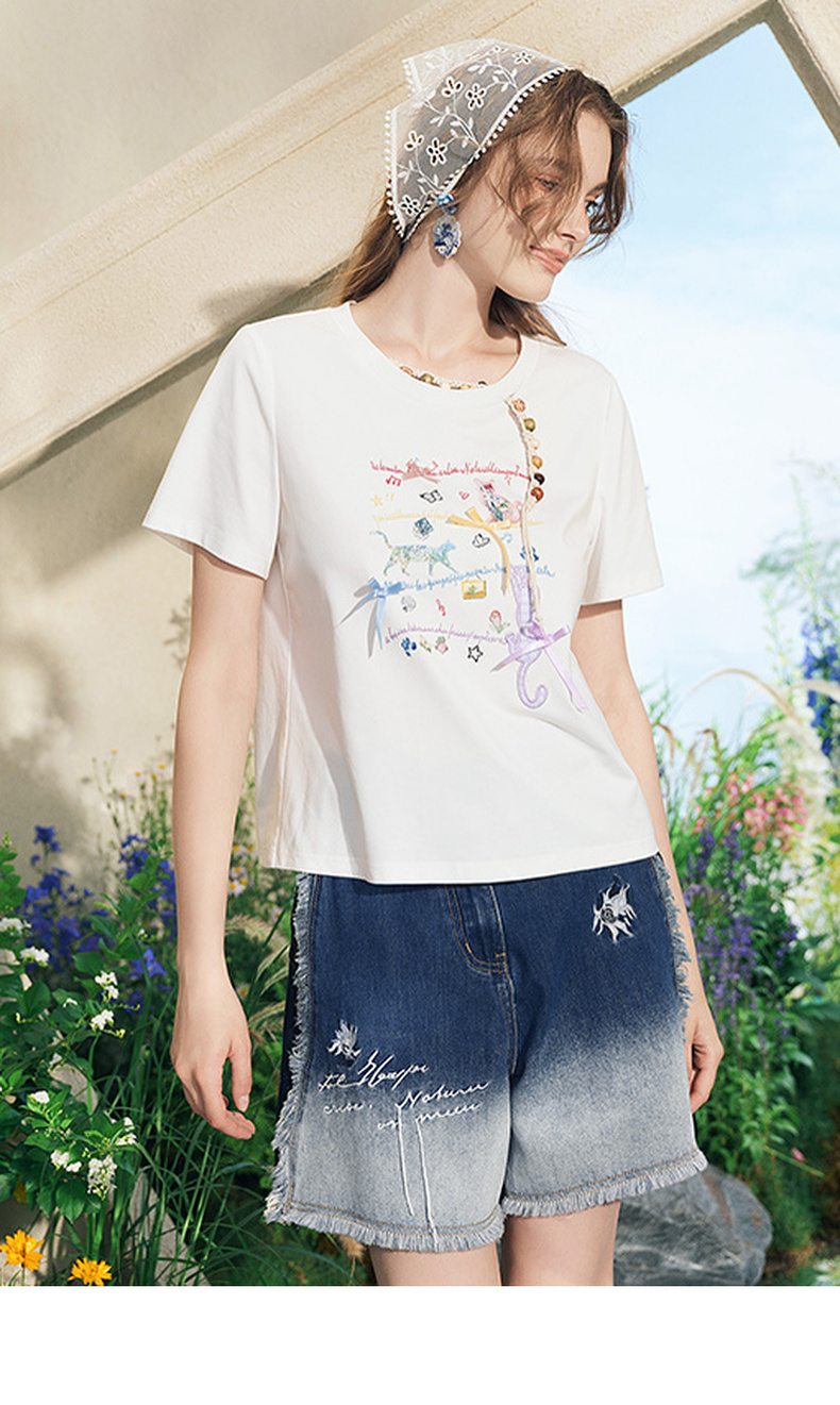 两三事梵高文艺 喵游记 2025夏季新款串珠装饰蝴蝶结贴布绣t恤女