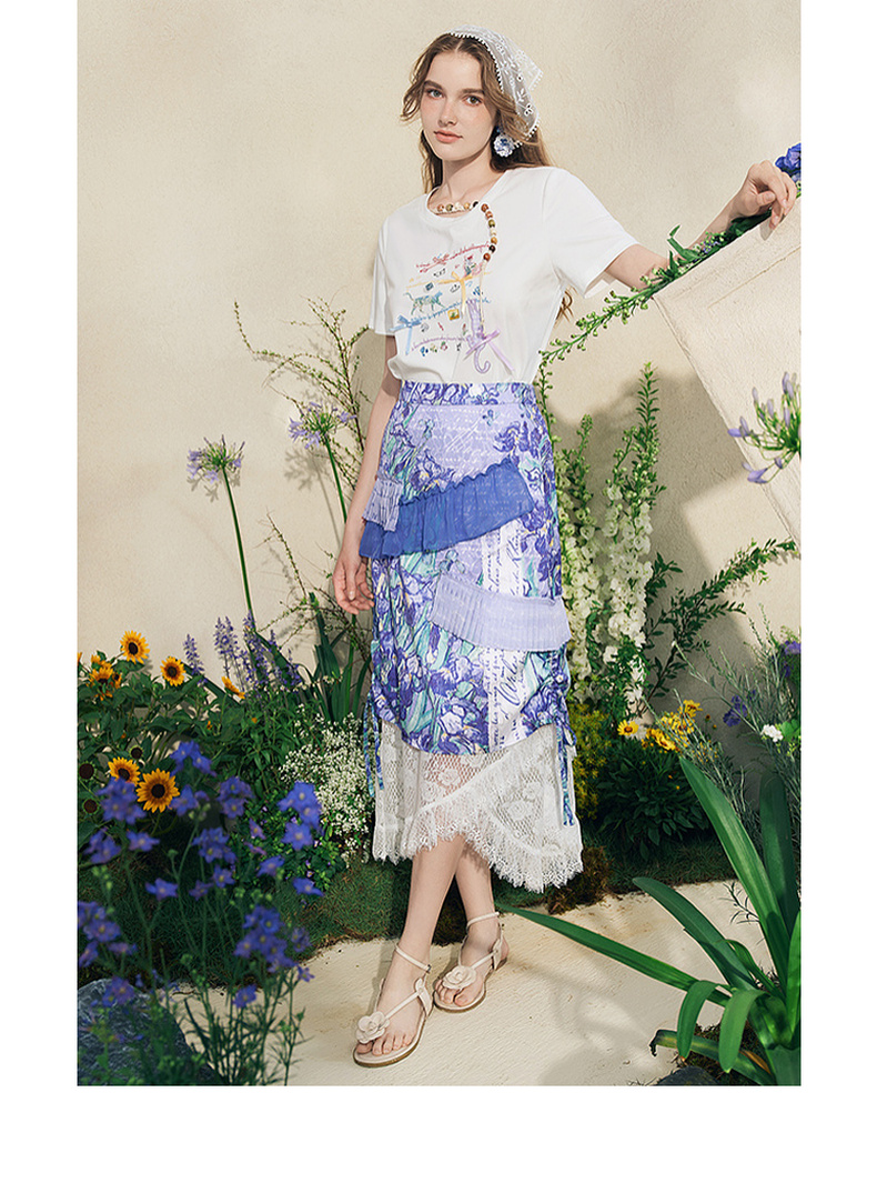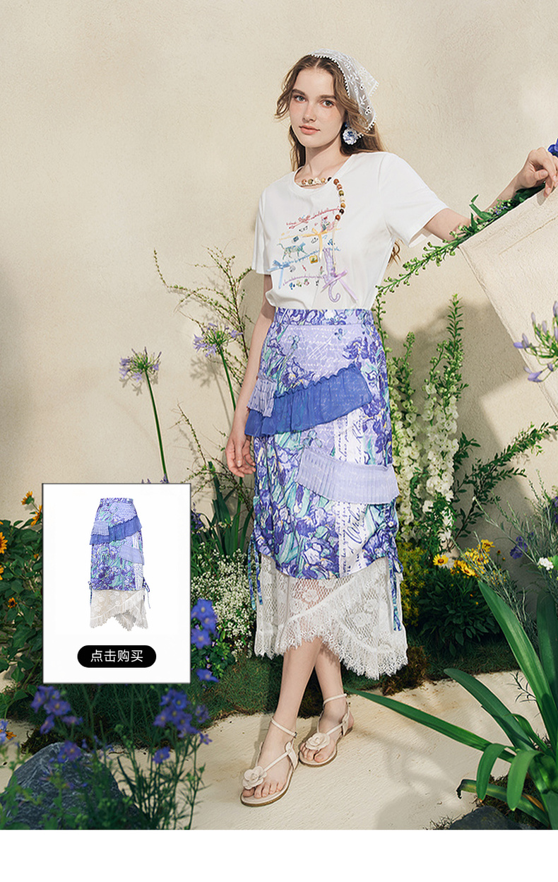 两三事梵高文艺 花屿捕梦 2025夏季新款拼布印花荷叶边吊带连衣裙