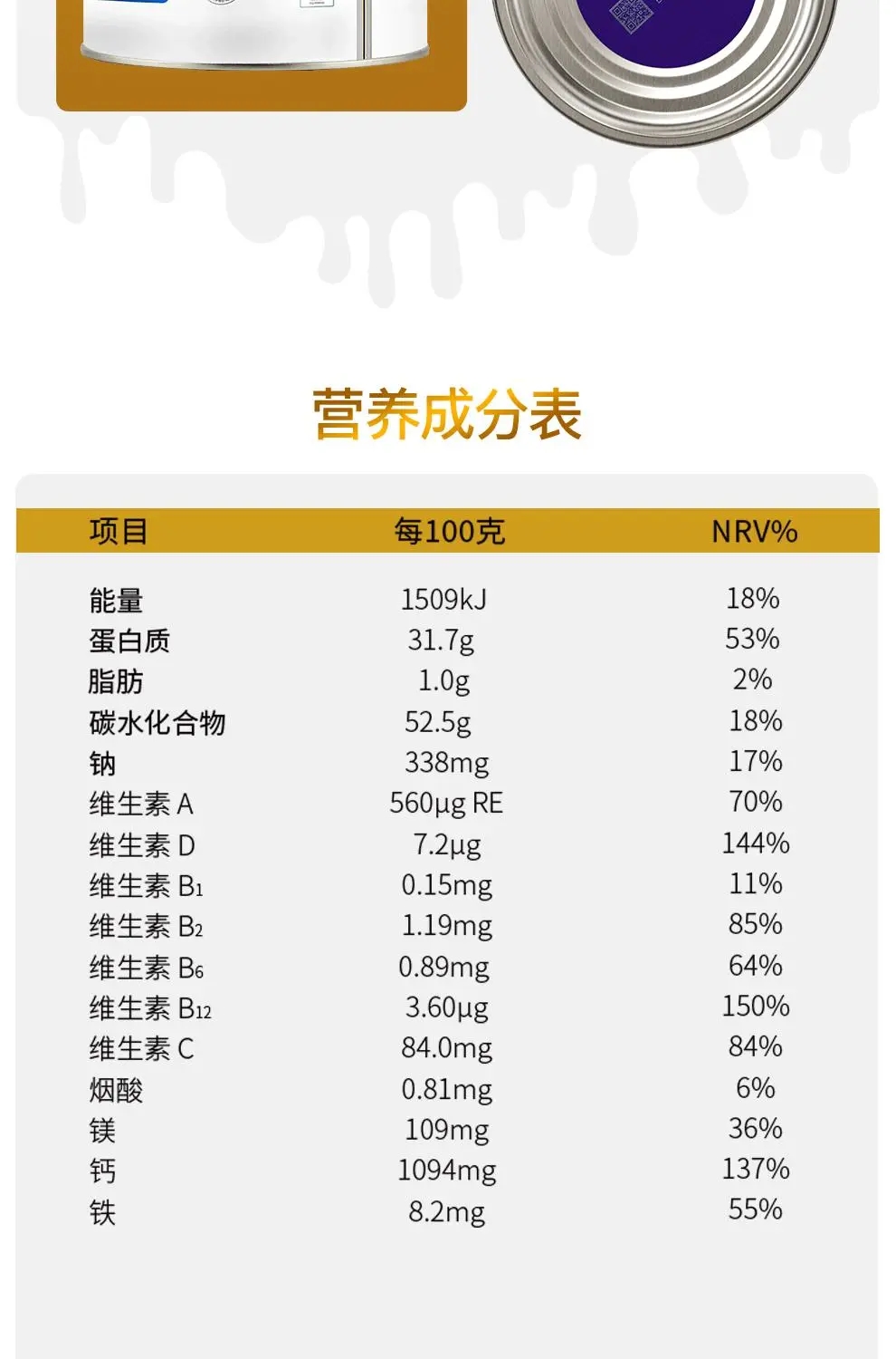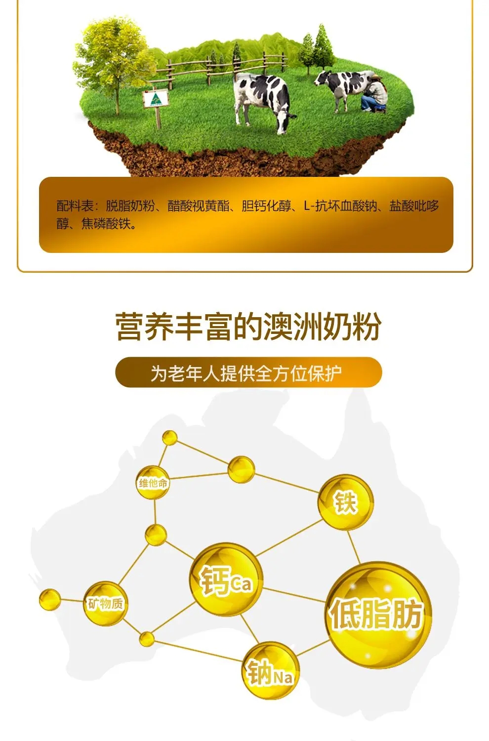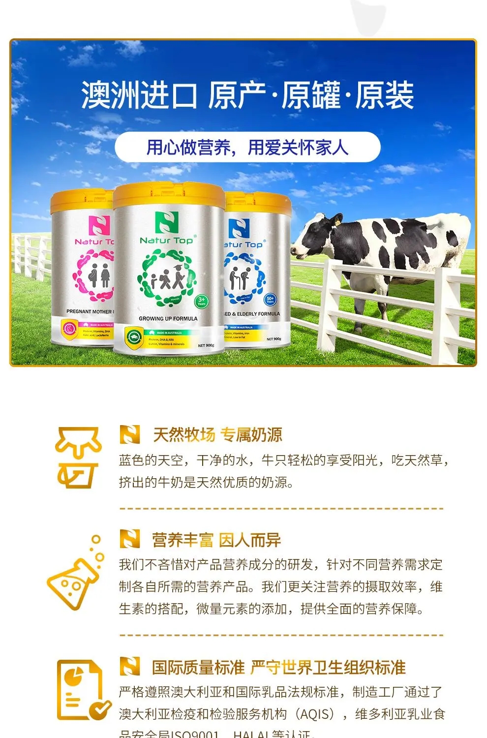 Natur Top诺崔特中老年奶粉低脱脂高钙无蔗糖澳洲进口牛奶粉900g