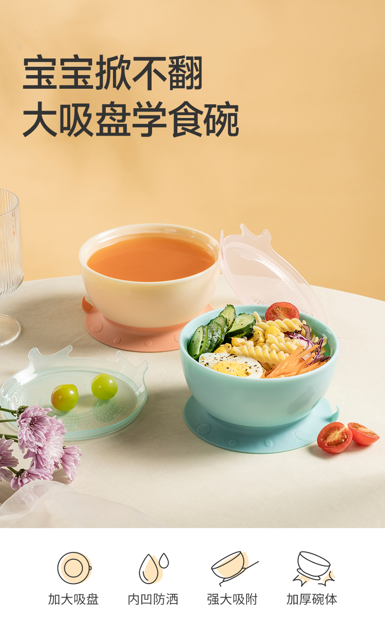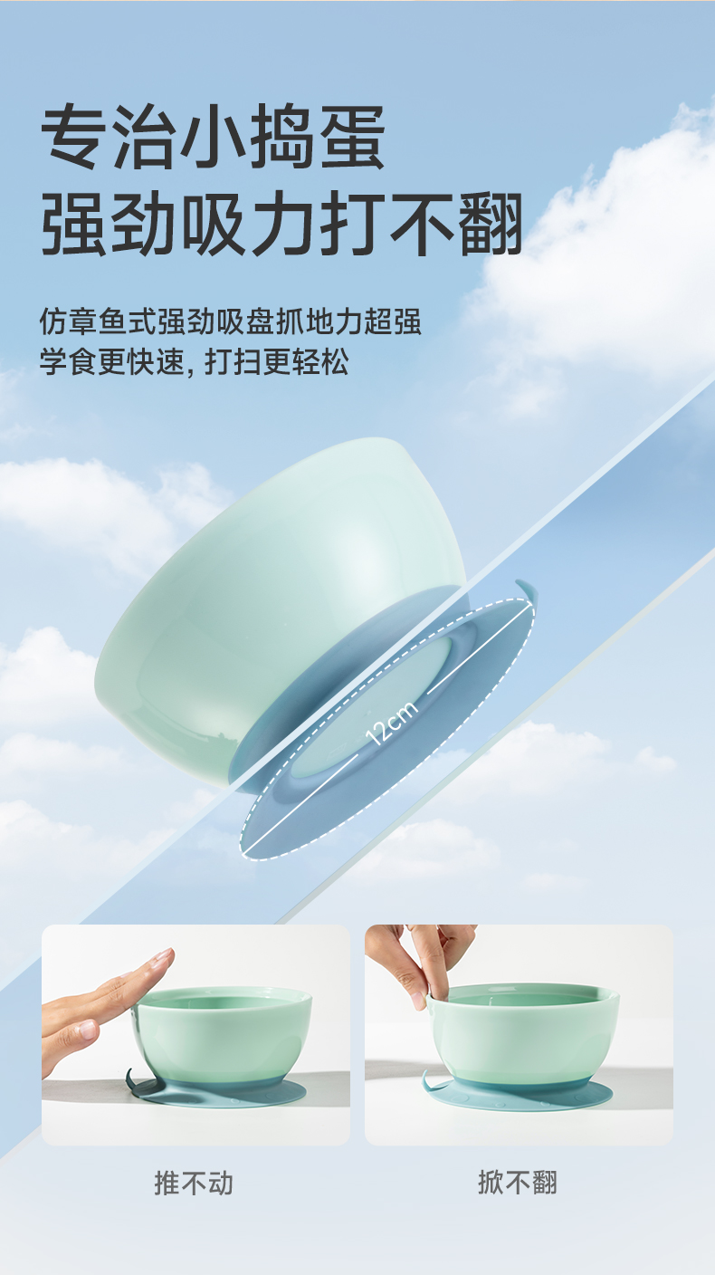 如山宝宝学吃饭训练辅食碗儿童餐具一体式婴儿专用吸盘碗防摔防烫