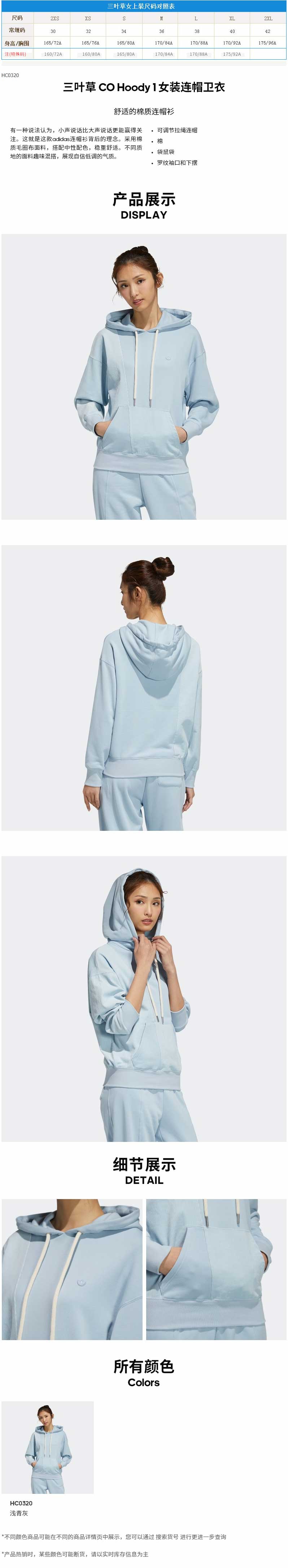 阿迪达斯三叶草卫衣女装2021秋冬新款连帽蓝色运动服套头衫HC0320