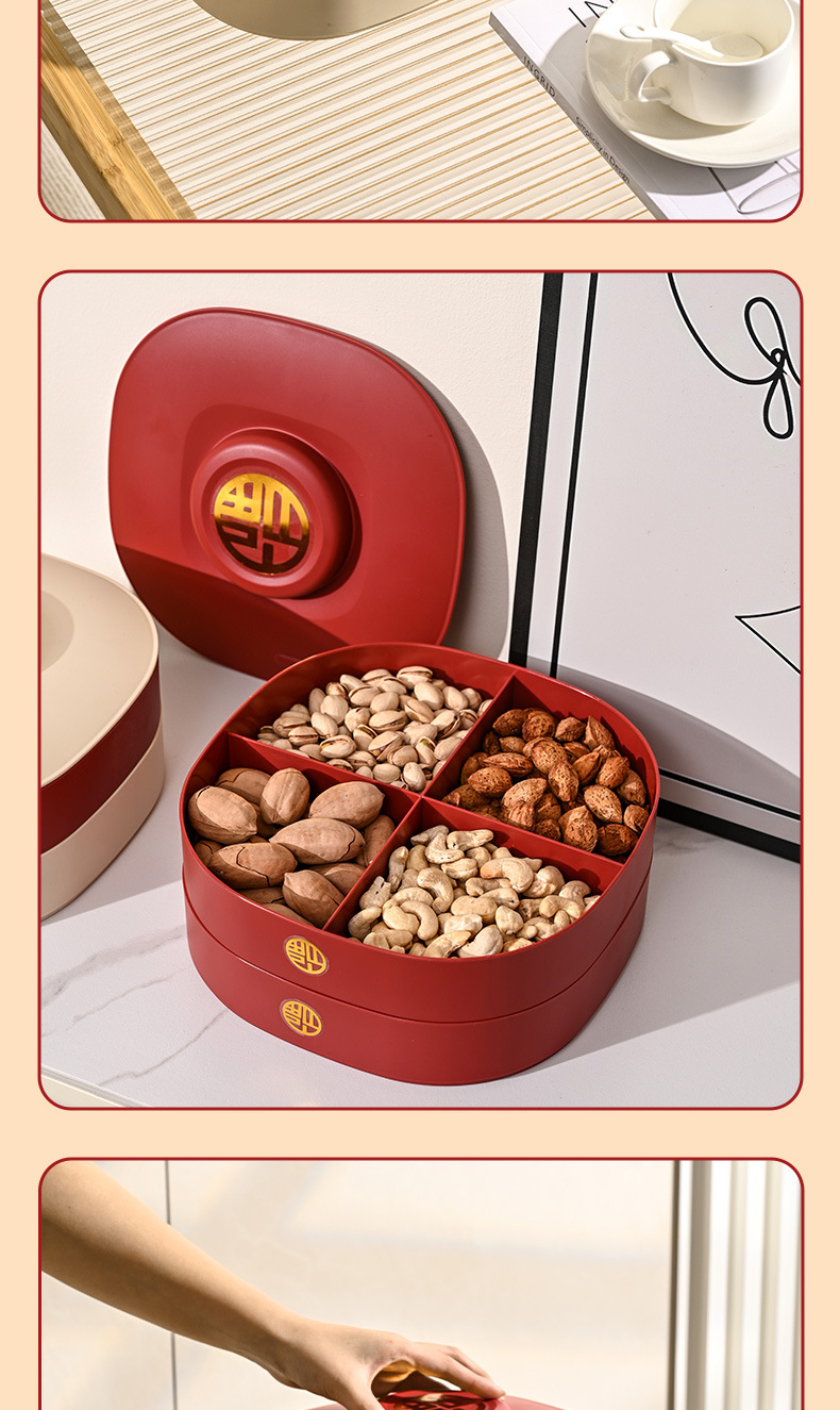 过年糖果盒红色福字家用干果盒客厅瓜子零食坚果分格收纳果盘代发 商品图7