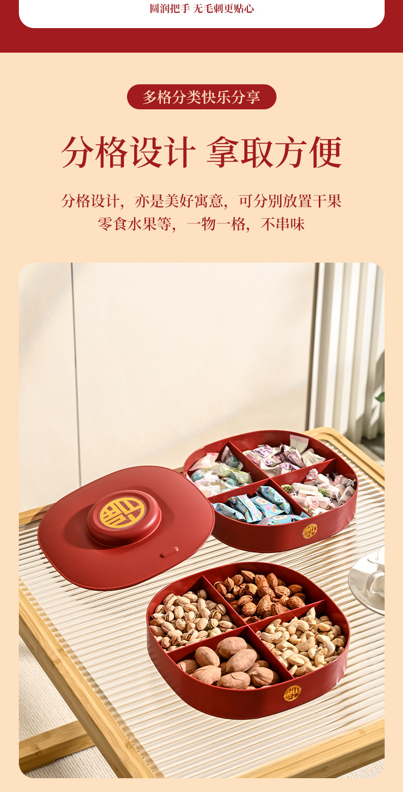过年糖果盒红色福字家用干果盒客厅瓜子零食坚果分格收纳果盘代发 商品图0