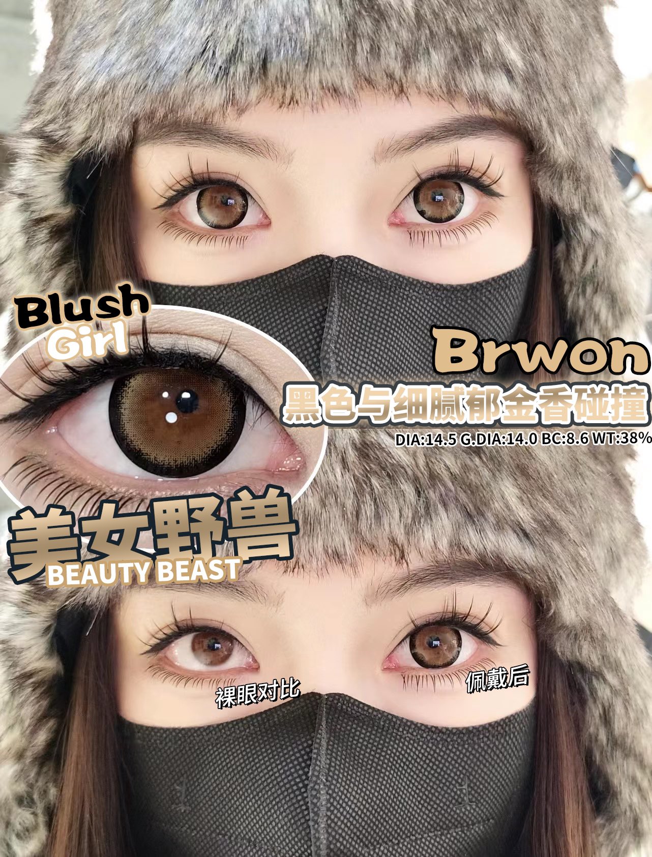 Blush Girl 美女野兽 年抛 2片 14.5mm 参考着色14.0mm 基弧8.6 含水38% 韩国进口