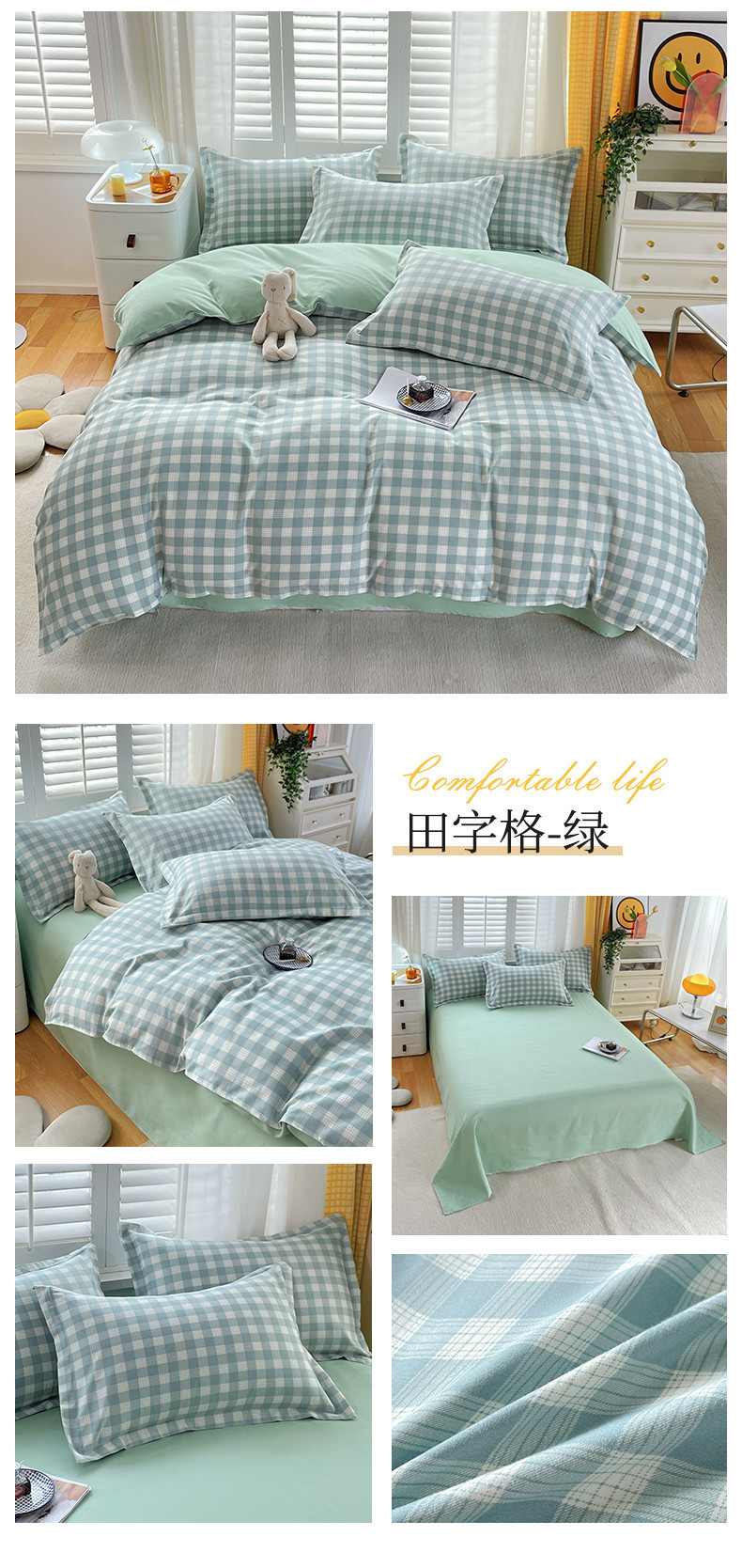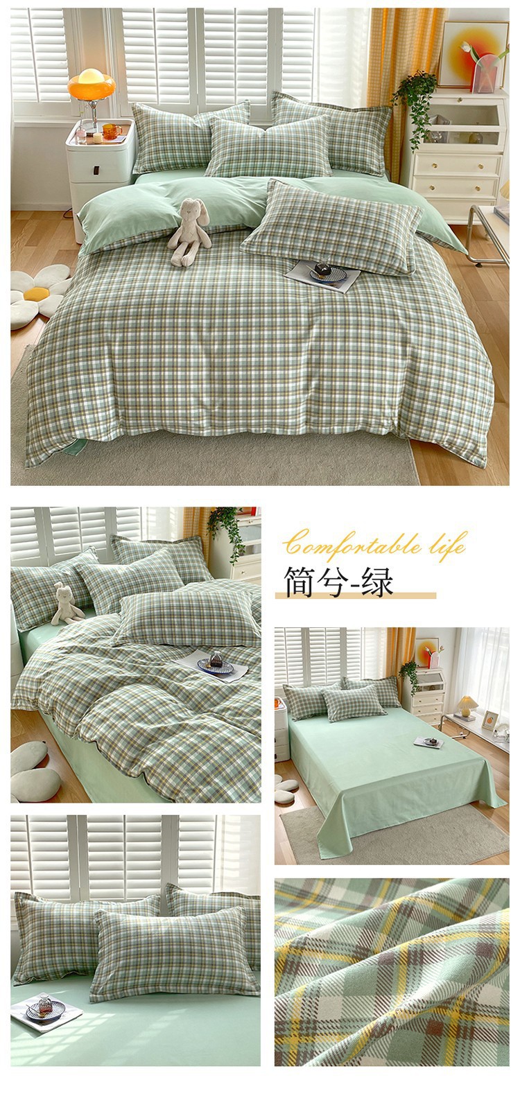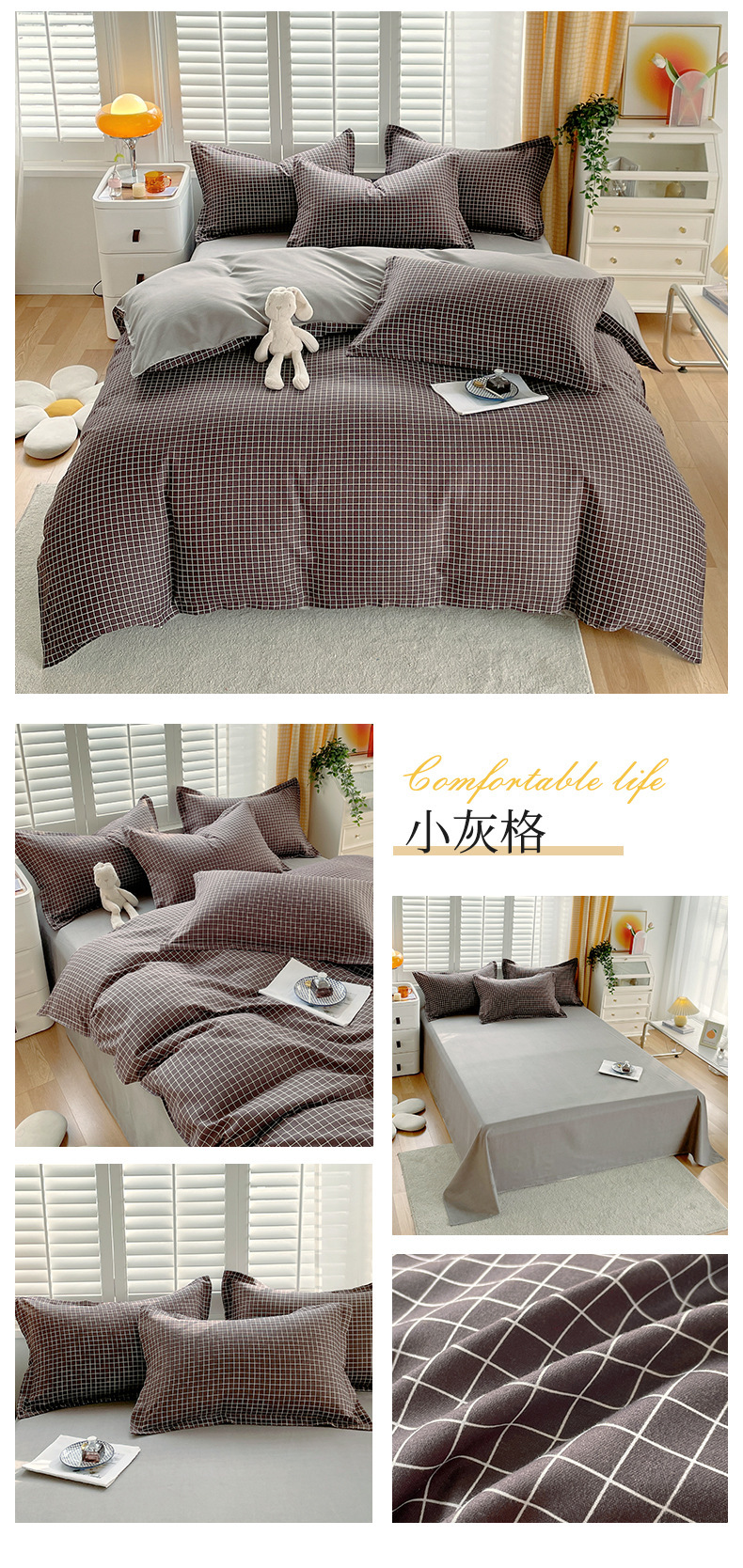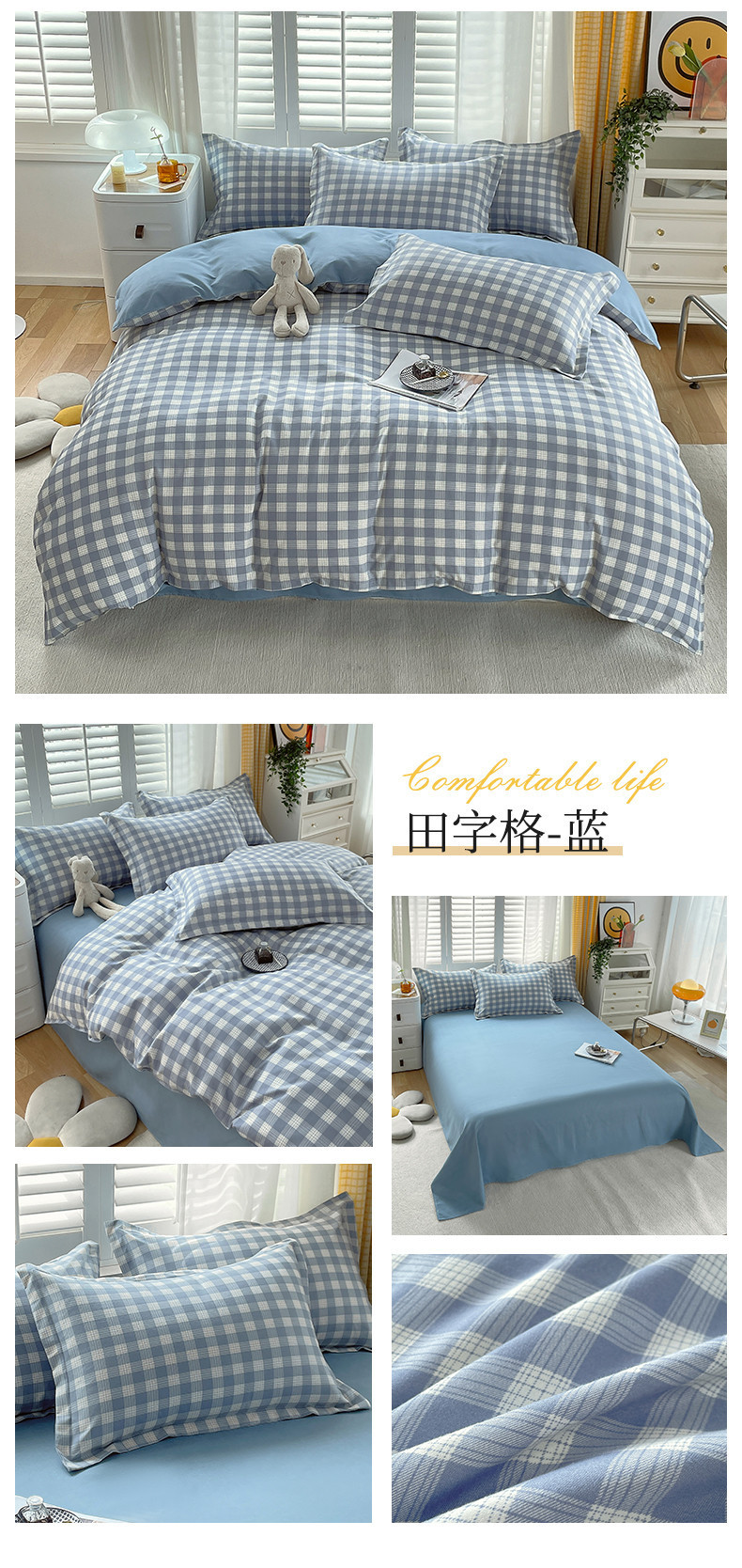 【享受自然舒睡 裸睡触感】日式无印良品同款被子纯水洗棉床上四件套磨毛格子良品床笠款学生宿舍三件套四件套床上用品