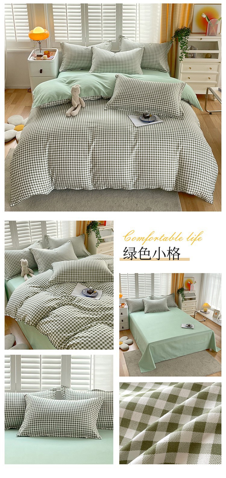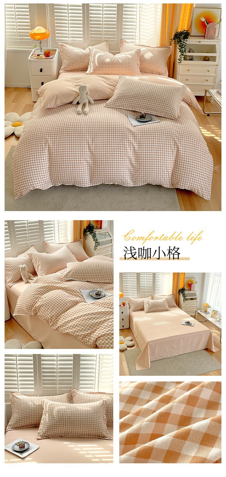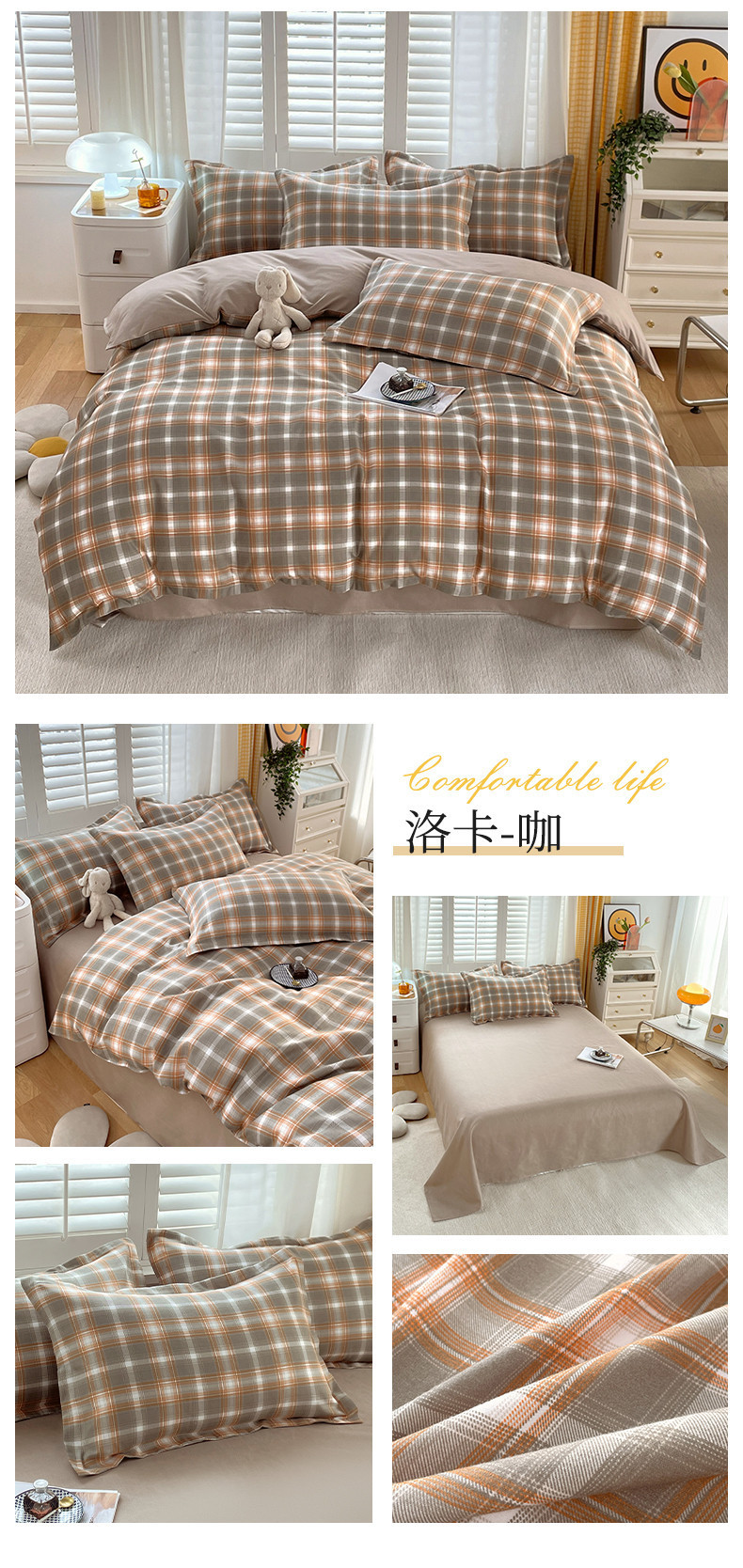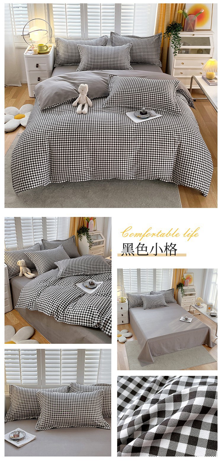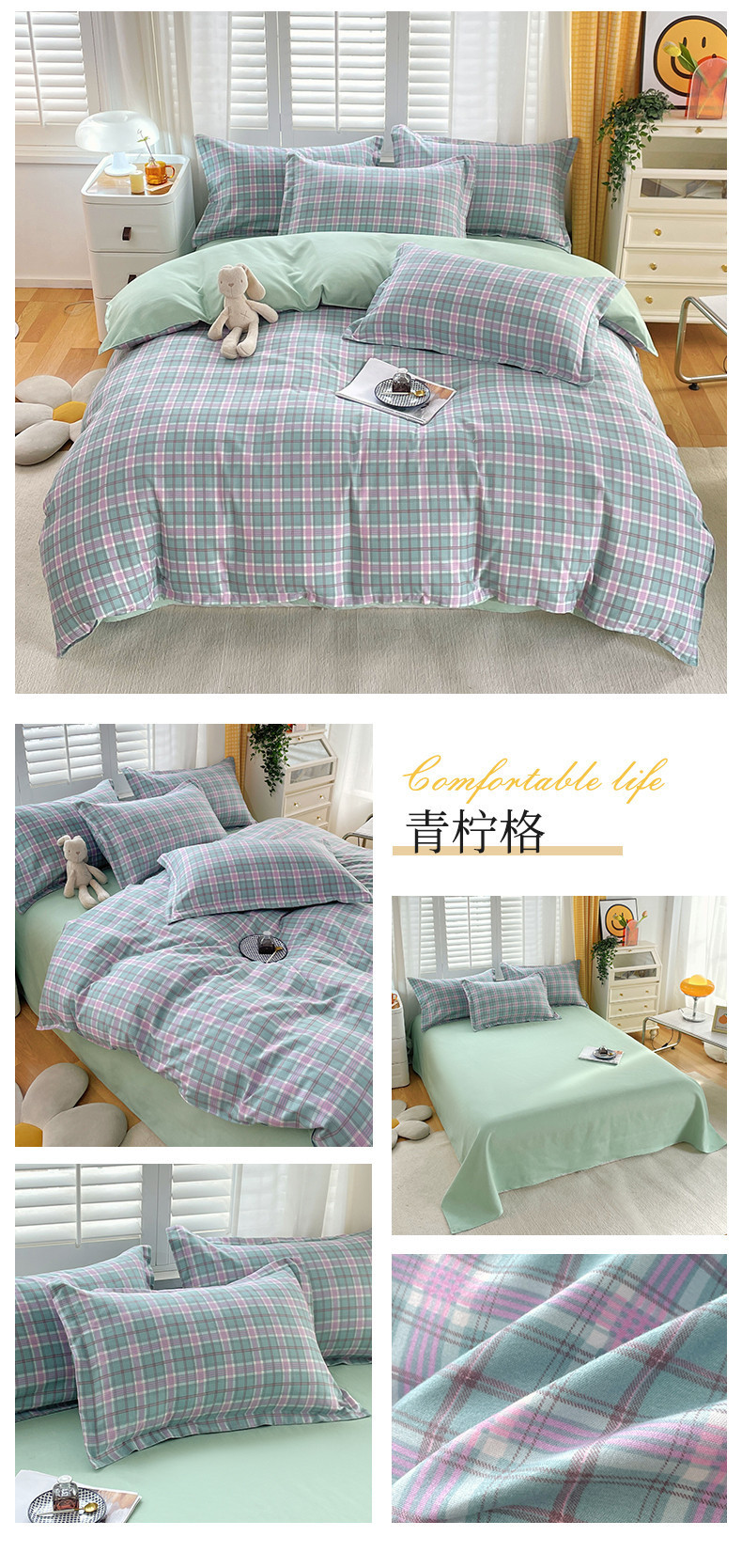 【享受自然舒睡 裸睡触感】日式无印良品同款被子纯水洗棉床上四件套磨毛格子良品床笠款学生宿舍三件套四件套床上用品