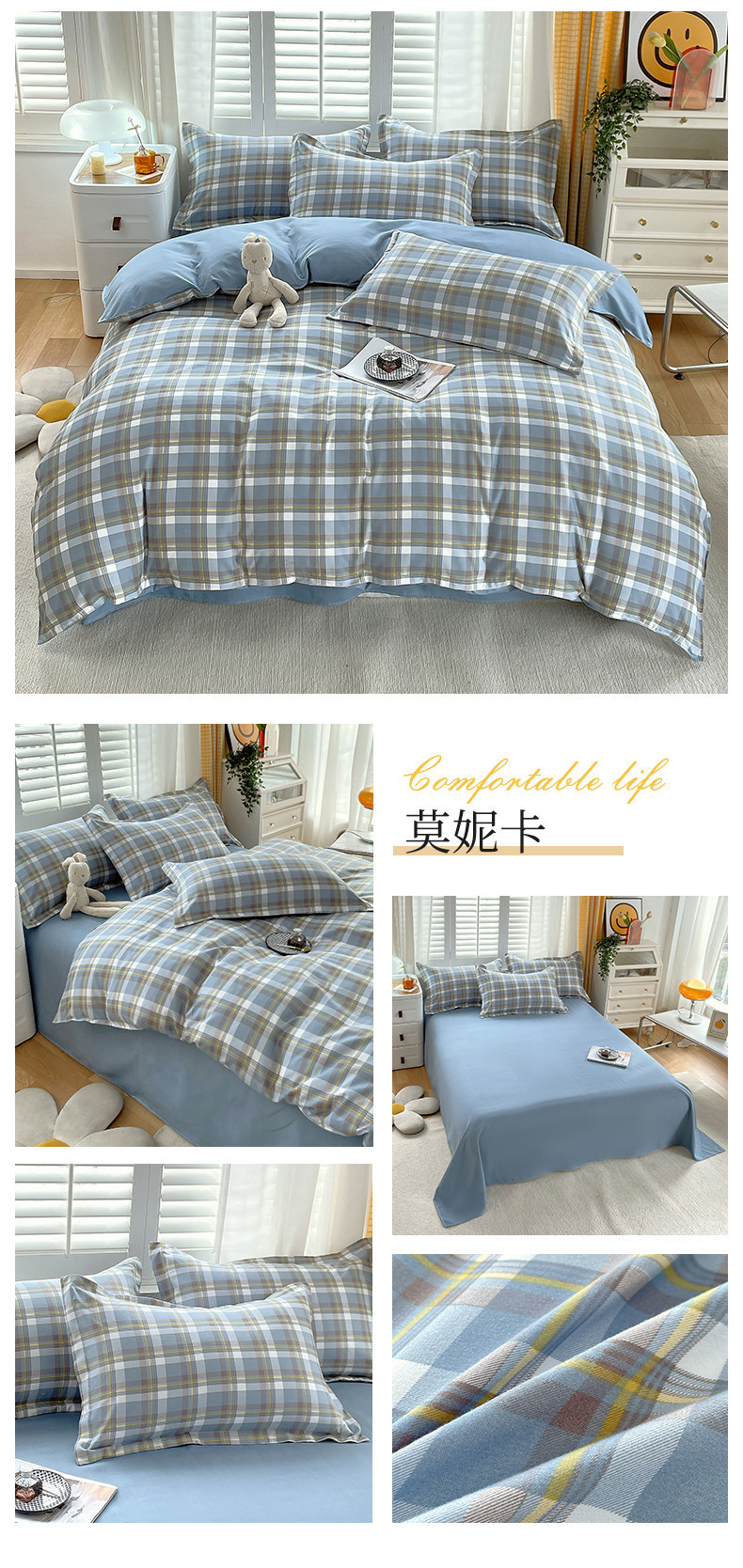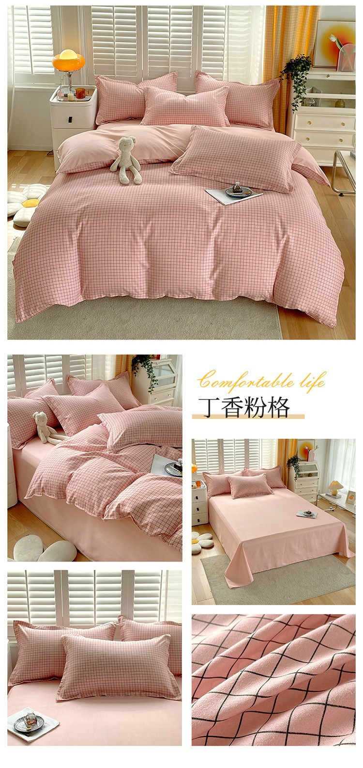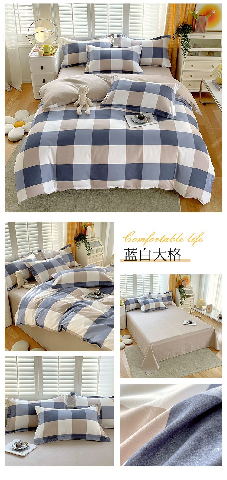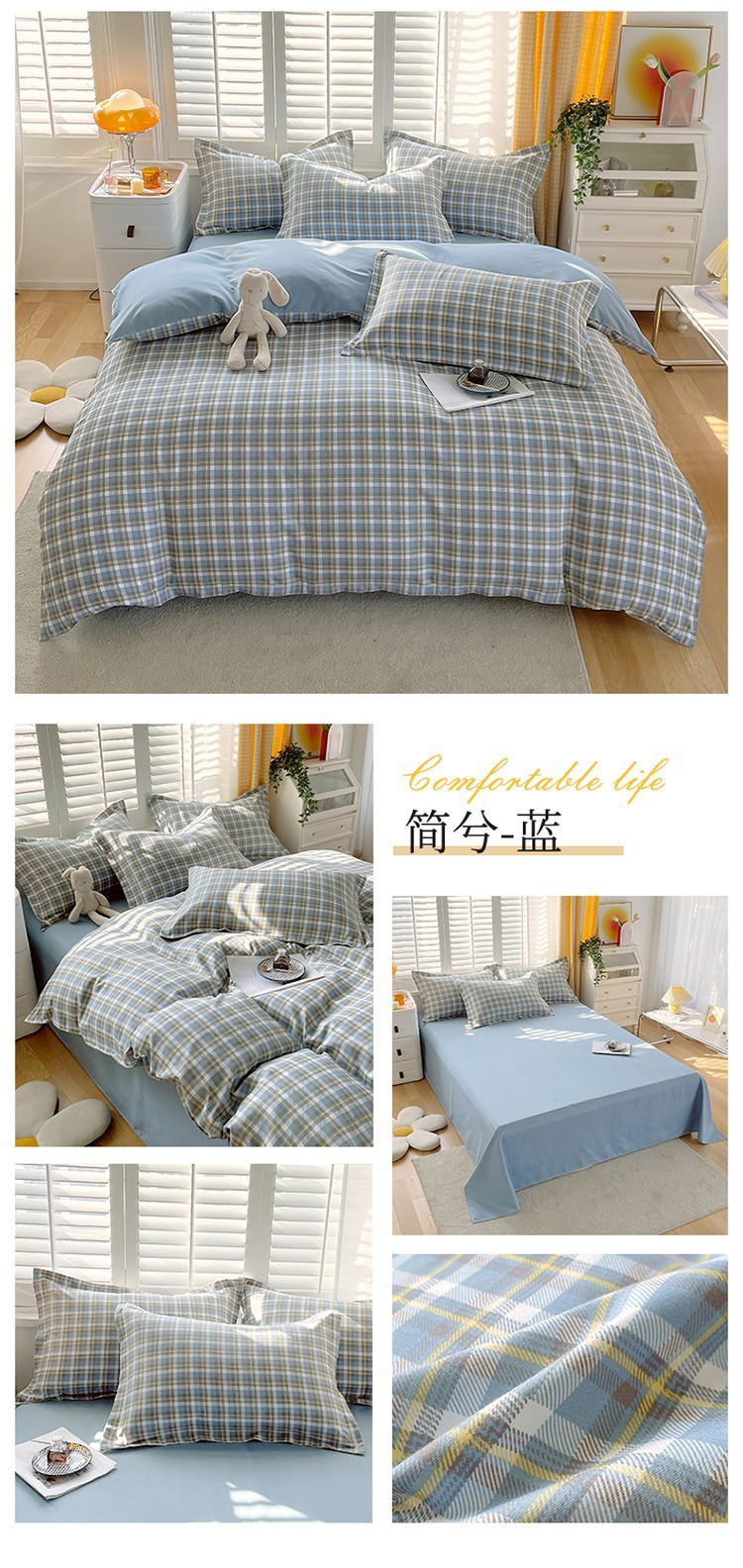 【享受自然舒睡 裸睡触感】日式无印良品同款被子纯水洗棉床上四件套磨毛格子良品床笠款学生宿舍三件套四件套床上用品