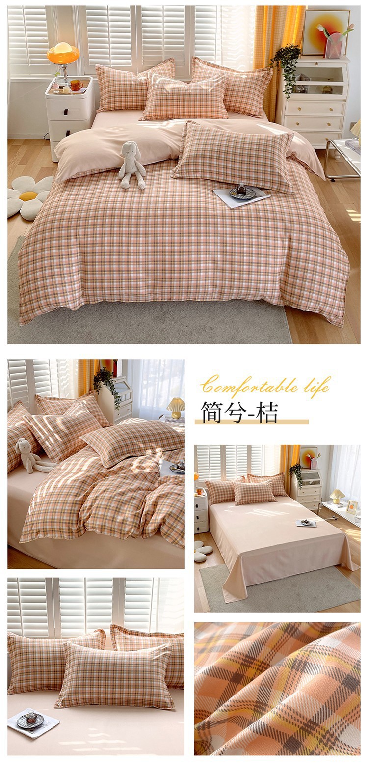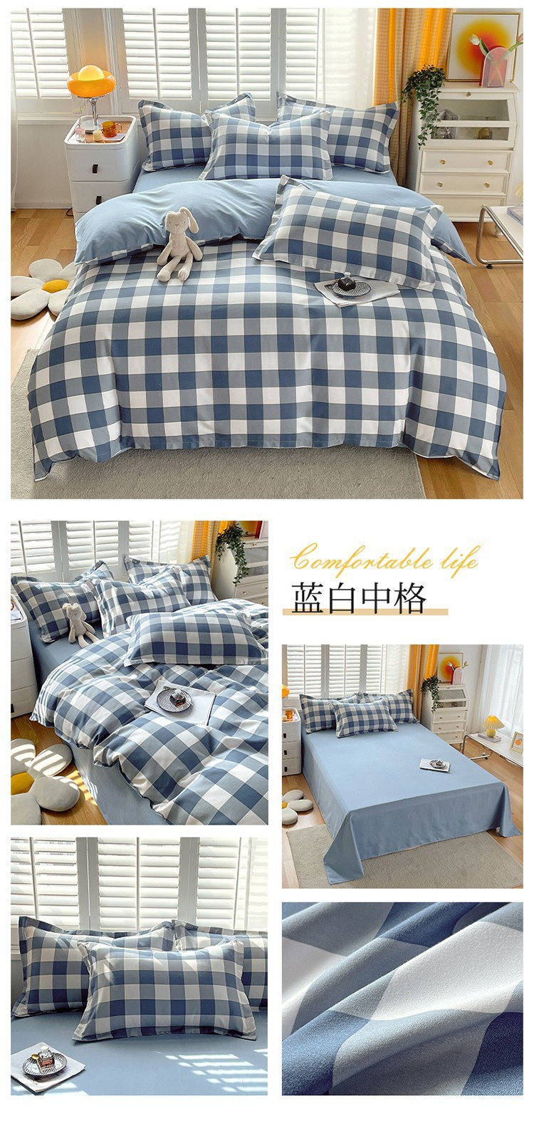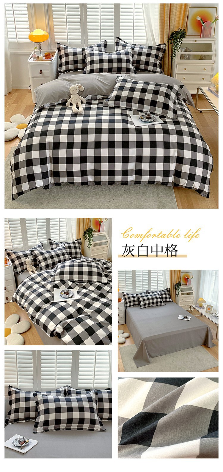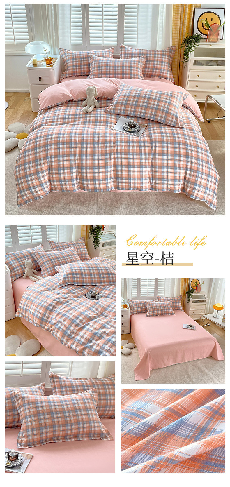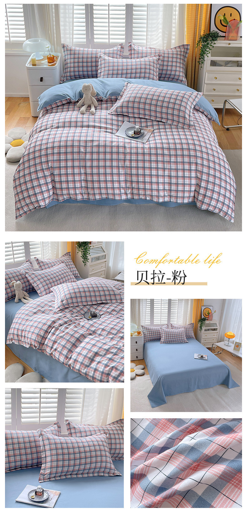 【享受自然舒睡 裸睡触感】日式无印良品同款被子纯水洗棉床上四件套磨毛格子良品床笠款学生宿舍三件套四件套床上用品