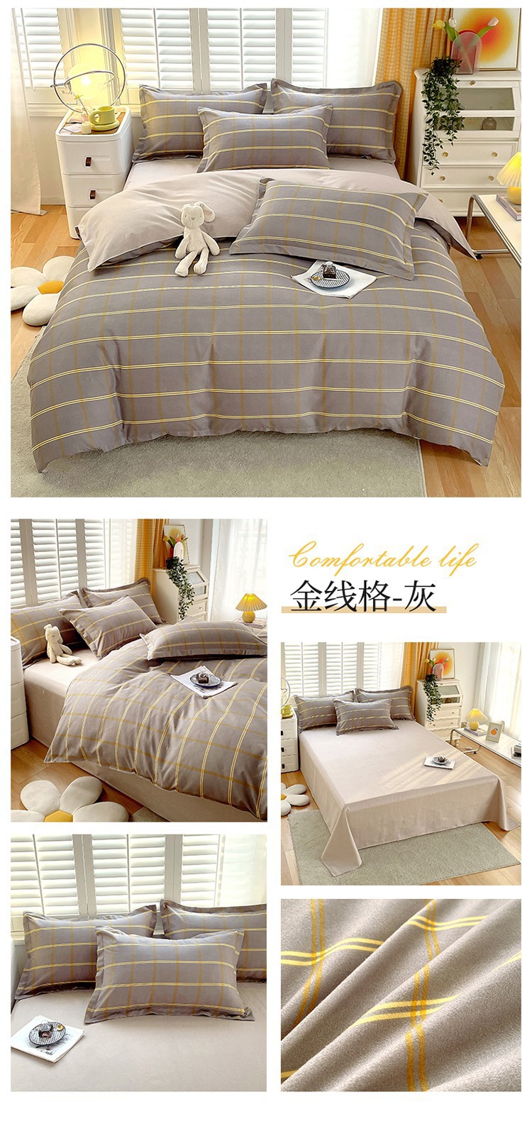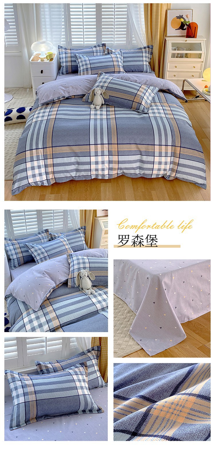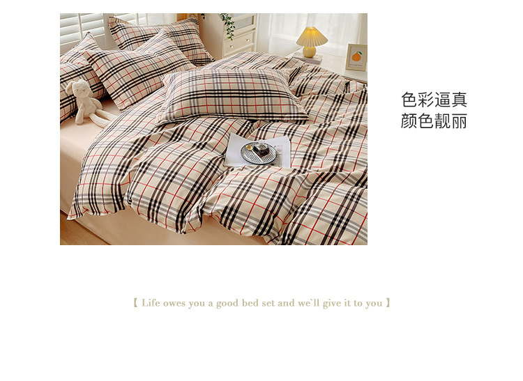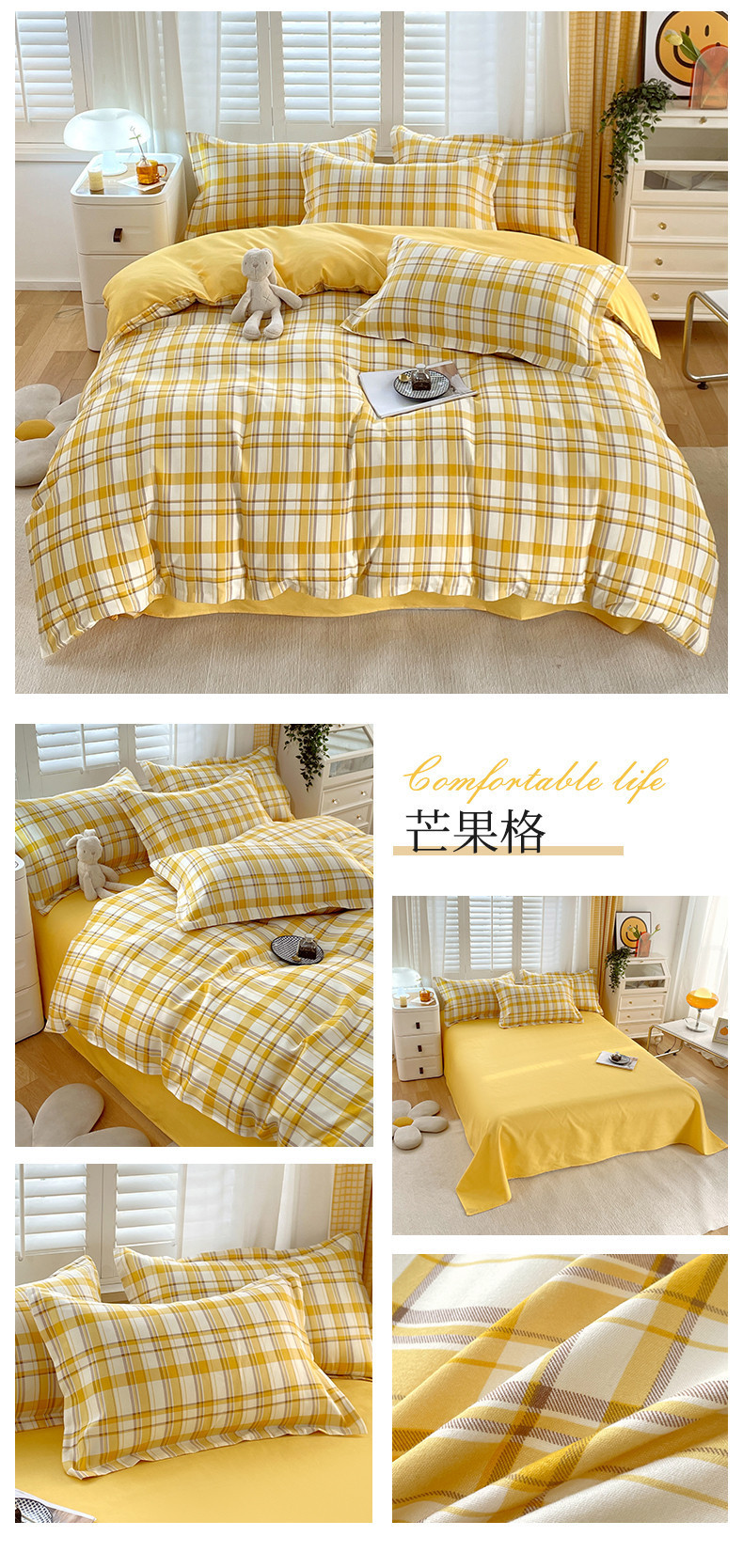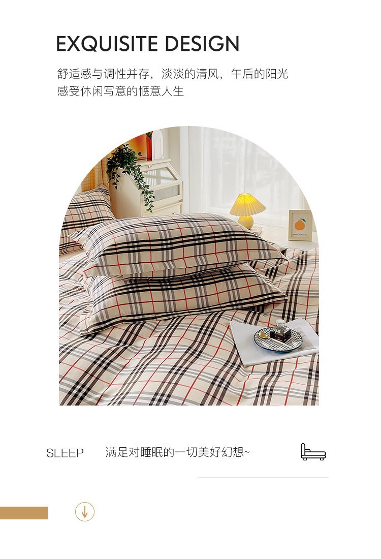 【享受自然舒睡 裸睡触感】日式无印良品同款被子纯水洗棉床上四件套磨毛格子良品床笠款学生宿舍三件套四件套床上用品