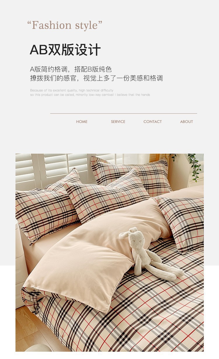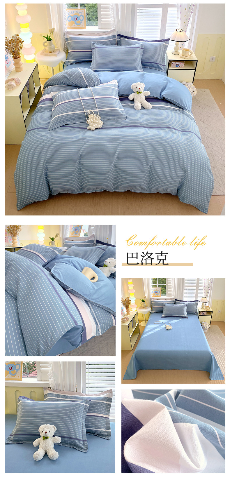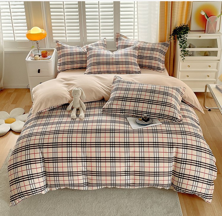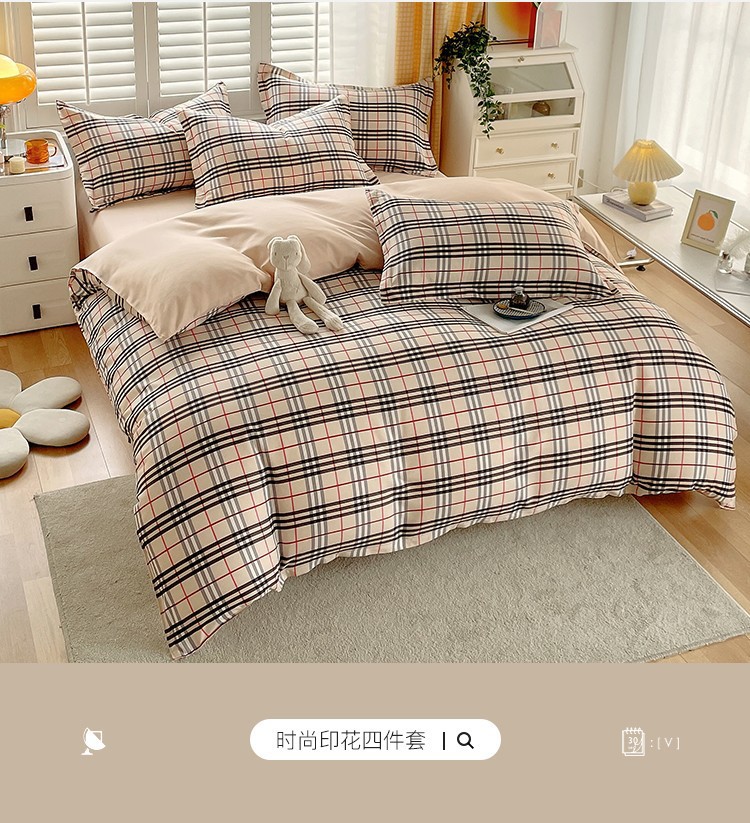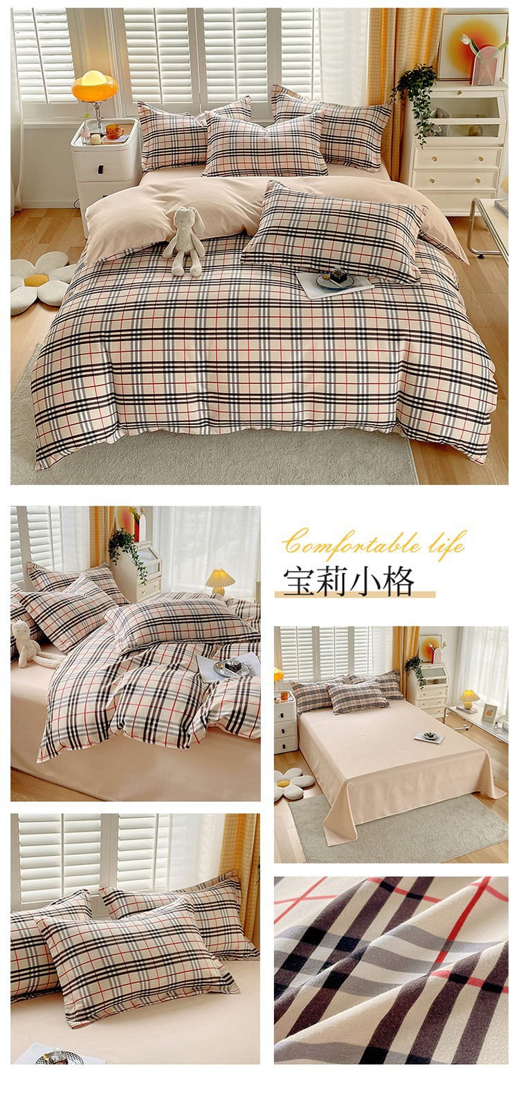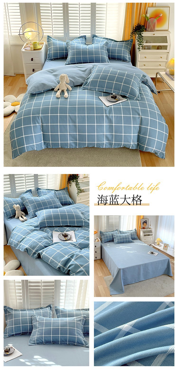 【享受自然舒睡 裸睡触感】日式无印良品同款被子纯水洗棉床上四件套磨毛格子良品床笠款学生宿舍三件套四件套床上用品